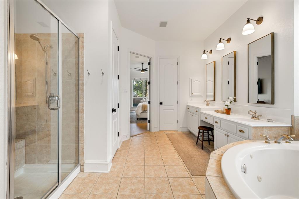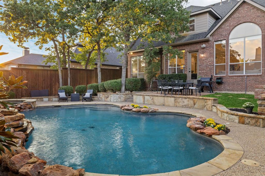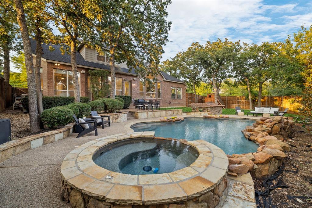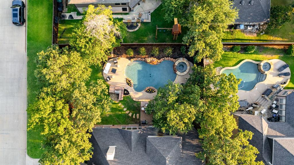 PLEASE SUBMIT ALL OFFERS BY MONDAY SEPTEMBER 1ST AT 12:00PM. This home is a true standout with impeccable drive-up appeal, framed by mature trees that set the tone for what awaits inside. Offering five spacious bedrooms and three and a half bathrooms, the layout is designed with both comfort and convenience in mind. Two inviting living areas and two dining spaces provide the perfect backdrop for both everyday living and entertaining. The beautiful new custom kitchen is a showstopper, featuring quartz countertops, a 9-foot island, new appliances including a gas range, and high-end finishes with custom cabinetry, designer hardware, and striking lighting and plumbing fixtures. The kitchen flows seamlessly into the living room, where custom built-ins, brand new solar shades, and added recessed lighting create a warm and inviting atmosphere. Throughout the home, thoughtful updates elevate every space. Bathrooms have been refreshed with modern fixtures, mirrors, and finishes, while the powder bath has been completely remodeled for a fresh look. In the master suite, a huge custom-finished walk-in closet provides both luxury and functionality. Upstairs, a spacious game room paired with all-new carpet offers the perfect retreat. In the laundry room, marble countertops, a new sink, and built-in cabinetry add both style and function.New engineered wood flooring ties the main living areas together beautifully, while updated light fixtures and fans give the home a modern, cohesive feel. Step outside to your own private retreat. An amazing backyard awaits with a sparkling pool, relaxing hot tub, and the added security of a pool safety fence, making it ideal for both entertaining and everyday enjoyment.Additional upgrades include epoxy floors in the garage with a sectioned-off workstation, a brand-new HVAC unit in the master bedroom, and a new furnace upstairs, ensuring year-round comfort throughout the home.