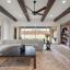 Inside, soaring ceilings and an open floor plan connect expansive living areas filled with natural light. The gourmet kitchen features upgraded appliances, custom cabinetry, large walk-in pantry and a spacious center island perfect for both everyday meals and entertaining. The adjacent living room includes a cozy fireplace, custom built-ins, and wall-to-wall windows that open to the backyard, creating an effortless indoor-outdoor flow.