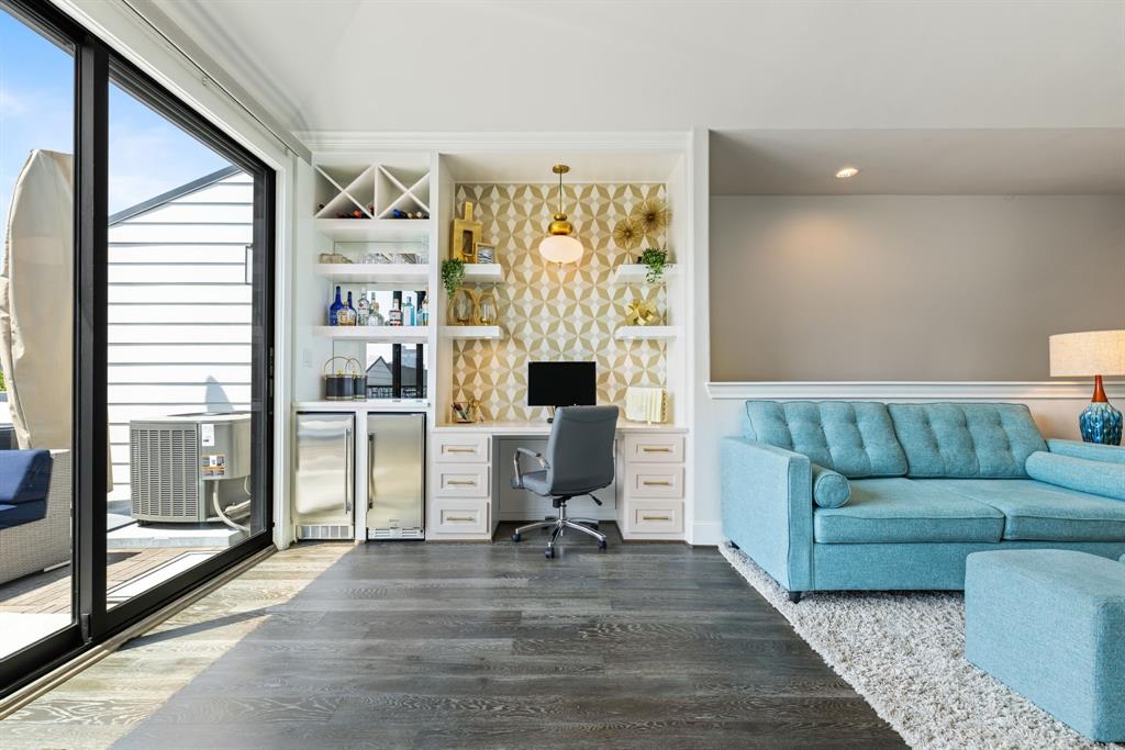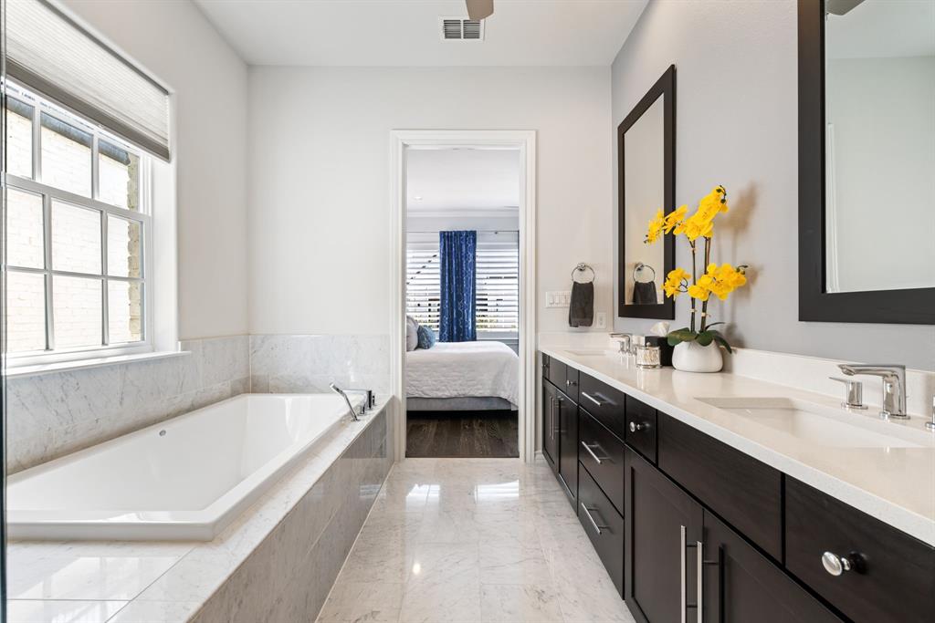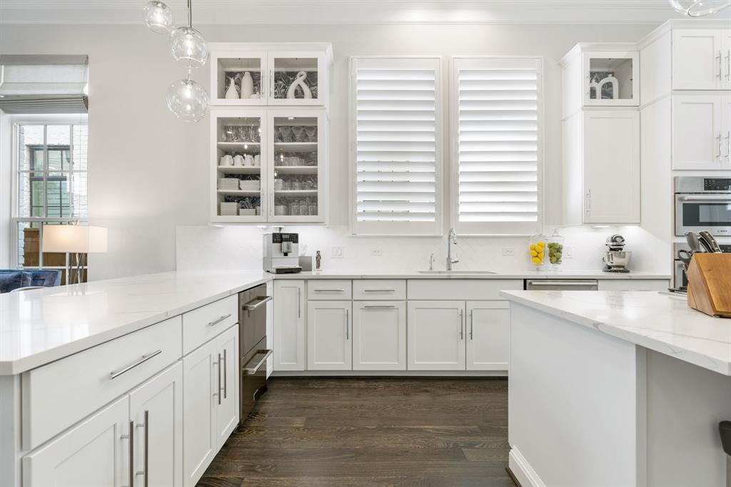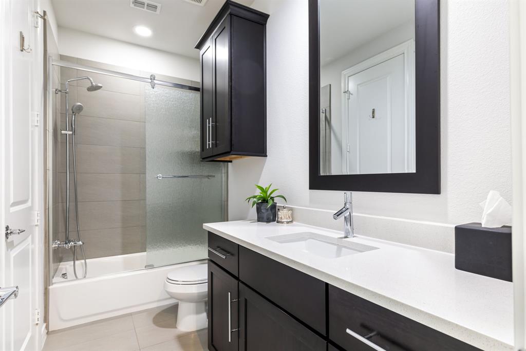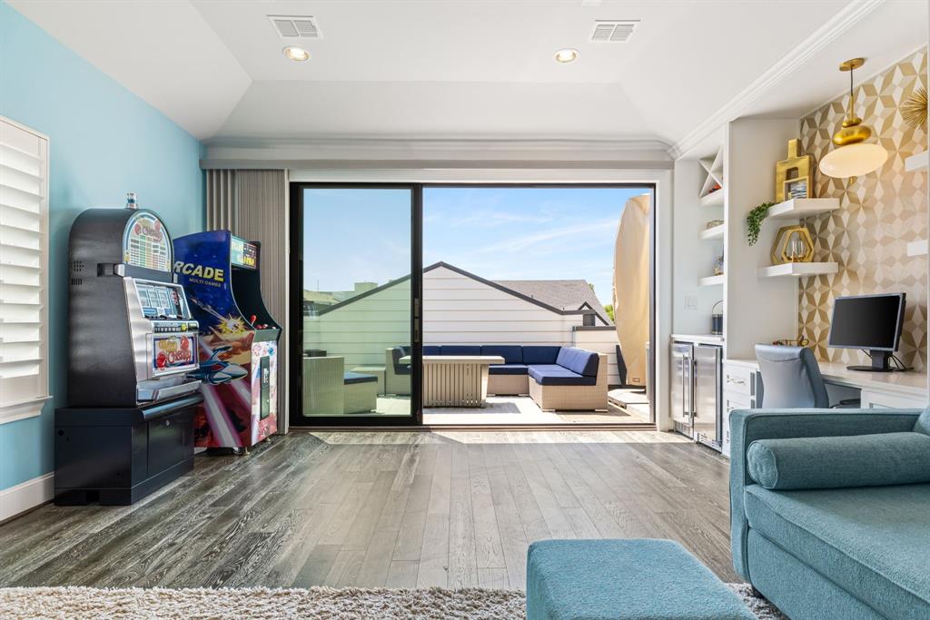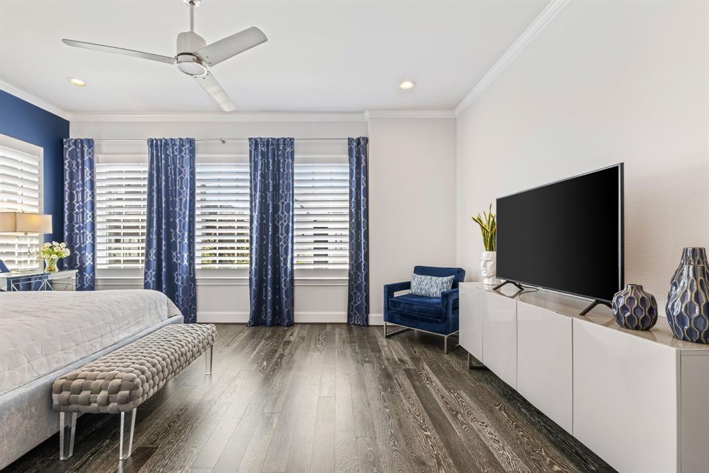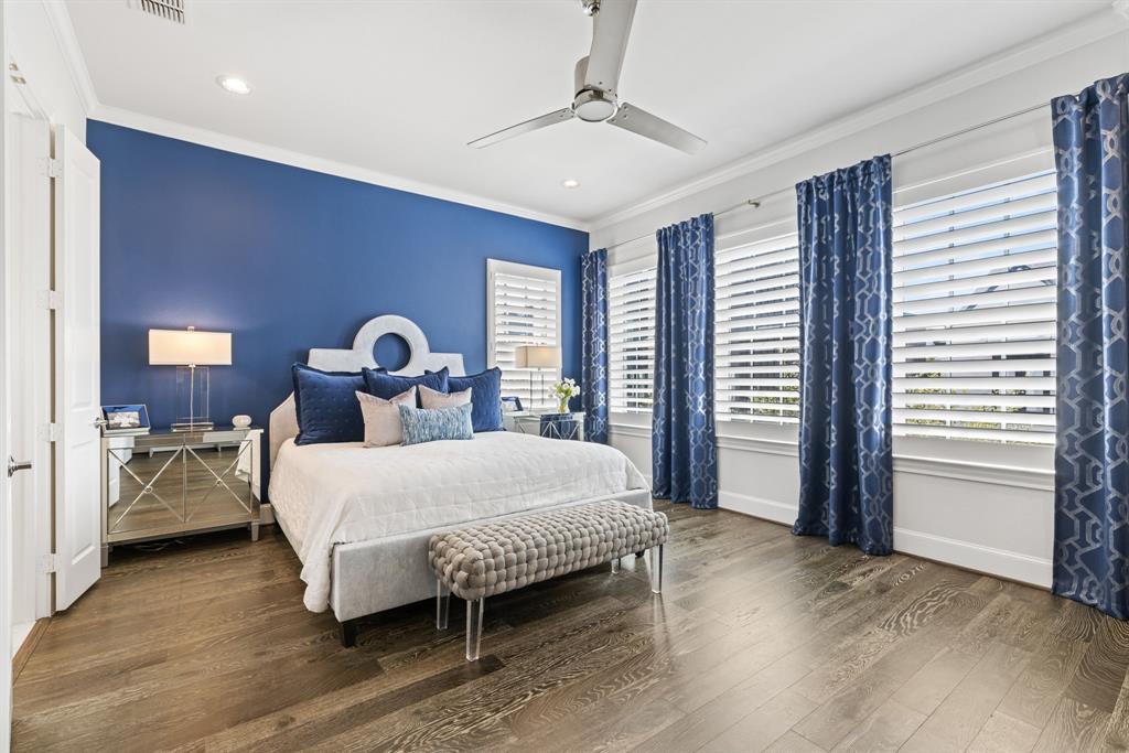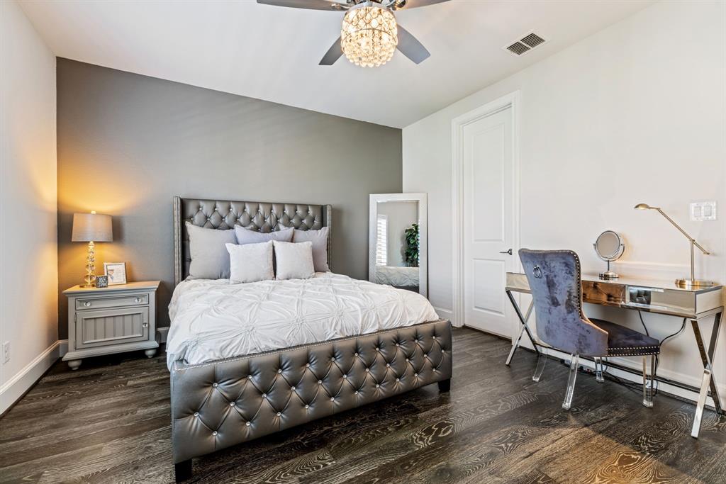 Immaculate three-story end-unit townhome filled with natural light and designed for first-floor living. The open-concept main level boasts soaring 12-foot ceilings, a custom tile accent wall with electric fireplace in the living area, and a chef’s kitchen featuring stacked upper cabinetry, a Bosch appliance package, Thor undercabinet double drawer refrigerator, oversized island, and breakfast bar. Custom pendant lighting in the kitchen and dining areas add elegance and depth to the space. Step out the back door to a charming fenced backyard patio leading to the detached two-car garage. The second floor showcases a luxurious primary suite with spa-like bath and huge walk-in closet, along with a secondary bedroom with ensuite bath and a convenient laundry area. The third floor offers a third bedroom with private bath and a spacious game room with a built-in work space and stunning sliding glass doors by Western Window Systems that open to a private roof terrace. Designer paint and wallpaper accents, custom wood shutters and window coverings, and engineered hardwood floors run throughout this immaculately maintained home. With exceptional curb appeal and thoughtful upgrades, this townhome is truly move-in ready.