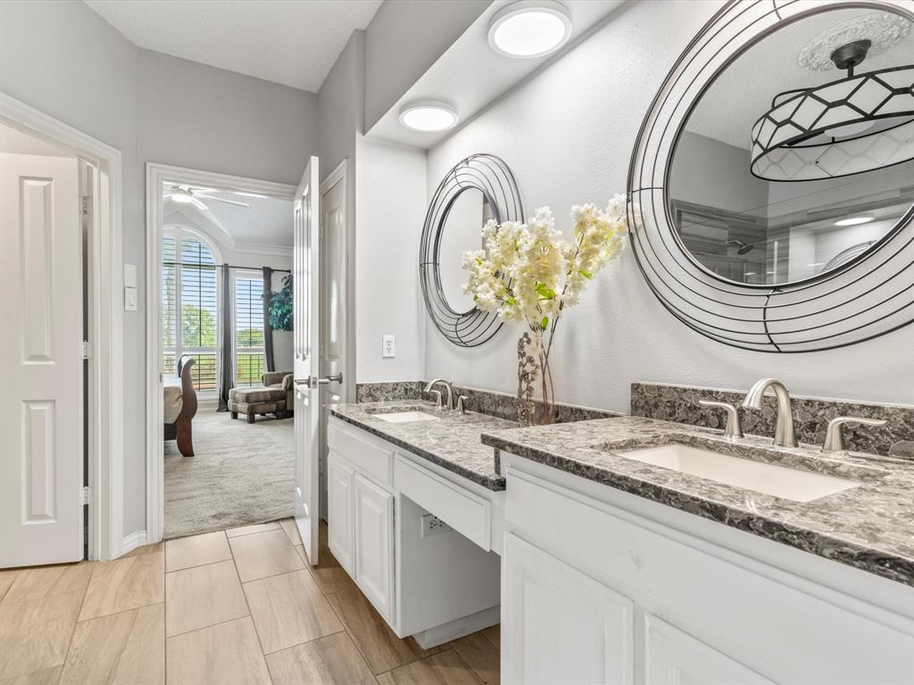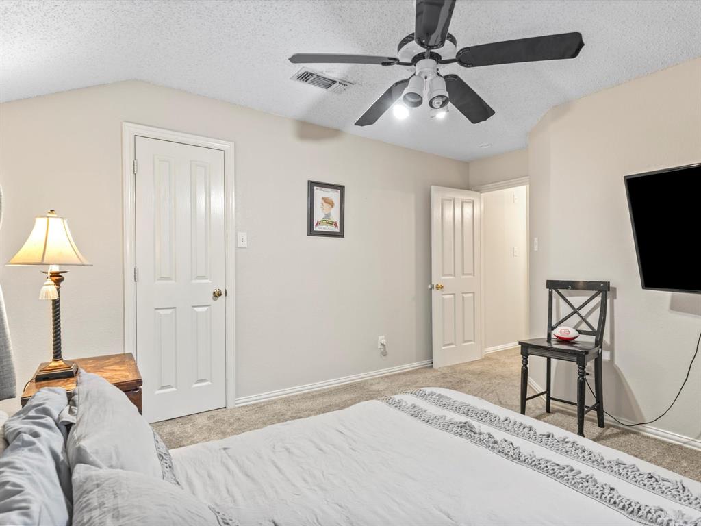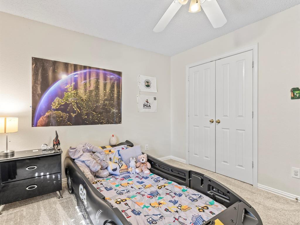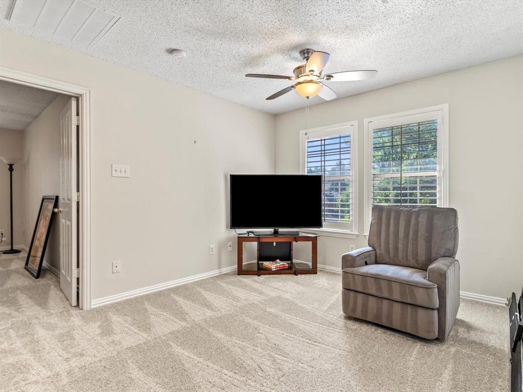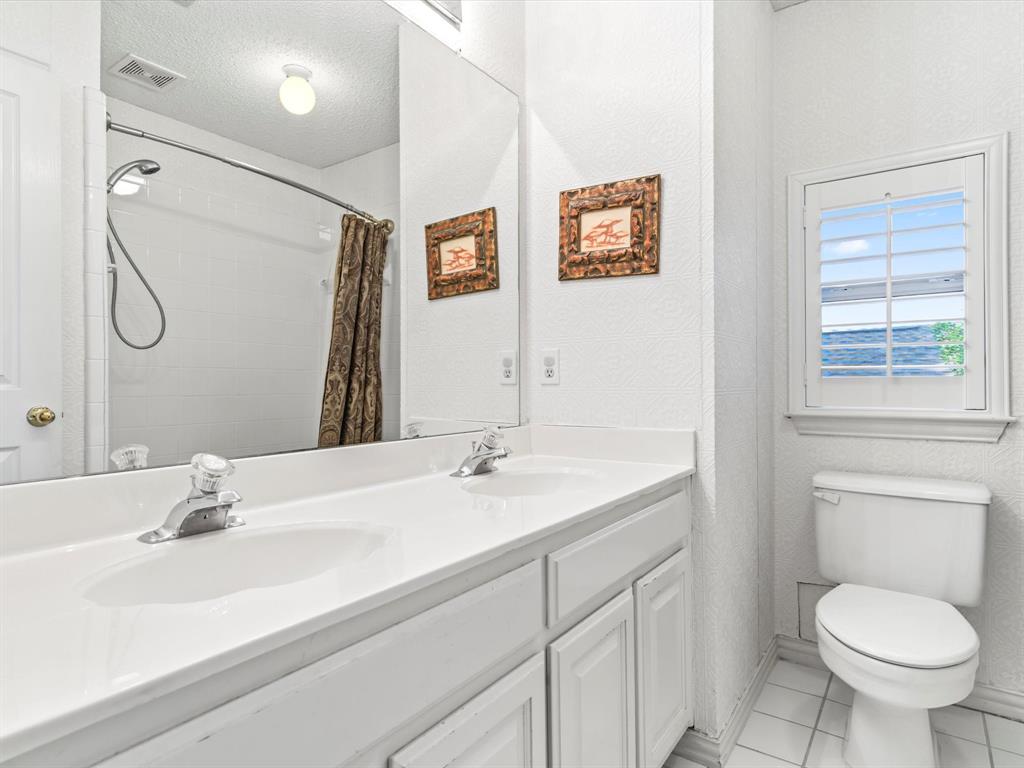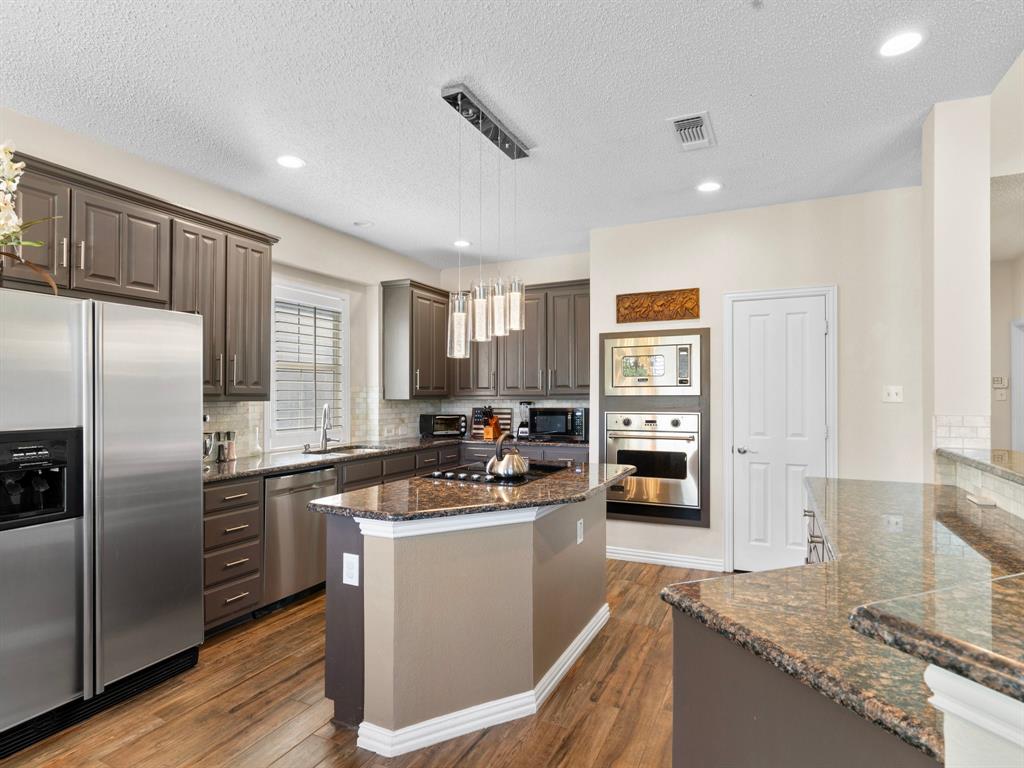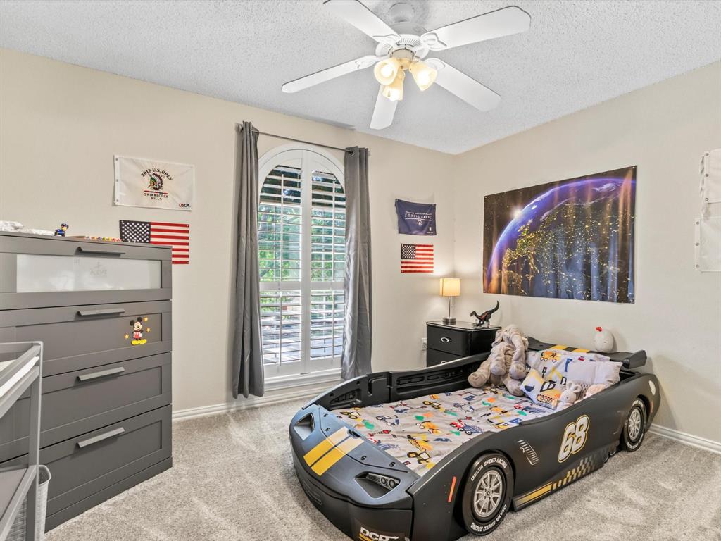 Situated on the 16th tee box of The Golf Club at Fossil Creek with exceptional water views is this 4-bedroom, 3.5-bathroom home that offers both comfort and elegance with thoughtful details throughout. Mature oak trees welcome you to this well cared for and appointed addition. Step inside to find plantation shutters, flexible living and dining spaces, and a light-filled central family room with custom built-ins, a cozy gas fireplace, and expansive views of the golf course. The breakfast room flows seamlessly into the oversized kitchen, featuring granite counters, an abundance of cabinet and counter space, stainless steel appliances including a VIKING oven and microwave, a central island with electric cooktop, and plenty of space to gather. The generously size primary suite is tucked on the first floor with high ceilings and a spa-like bath complete with a Texas-sized walk-in shower, dual sinks, extended vanity, and huge walk-in closet. Upstairs, secondary bedrooms with ceiling fans surround a versatile loft area, perfect as a game or media room. The backyard oasis is designed for entertaining with extended decking and an inviting in-ground pool—all set against the backdrop of the golf course. Additional highlights include a large utility room with space for an extra fridge or freezer, a convenient half bath downstairs, and easy access to highways, shopping, dining, and entertainment. Available for quick possession, make sure to come see it today!