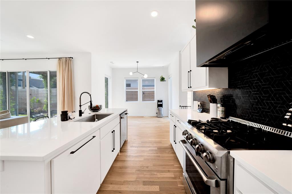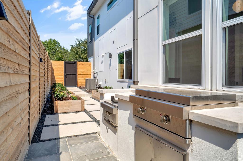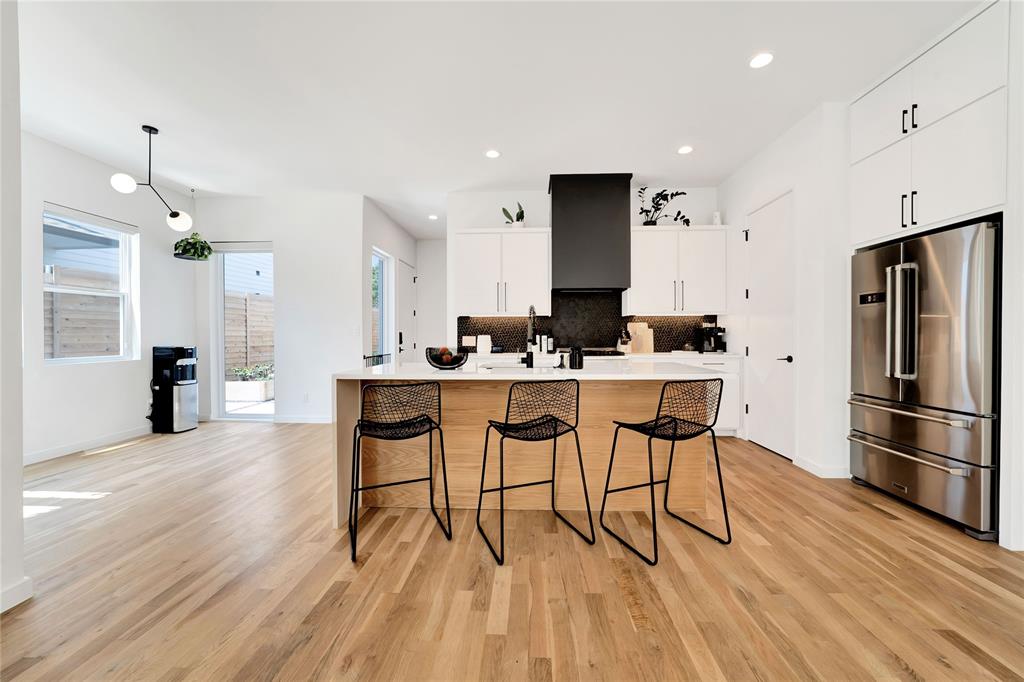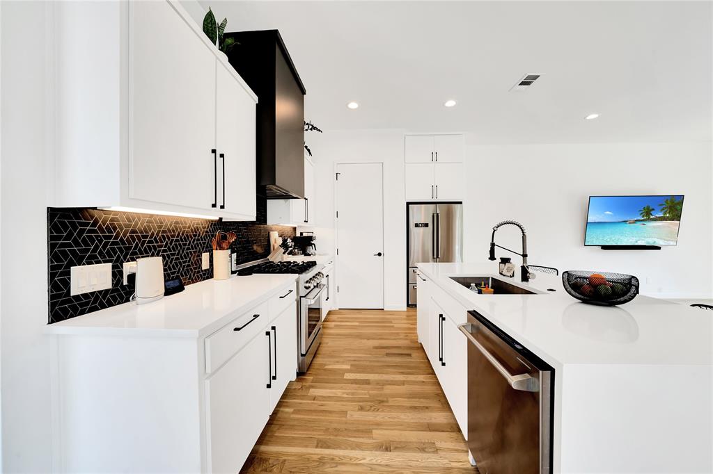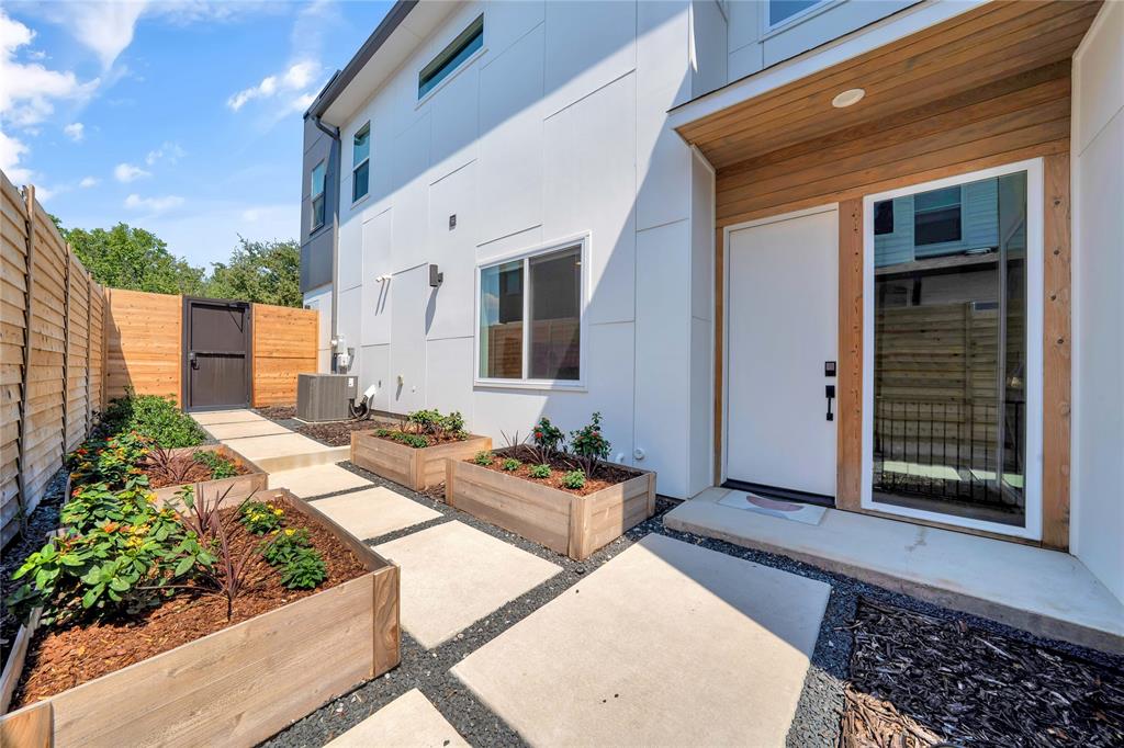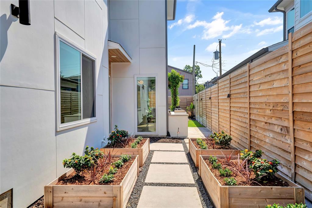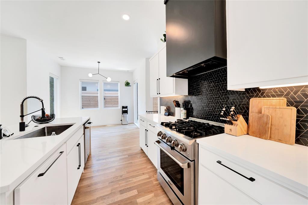 From the moment you arrive, this gated residence makes a statement with striking wood garden beds and a welcoming front entry. Step inside to a home that is as bright and airy as it is stylish, featuring soaring ceilings, sleek modern fixtures, and a seamless open layout. The designer kitchen is a true showpiece, showcasing an oversized island, professional-grade gas range with a stunning hood, and plenty of room for hosting unforgettable gatherings. A first-floor guest suite doubles as the perfect home office, offering both comfort and flexibility.