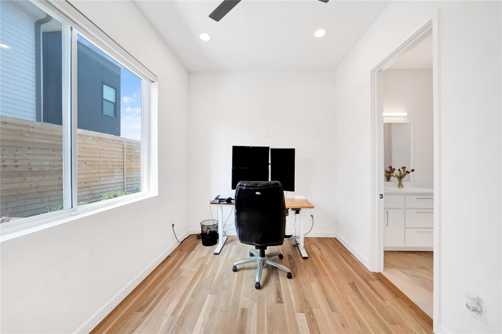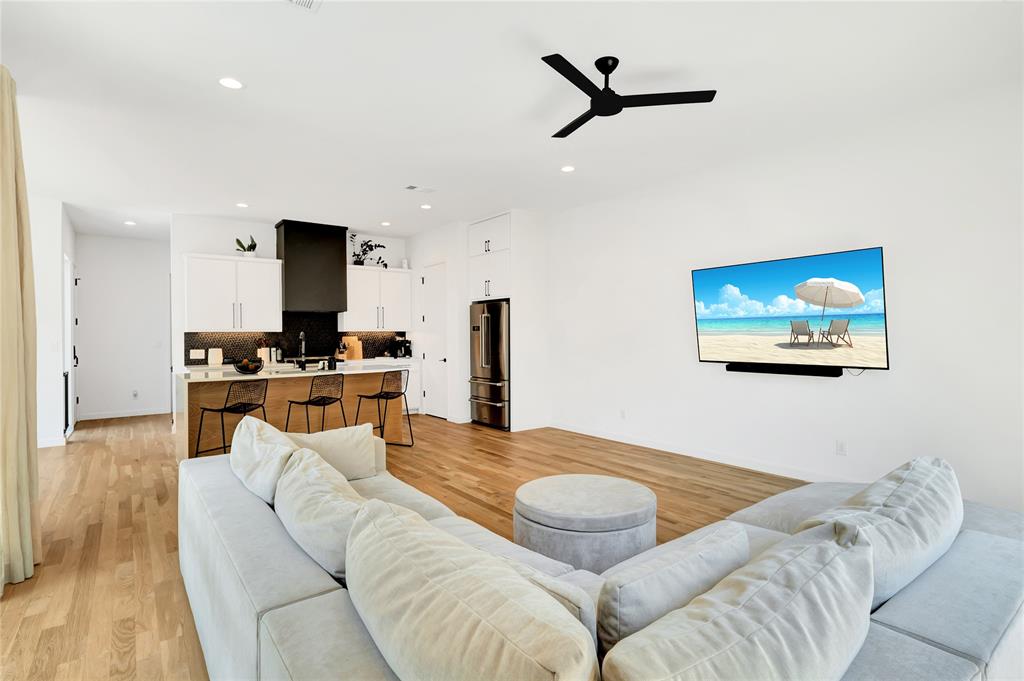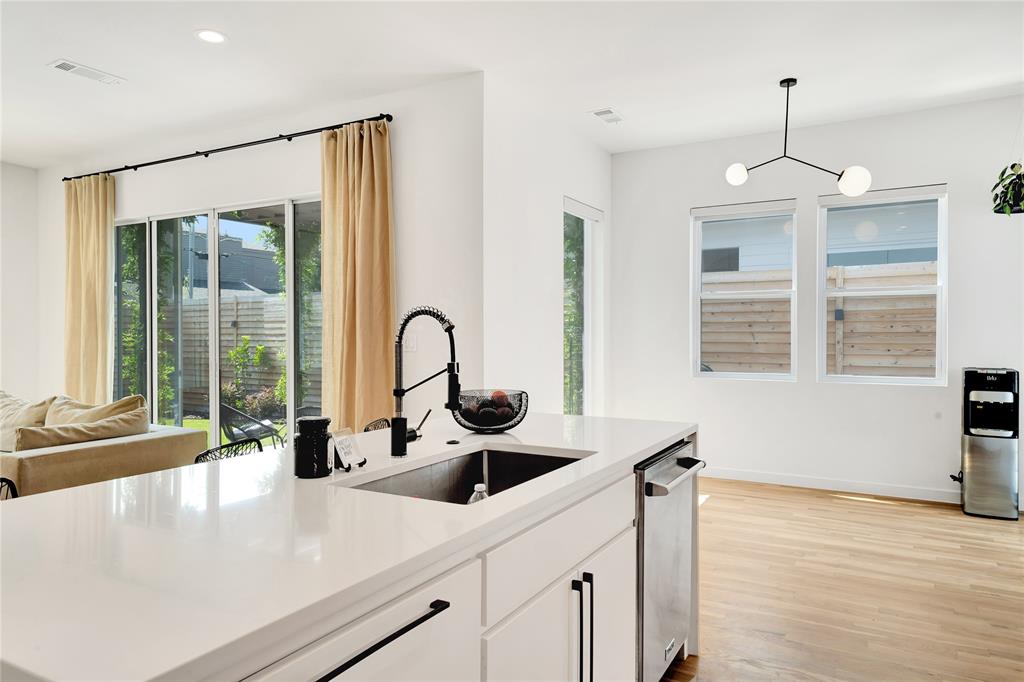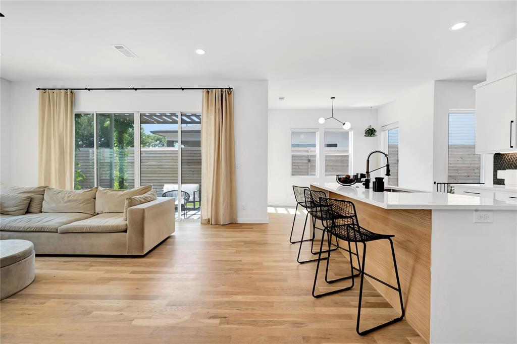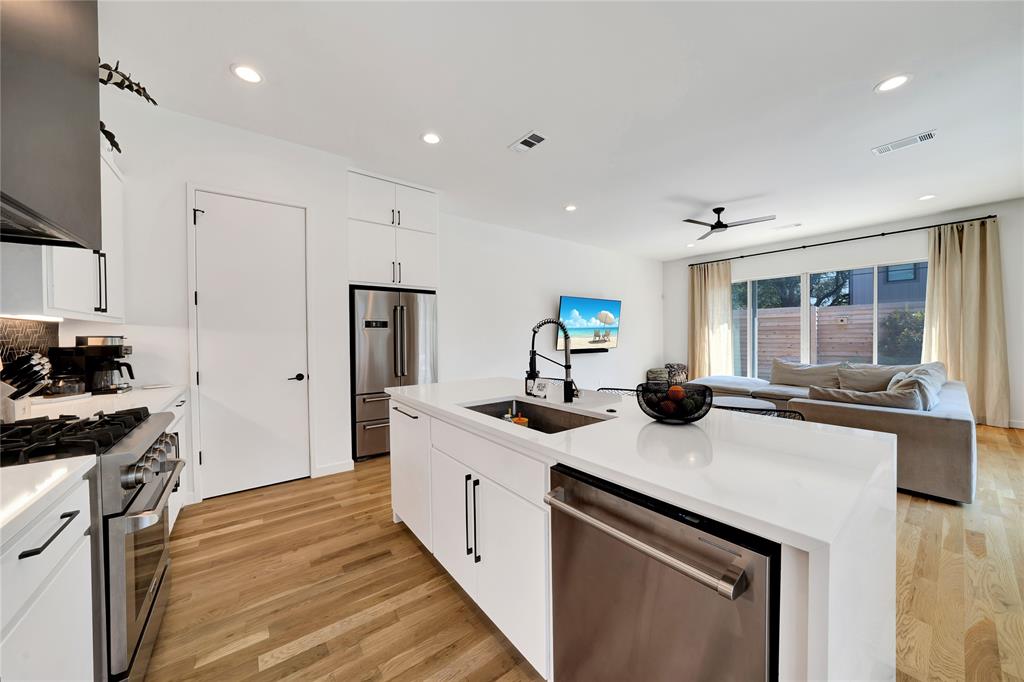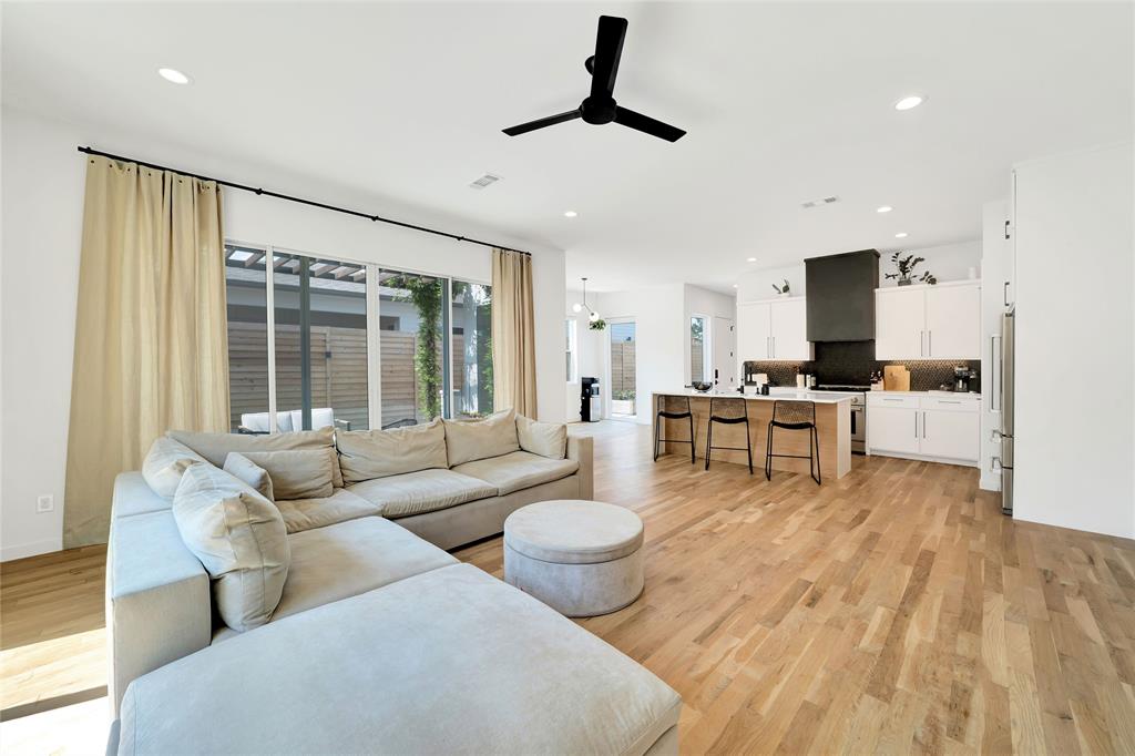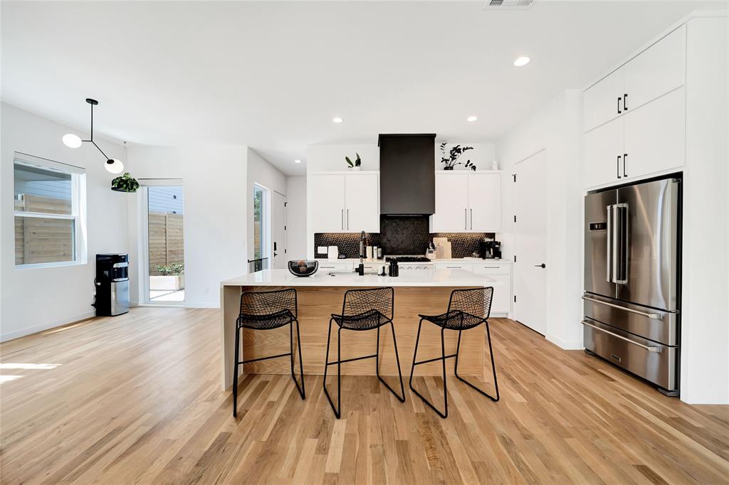 From the moment you arrive, this gated residence makes a statement with striking wood garden beds and a welcoming front entry. Step inside to a home that is as bright and airy as it is stylish, featuring soaring ceilings, sleek modern fixtures, and a seamless open layout. The designer kitchen is a true showpiece, showcasing an oversized island, professional-grade gas range with a stunning hood, and plenty of room for hosting unforgettable gatherings. A first-floor guest suite doubles as the perfect home office, offering both comfort and flexibility.
