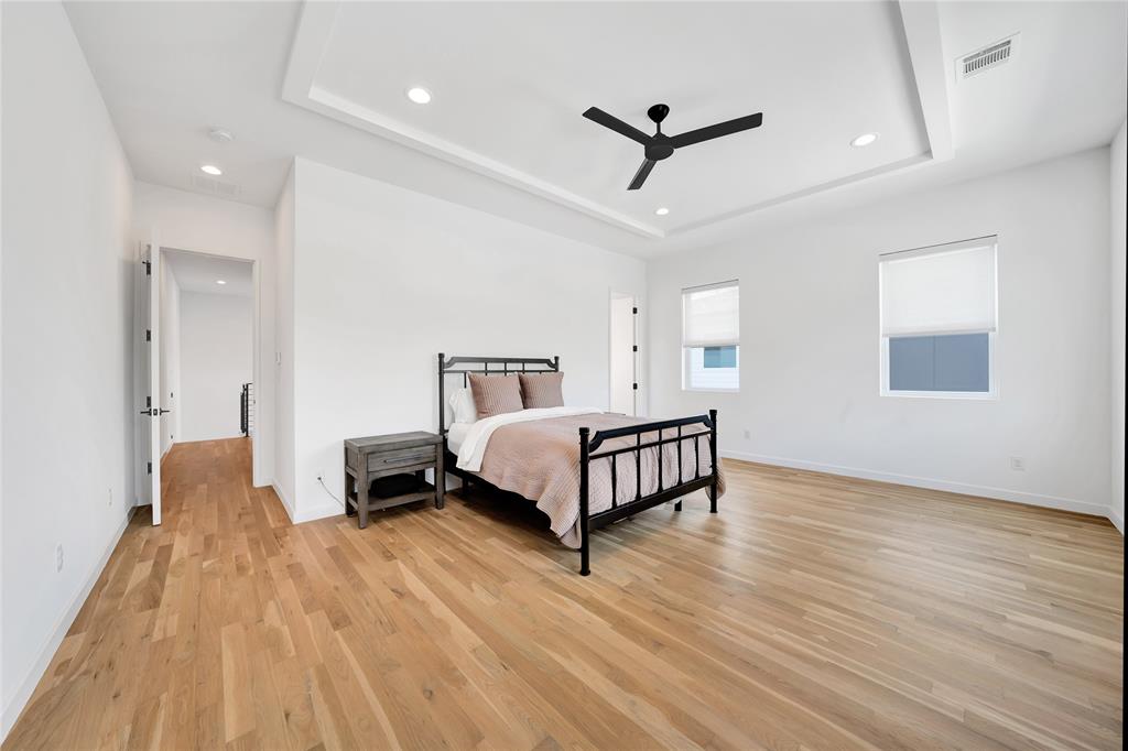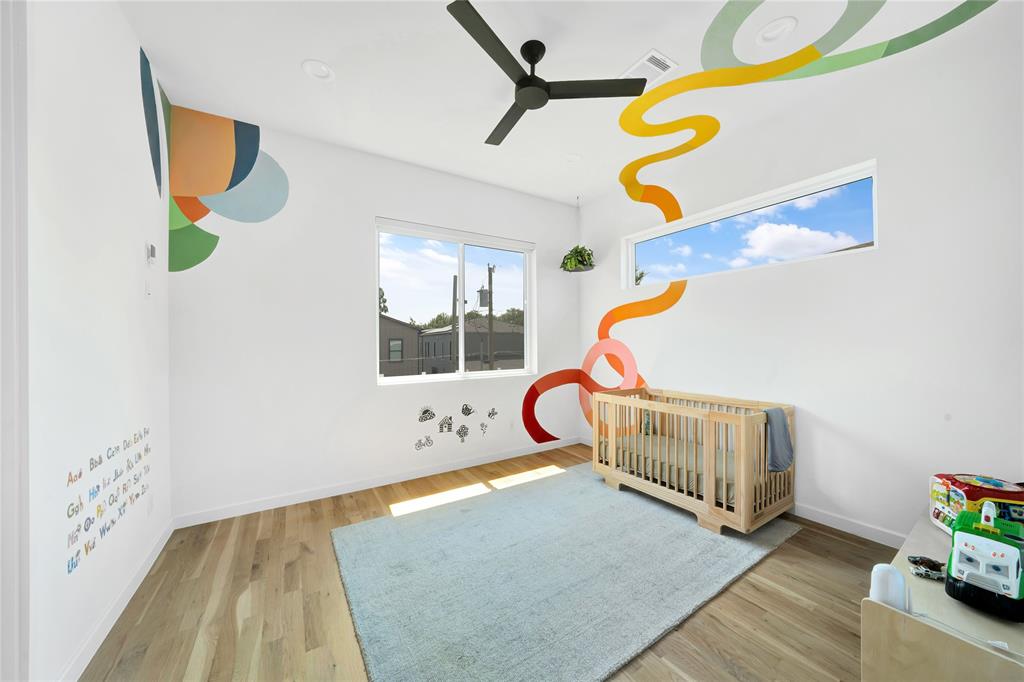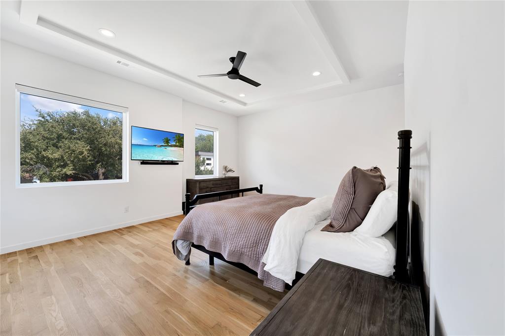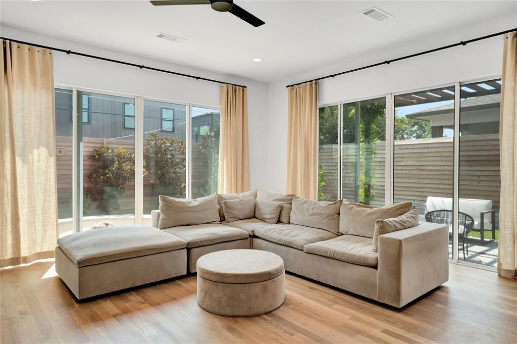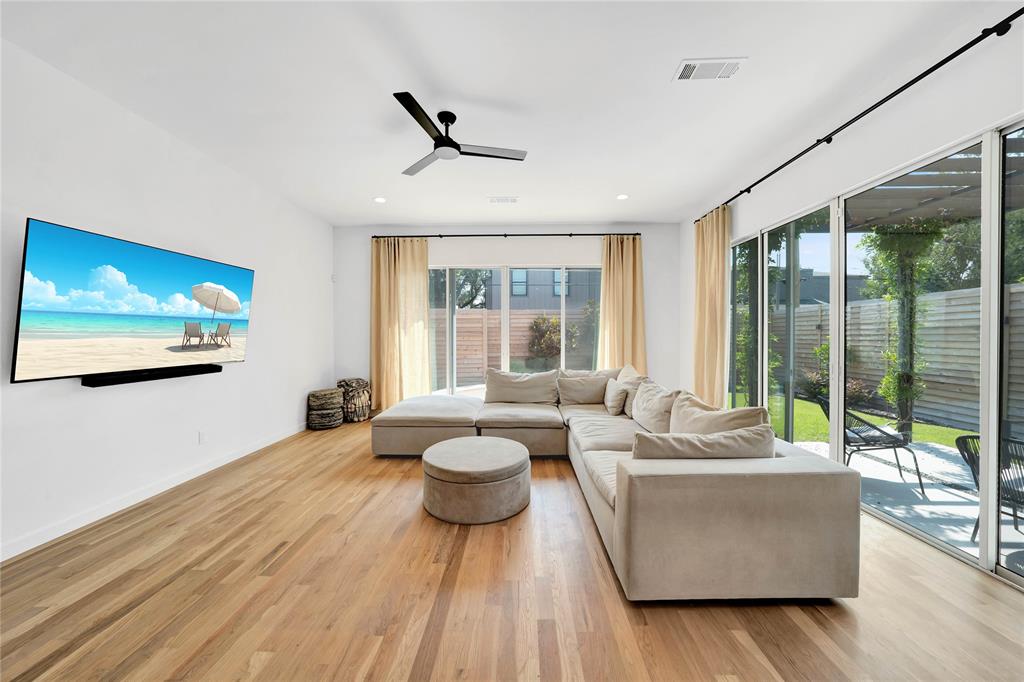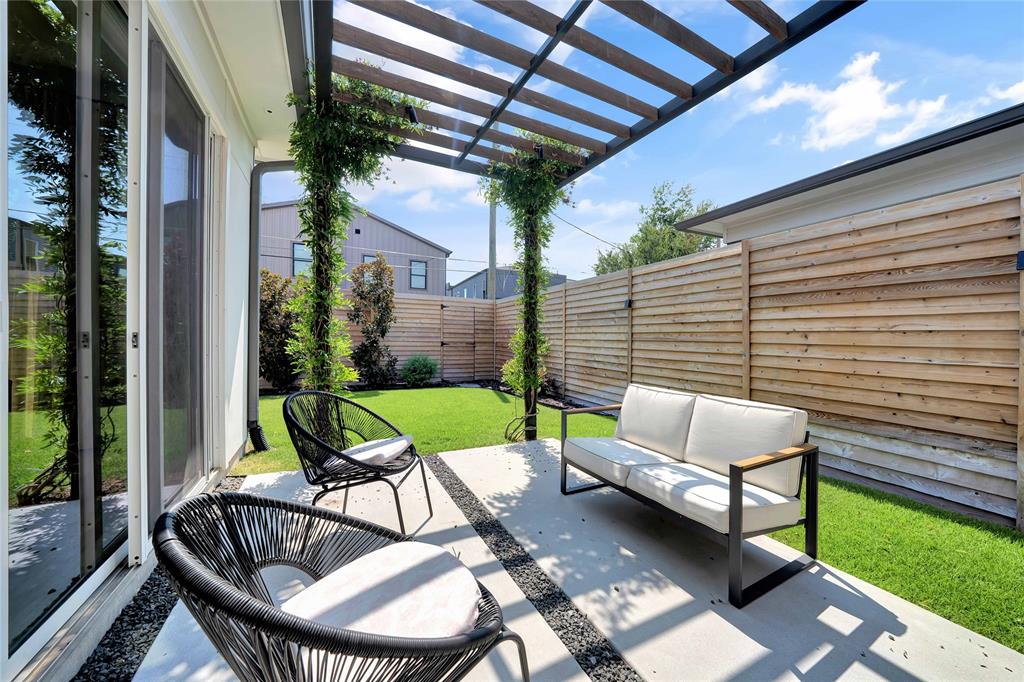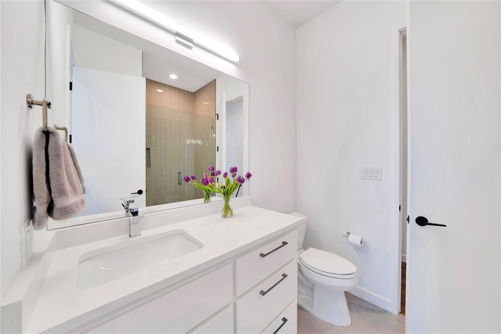 From the moment you arrive, this gated residence makes a statement with striking wood garden beds and a welcoming front entry. Step inside to a home that is as bright and airy as it is stylish, featuring soaring ceilings, sleek modern fixtures, and a seamless open layout. The designer kitchen is a true showpiece, showcasing an oversized island, professional-grade gas range with a stunning hood, and plenty of room for hosting unforgettable gatherings. A first-floor guest suite doubles as the perfect home office, offering both comfort and flexibility.