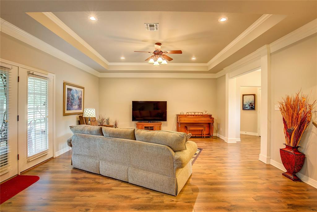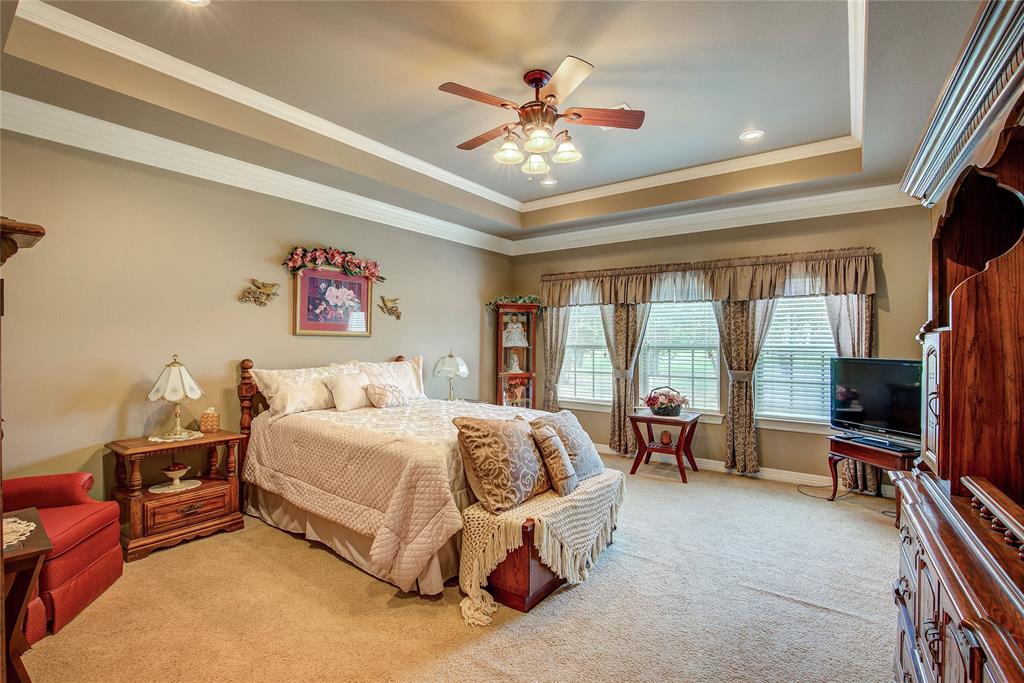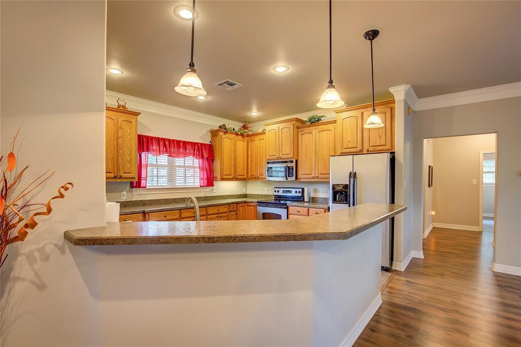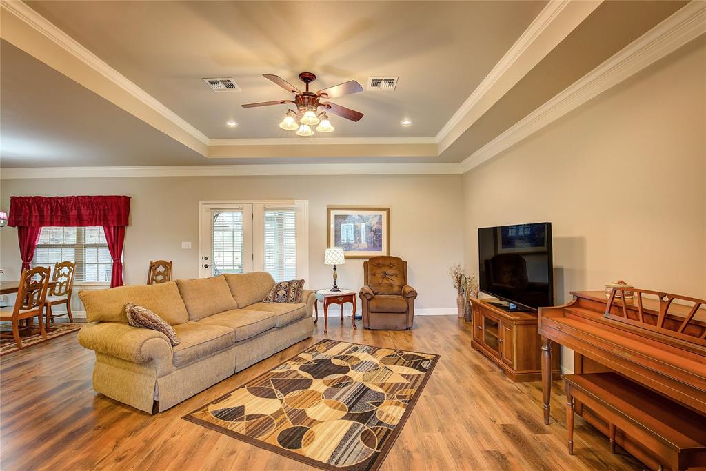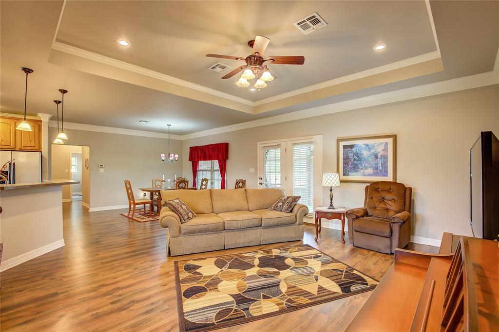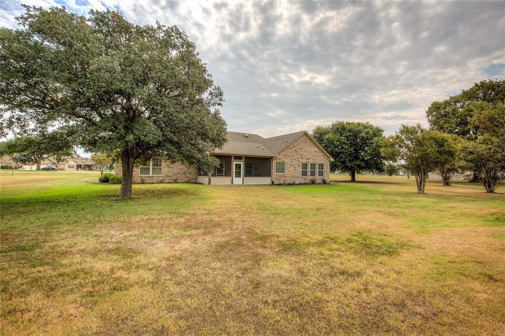 Beautiful brick home on the 17th fairway at Lake Fork Golf Course. This spacious home with an open floor plan features 3 bedrooms and 2 full baths. The Primary Bedroom features an ensuite bath with walk-in shower and large walk-in closet. The split bedroom layout comes with a 2nd full bathroom for additional family or guest privacy. The large living area with added dining space is perfect for entertaining friends and family for the holidays. The kitchen has plenty of room with lots of cabinet and counter space. Additional features are the convenient and roomy laundry room with sink and cabinets as well as a covered, screened in back porch area to enjoy your cookouts. Also, check out the spacious garage with epoxy coated flooring and a separate side entry door for the golf cart. Community amenities are conveniently located for residence. Whether its golfing on a pristine, well-manicured course or fishing on one of the most renowned angler lakes, its only minutes away!
