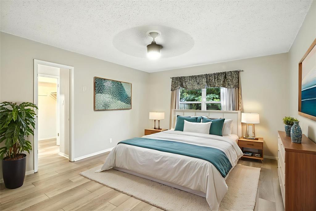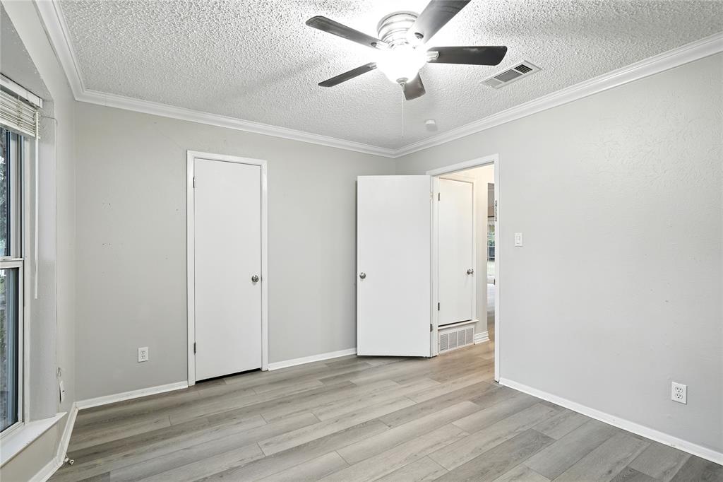 The split-bedroom floor plan ensures privacy, with the primary suite offering dual vanities and double closets. Every bedroom has generous closet space, and a separate laundry room is located just off the garage.
