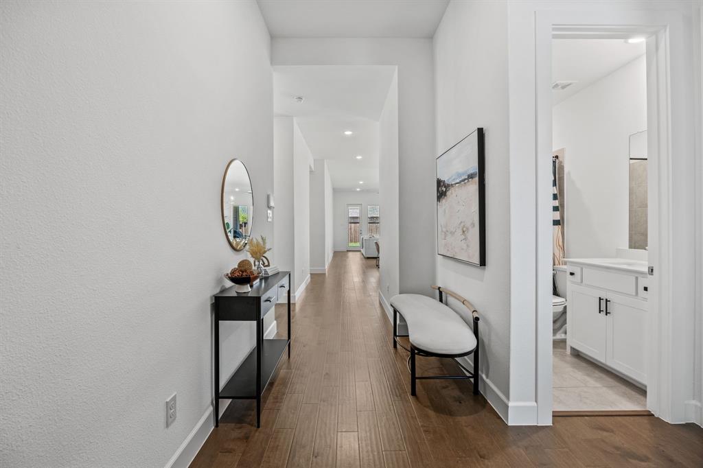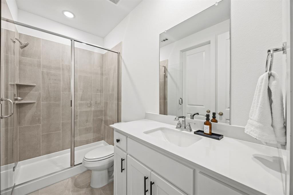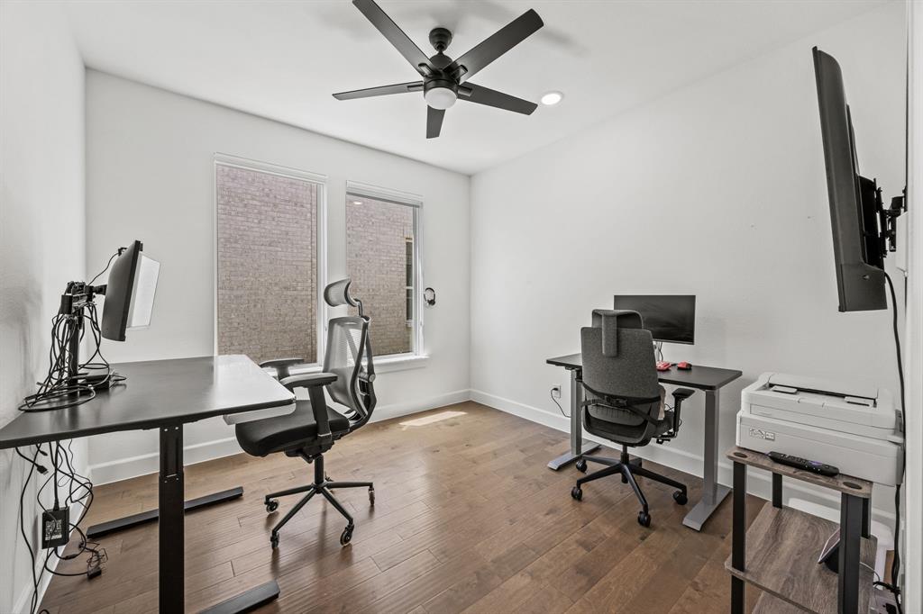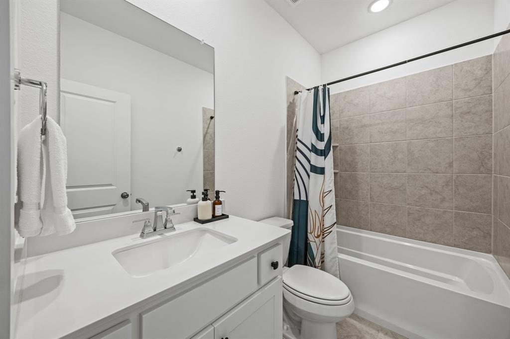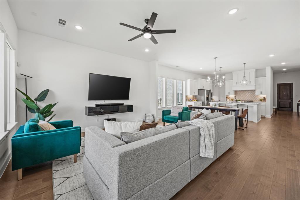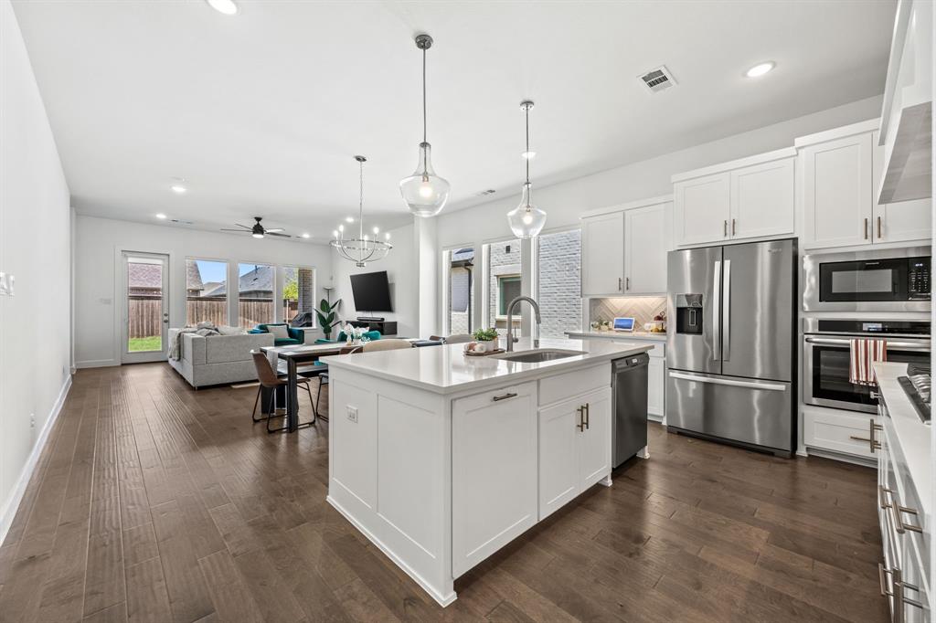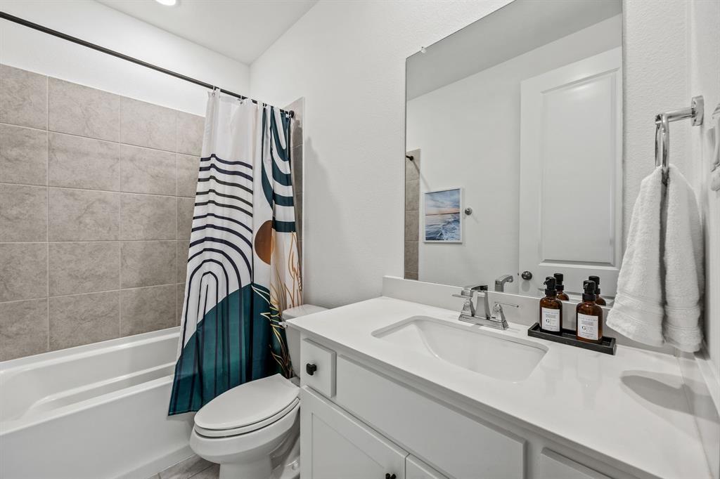 The main level features an open-concept layout with three bedrooms, three full baths, and a private study—ideal for working from home or used as a comfy den or downstairs playroom. The kitchen showcases crisp white cabinetry, a striking herringbone ceramic backsplash, quartz countertops, stainless steel gas appliances, and a spacious walk-in pantry. It flows effortlessly into the light-filled living and dining areas, making entertaining a breeze. Upstairs, you'll find a large game room, a fourth bedroom, and a full bath—perfect for guests, teens, or additional living space. Enjoy access to a community pool and playground, all with a low annual HOA.