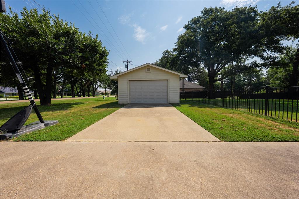 Located in the desirable Cedar Creek Country Club, this home offers access to golf, tennis, swimming, and fine dining- all just 45 minutes from Dallas. Situated on a spacious corner lot of approximately half an acre, the property features a wrought iron fenced backyard with plenty of room for outdoor enjoyment. Inside, the open living and dining area creates a warm and inviting atmosphere, enhanced by tile flooring and a cozy fireplace. The kitchen is well-appointed with granite countertops, a full stainless steel appliance package, and a pantry for added storage. The private primary suite includes a generous walk-in closet and a spa-style bath with a large walk-in shower. Two guest bedrooms share a convenient adjoining bath, offering comfort and functionality for family or visitors. Practical features include an oversized garage with a workshop area, plus an additional detached garage providing space for extra vehicles, hobbies, or storage. This property blends comfort, convenience, and country club living in one exceptional location.