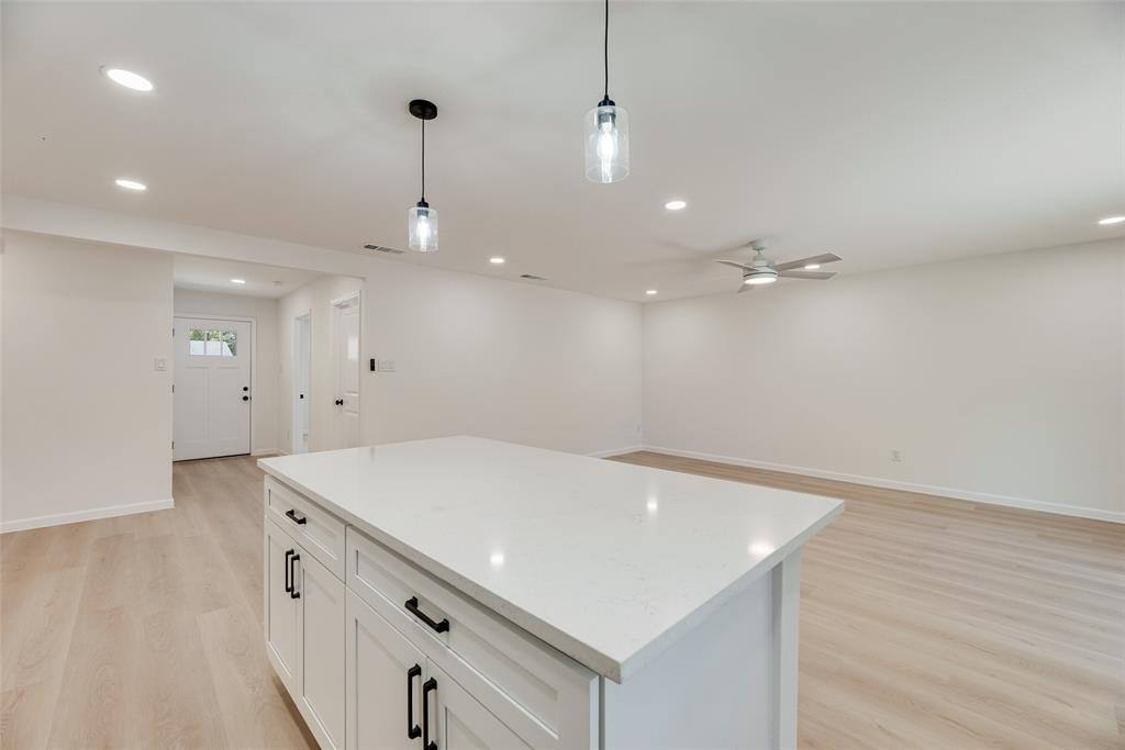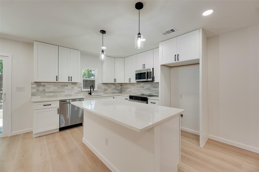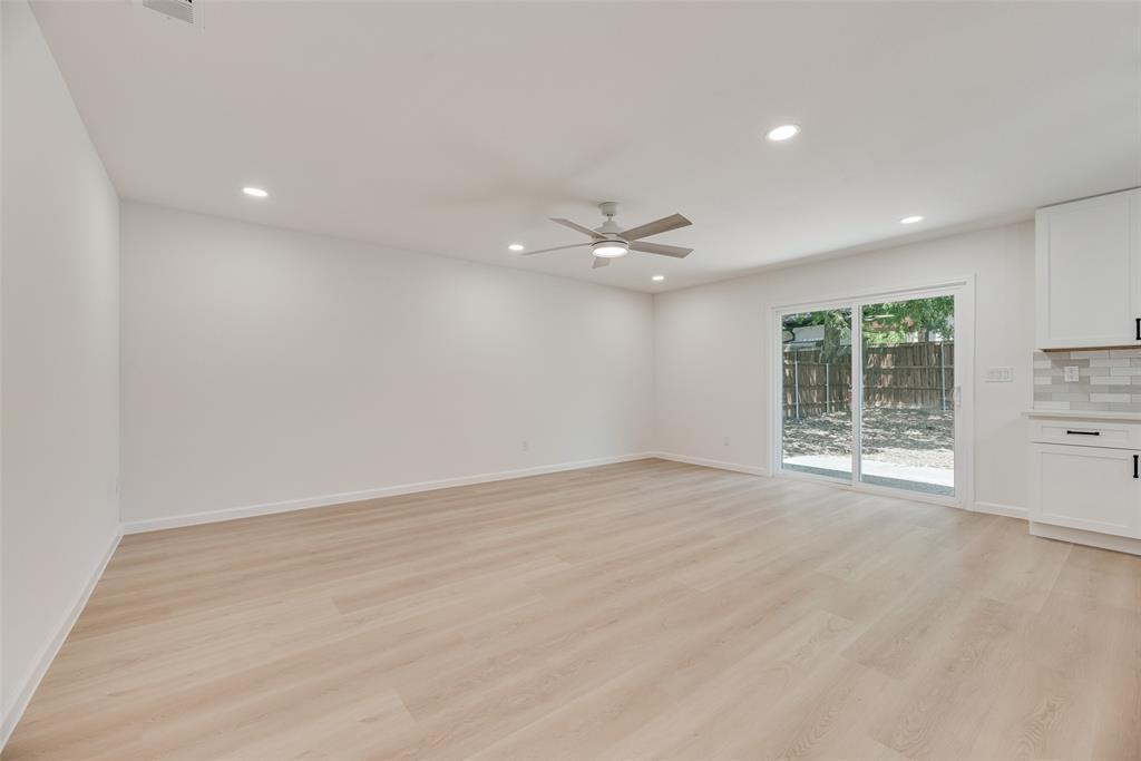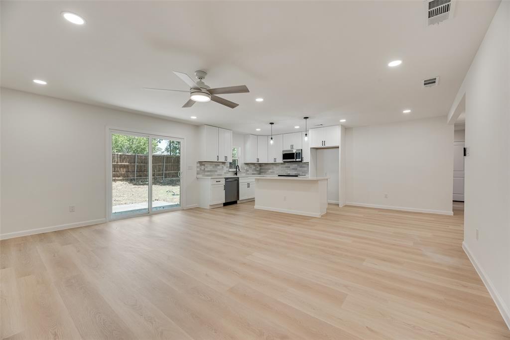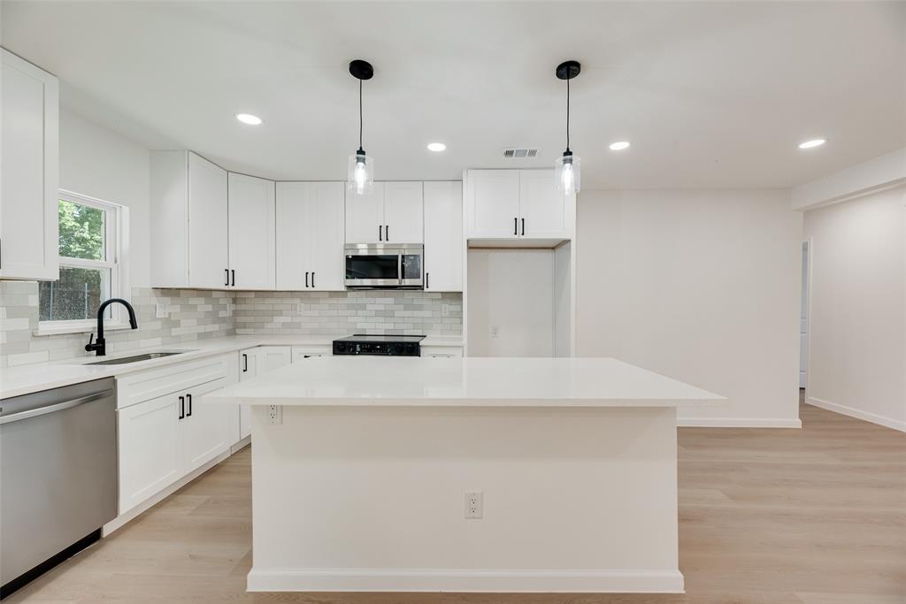 Welcome to this beautifully updated 4-bedroom, 2-bathroom home that blends modern design with comfortable living. From the moment you walk in, you'll notice the open layout connecting the kitchen, dining, and living spaces. Perfect for everyday living and entertaining. The brand-new kitchen features stunning quartz countertops, sleek ceiling-height cabinetry, and a built-in space for your refrigerator, offering both style and functionality. Throughout the home, you'll find luxury vinyl plank and tile flooring. Durable, stylish, and easy to maintain. The spacious primary suite offers a private retreat with a large walk-in shower, frameless glass door, and bold black fixtures that add a designer touch. The additional bedrooms are well-sized and share a refreshed full bathroom. Step outside into the large, private backyard ideal for relaxing, gardening, or hosting friends and family. Everything in this home is brand new, giving you peace of mind and a fresh start. Conveniently located near major highways, shopping, and dining, this home is the perfect blend of comfort, quality, and location.