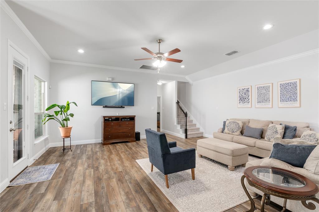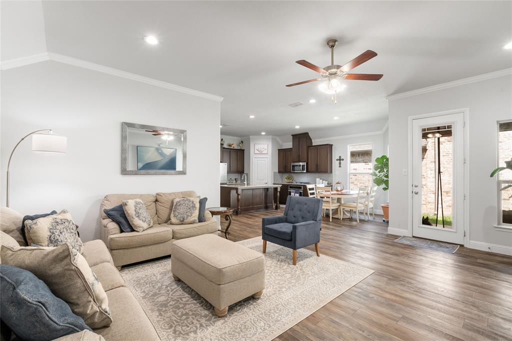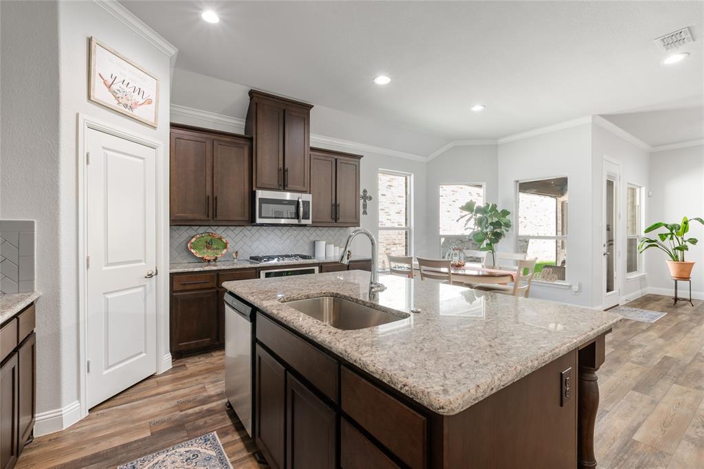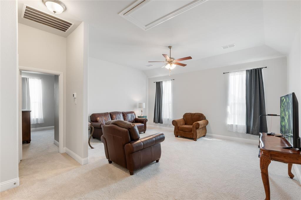 Stunning Townhome in Sought-After Harvest Community – Argyle ISD Step into this beautifully maintained and move-in ready townhome located in the award-winning Harvest community in Argyle. Built in 2019, this spacious two-story home combines modern design with everyday comfort in a prime location. The light-filled open-concept main floor boasts a designer kitchen with sleek granite countertops, stainless steel appliances, a gas stove, and ample cabinetry—perfect for entertaining or daily living. You’ll love the versatile flex room, ideal for a home office, gym, or playroom. The oversized primary suite features a luxurious ensuite bath and a custom walk-in closet with extensive built-ins. Downstairs also includes a secondary bedroom and a full bath, all set on easy-care luxury vinyl plank flooring—no carpet! Upstairs, you'll find a spacious game room, two additional bedrooms, and another full bath—ideal for guests or a growing family. Enjoy resort-style amenities right in your neighborhood: pools, parks, trails, a fitness center, community events, and even a charming on-site coffee shop. Located within the top-rated Argyle ISD, and just steps from Argyle West Elementary. HOA perks include front yard maintenance, cable, and internet—giving you more time to enjoy life. This townhome is priced to sell and offers incredible value in one of DFW’s most desirable master-planned communities. Don’t miss your chance—schedule your showing today! Listing agent is related to the sellers. All information to be verified by the Buyers and Buyer's Agent. Moving out mid October or before.