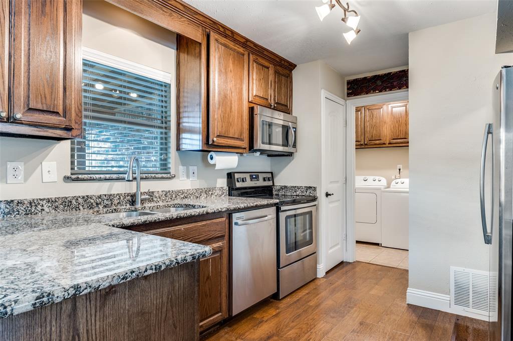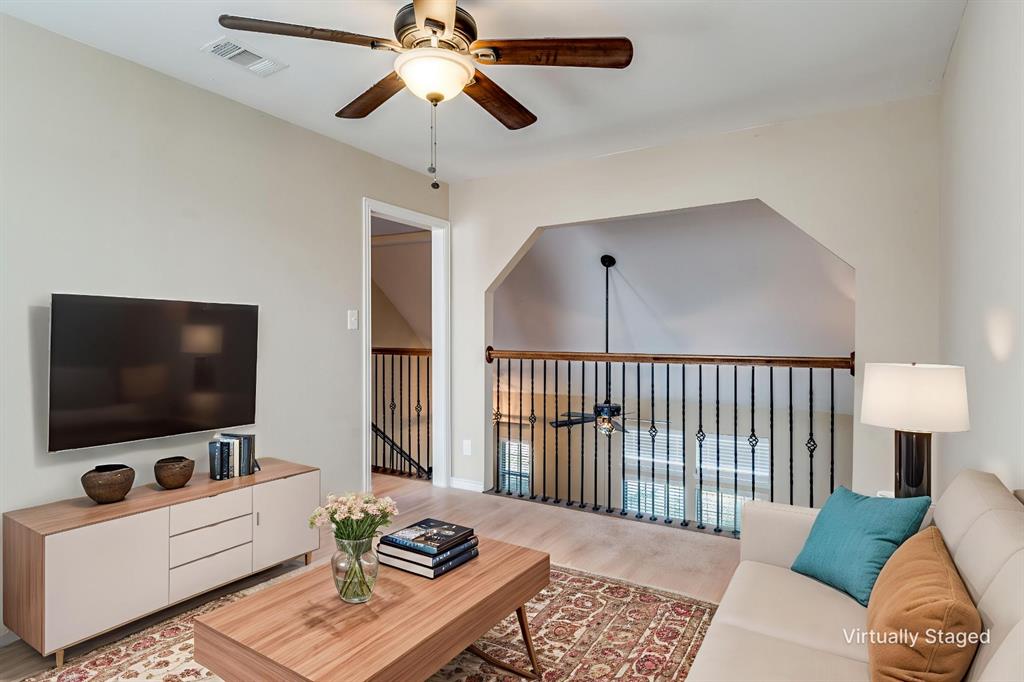 Welcome to this beautifully maintained home that offers both charm and modern convenience. From the moment you arrive, you will notice the great curb appeal highlighted by a welcoming covered front porch that sets the tone for the warmth inside. Step into the main living area where wood floors flow through the common spaces creating a timeless and inviting atmosphere. The living room features a cozy fireplace that serves as the perfect focal point for gatherings with family and friends. The kitchen is designed for both style and function with granite countertops, stainless steel appliances, and plenty of cabinetry for storage. This space opens to the dining area making it ideal for everyday living and entertaining. The thoughtful layout continues with large and spacious bedrooms that provide comfort and privacy for everyone in the household. The primary suite includes a renovated shower that brings a touch of luxury along with a generous walk in closet. Upstairs you will find both a loft and a versatile flex space that can be tailored to your lifestyle whether that is a game room, home office, or media area. One of the secondary bedrooms upstairs is exceptionally large offering endless possibilities for use. Every bedroom is well sized and includes walk in closets to keep storage simple and organized. Step outside to enjoy a covered back patio that is perfect for relaxing at the end of the day or hosting weekend cookouts. The backyard is enclosed with a very nice privacy wood fence providing both security and a peaceful setting. This home has been very well cared for and is move in ready with a thoughtful blend of traditional charm and modern updates. It is a wonderful opportunity to own a home that balances comfort, function, and style in a desirable location.