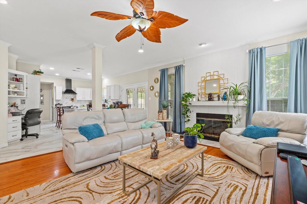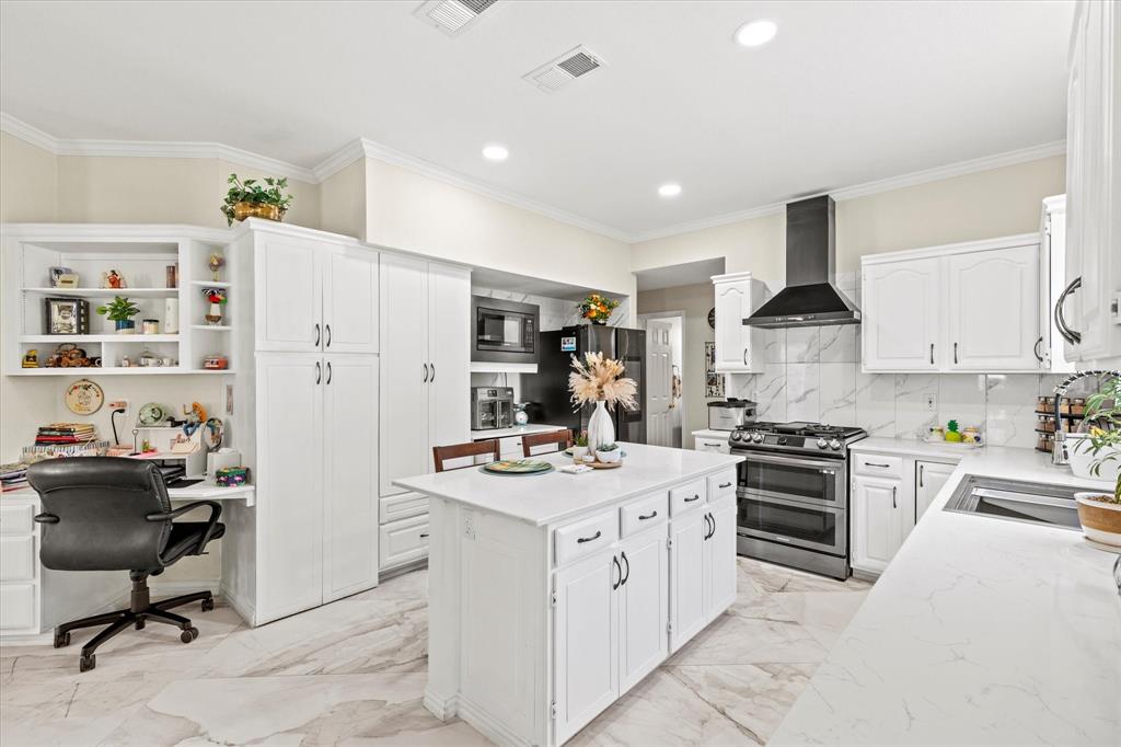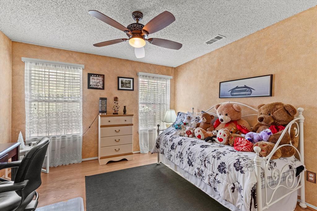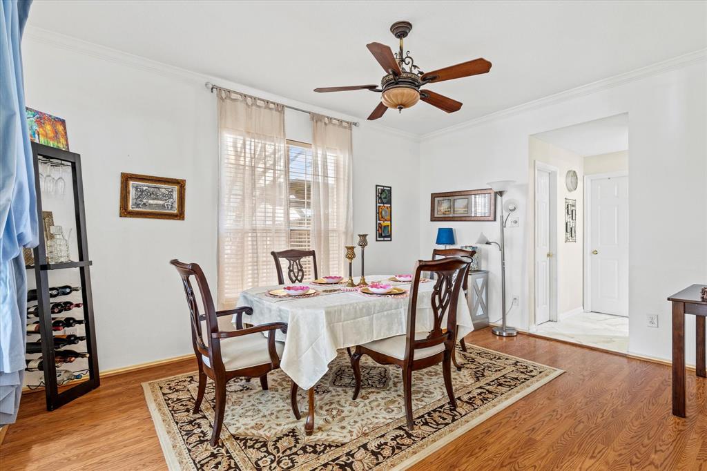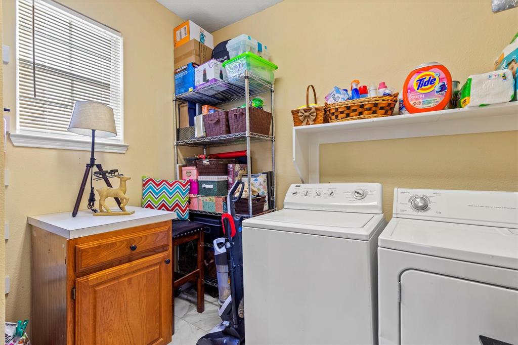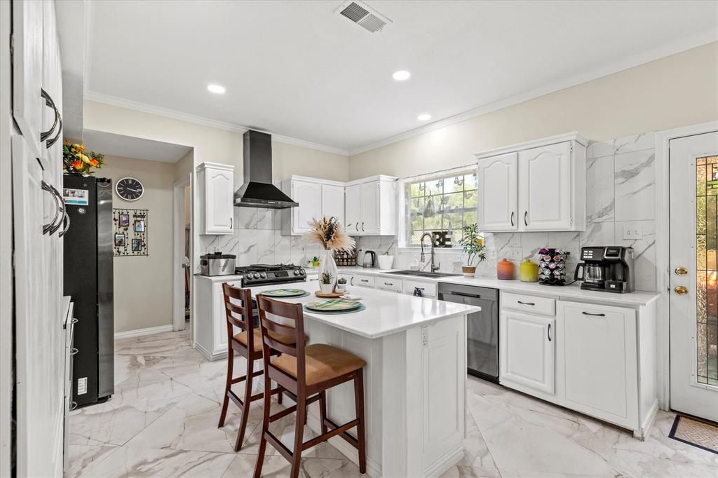 Welcome to this updated Mesquite home! Featuring a dedicated office and formal dining, this home is designed for both work and entertaining. The modern kitchen boasts WiFi-connected appliances—including a double oven with air fryer, gas range, functioning vent and refrigerator—plus tile floors, convenient storage drawers, and an island with bar seating. The open layout flows into a bright living room with a cozy fireplace. Upstairs, the spacious primary suite offers dual sinks, vanity seating, soaking tub, separate shower, and walk-in closet. Two additional bedrooms and a versatile loft provide plenty of space for family or guests. Enjoy the large fenced backyard with a covered patio, green space, and storage shed. Washer and dryer included in the sale! Conveniently located near City Lake Park, Mesquite Golf Club, shopping, dining, and major highways, this home blends modern comfort with community convenience!