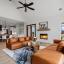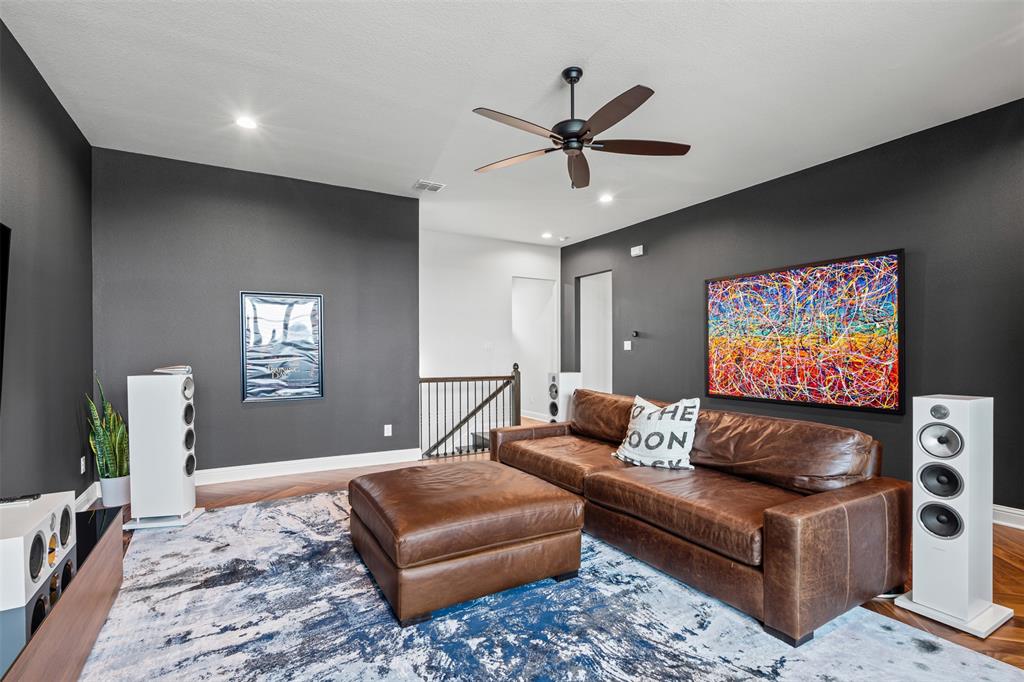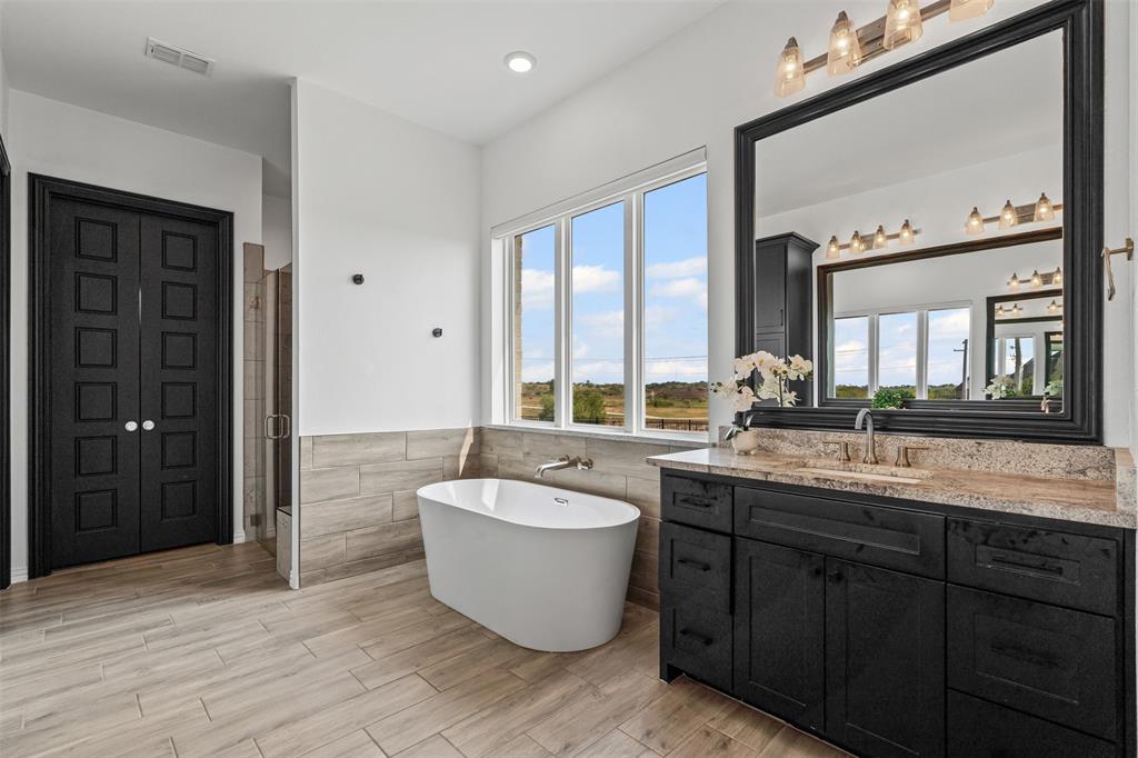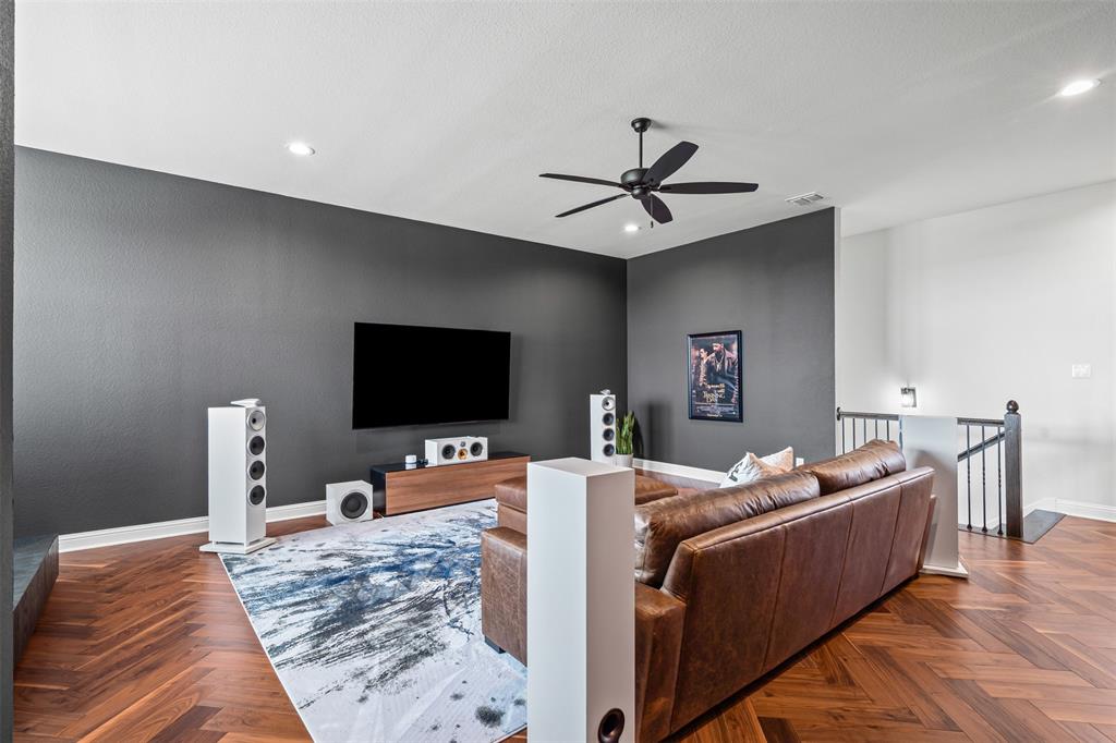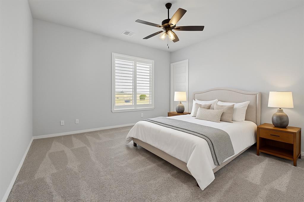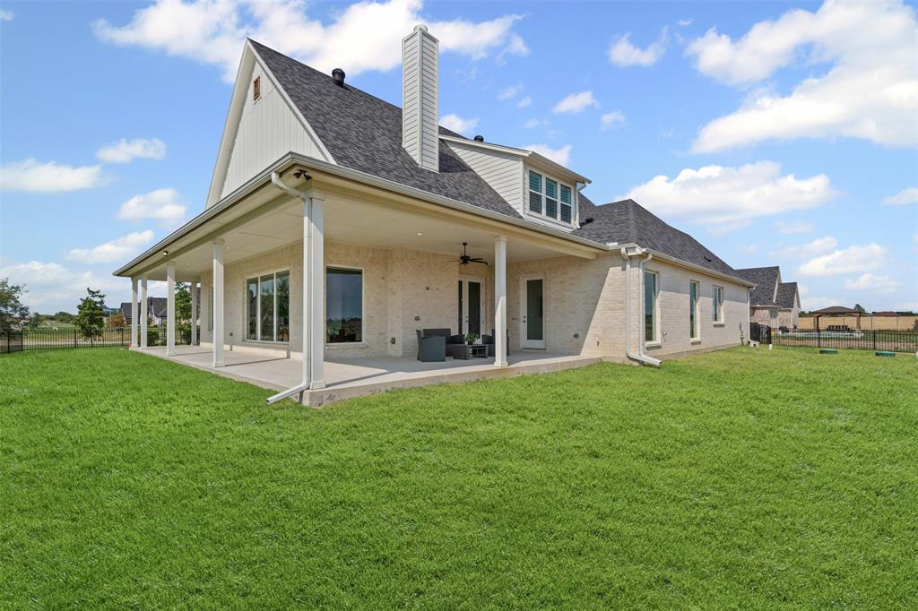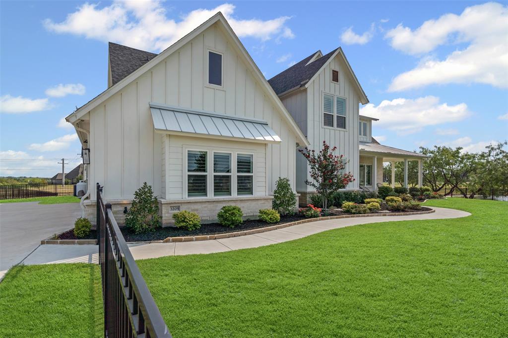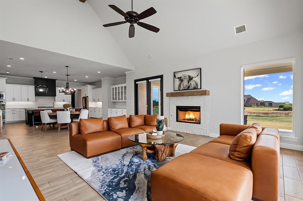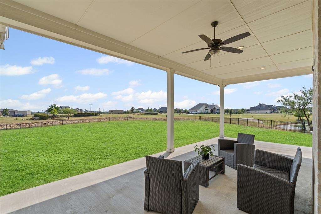 OPEN HOUSE, 2PM - 4PM SATURDAY SEPTEMBER 20TH. Nestled on a one acre lot in the coveted Stardust Ranch community, this stunning home offers the perfect balance of modern luxury and tranquility. Overlooking a sparkling two-acre pond, the home provides unmatched views and unforgettable sunsets, best enjoyed from the expansive wrap-around porch. Inside, floor-to-ceiling windows complemented by automatic shades and elegant plantation shutters fill the home with abundant natural light. The chef-inspired kitchen is a true showstopper, showcasing natural quartzite countertops, a stone backsplash, an oversized island, stainless steel appliances, a five-burner gas cooktop, double ovens, and an abundance of storage including a HUGE walk in pantry. The primary suite is designed for relaxation, with direct patio access, peaceful water views, and a spa-like ensuite bath. Custom herringbone pattern hardwood flooring throughout the owner’s suite (including closet) and the spacious media room adds an elevated, bespoke touch to the home’s refined finishes. A separate downstairs bedroom with a private bath is perfect for guests, while the study, enclosed by French doors, creates a serene retreat for work or creativity. Upstairs, you’ll find a spacious game room, two generously sized bedrooms, a full bath, and convenient walk-in attic storage. This home seamlessly combines elegance, comfort, and breathtaking surroundings, making it a true must see!