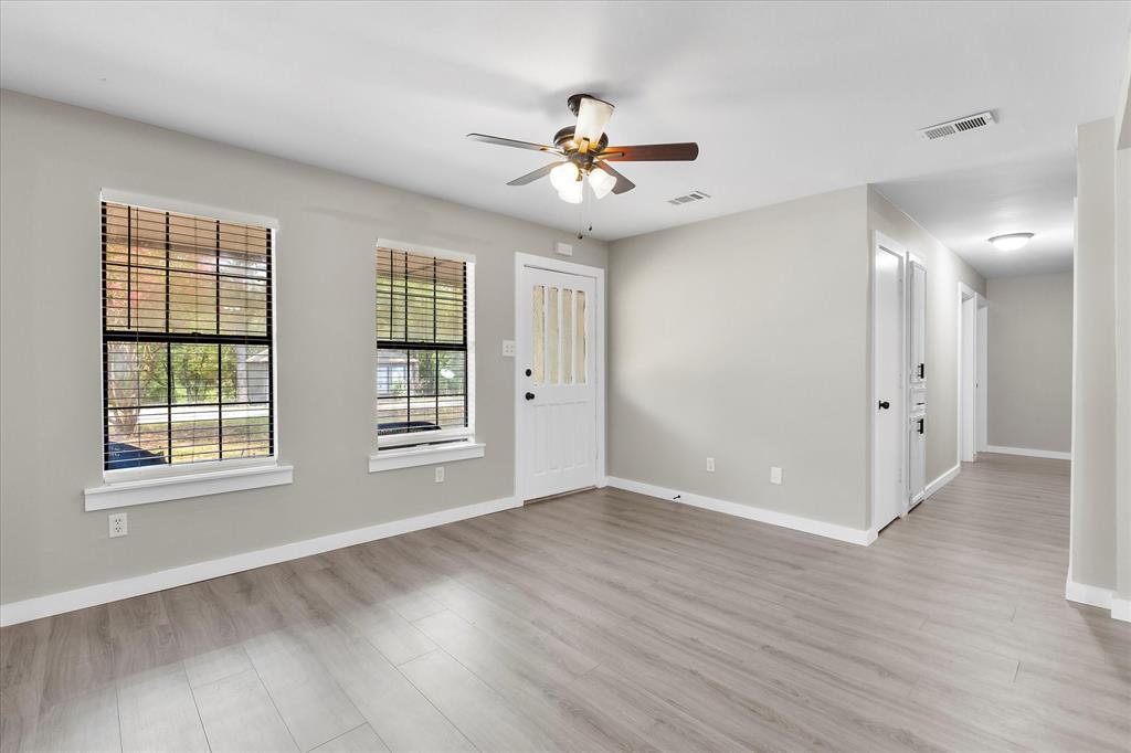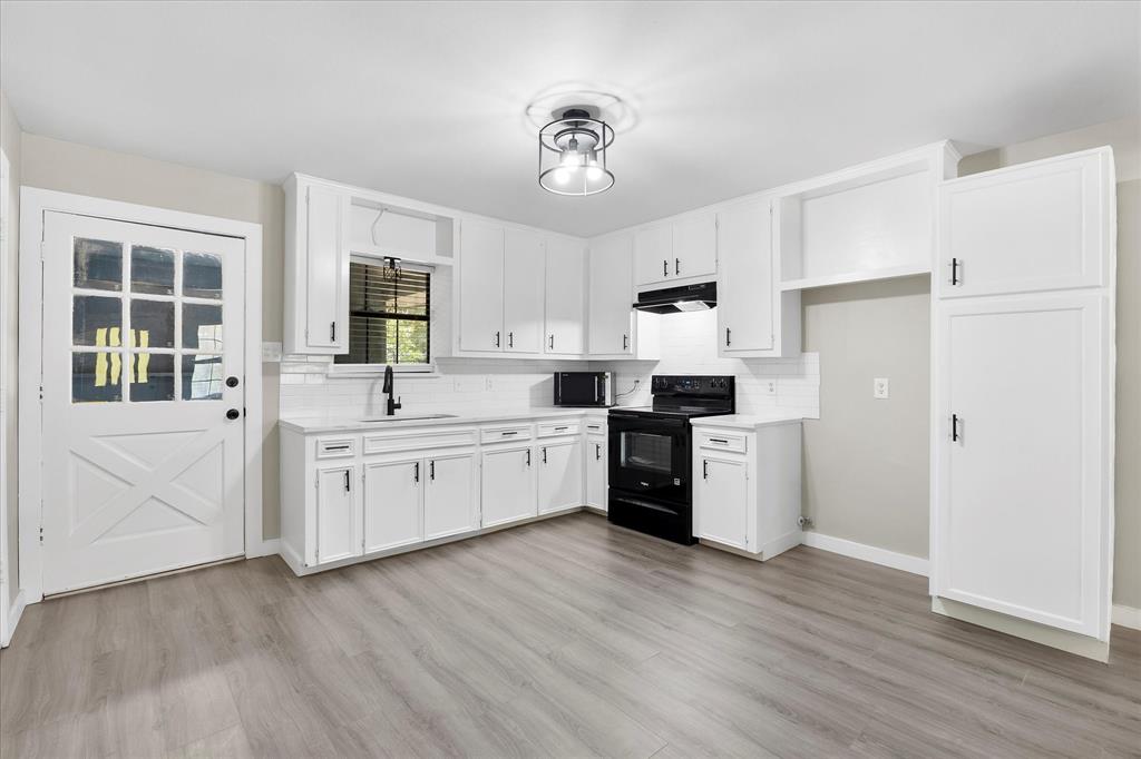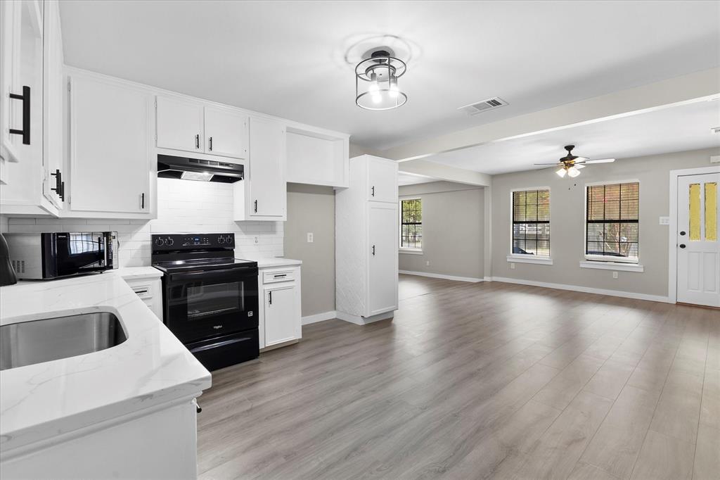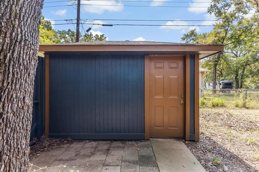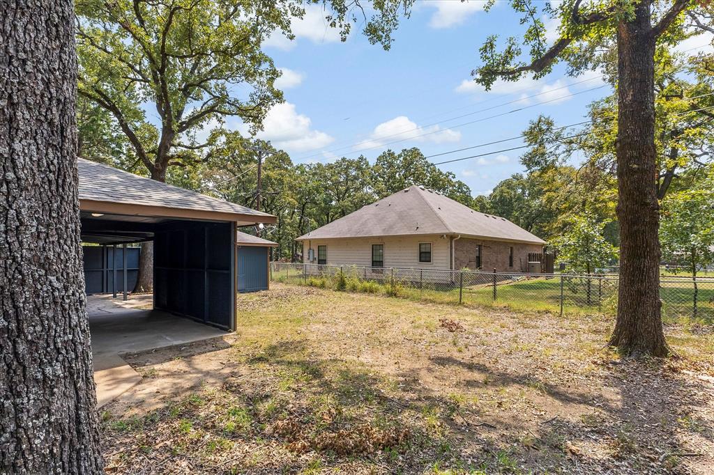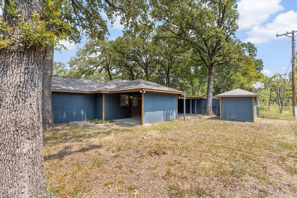 Completely updated and ready for relaxing weekends at the lake, this 3 bedroom 2 bath home is located in a lakefront community with lake access. Fresh paint, black hardware, ceiling fans, and lighting updates create a welcoming modern feel throughout.The spacious living and dining rooms are ideal for gathering, while the kitchen features quartz countertops and a convenient laundry space nearby. The private primary suite offers a dressing area and ensuite bath with a walk in tiled shower. The hallway bath includes a single sink vanity with matching quartz.Enjoy the outdoors on a double size lot with mature trees, a covered front porch, a covered back patio, and plenty of storage with a large building plus an additional unit.You will love the community park and boat launch within walking distance, and the convenience of shopping, dining, and entertainment just minutes away. This home combines the charm of lake living with stylish updates, making it perfect as a getaway or a full time residence.