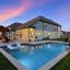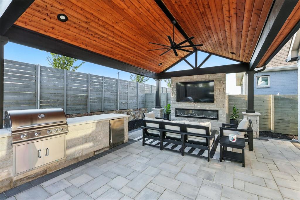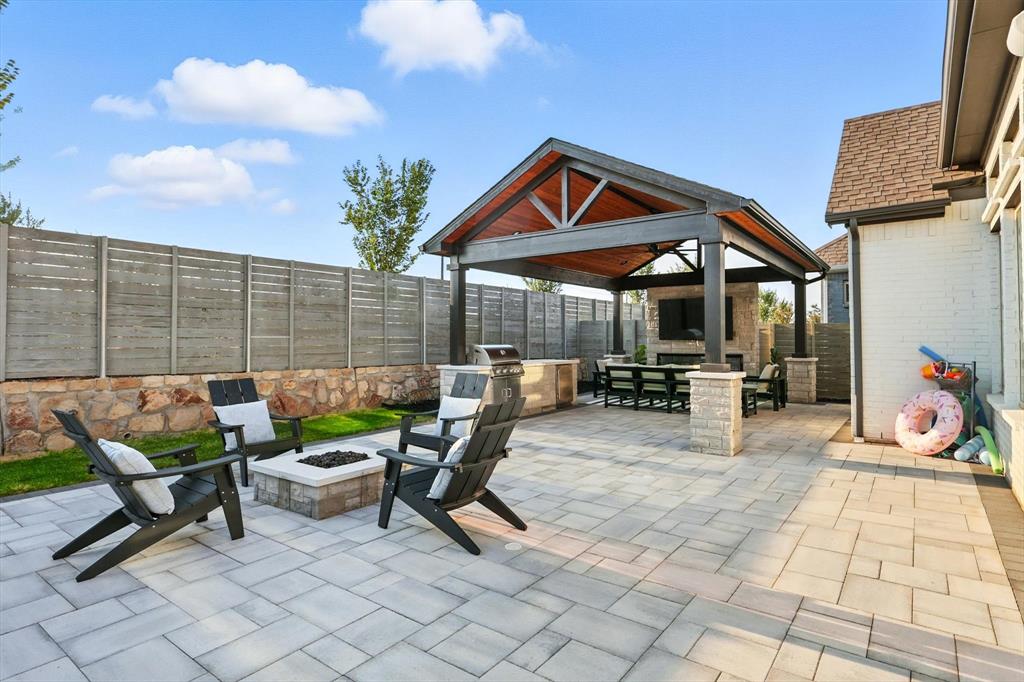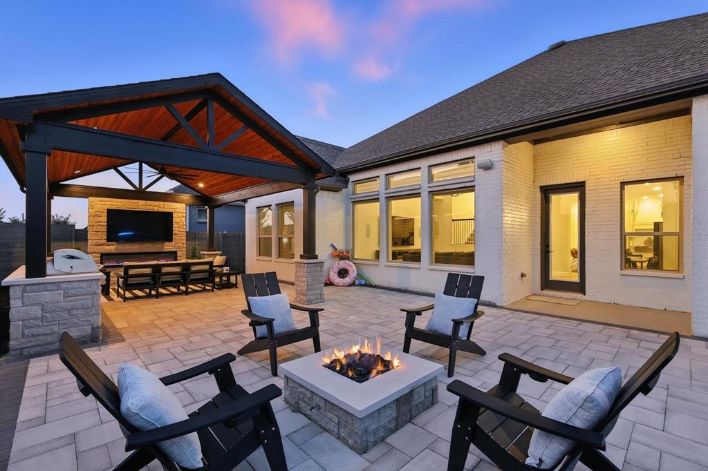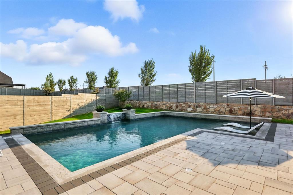 Smart home features include a Clare Home system that allows you to control lighting, temperature, and security with ease, bringing convenience to everyday living. The true showstopper is the backyard. A sparkling pool with a soothing water feature is surrounded by a beautifully designed patio complete with a covered outdoor living space, fireplace, TV setup, and built in grill. It is the perfect place to unwind, host friends, or enjoy family time year round.