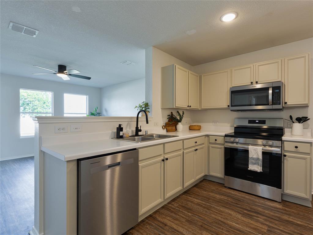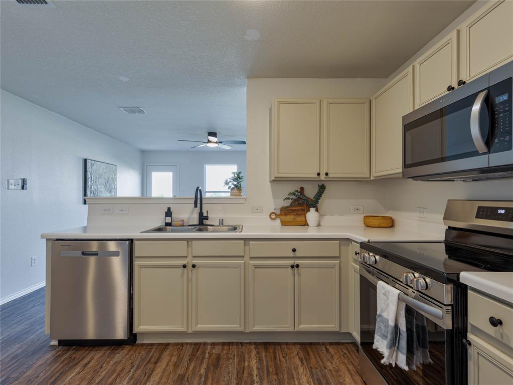 Your new home awaits! This home features 3 bedrooms, 2 baths, and a sun drenched living room. Enjoy turnkey living with upgrades that include fresh interior paint, timeless painted cabinetry, new fixtures throughout, wood like flooring, and new carpet in all bedrooms. The chef of the house can take advantage of the brand new stainless steel appliances that the kitchen boasts, along with the ample storage space! The primary suite offers natural light and a spacious walk-in closet. Located in the Shale Creek community, you can enjoy an active lifestyle with open green spaces, walking trails, a playground, and a Texas-sized pool. The club house has all the amenities at your fingertips, including a well-equipped gym. The location cannot be beat, as it is mere minutes to the restaurants and shops of Tanger Outlets, and is an easy commute to Alliance and Southlake Town Squares. Outside city limits means you get to take advantage of an incredibly low tax rate while enjoying easy access to DFWs finest amenities!