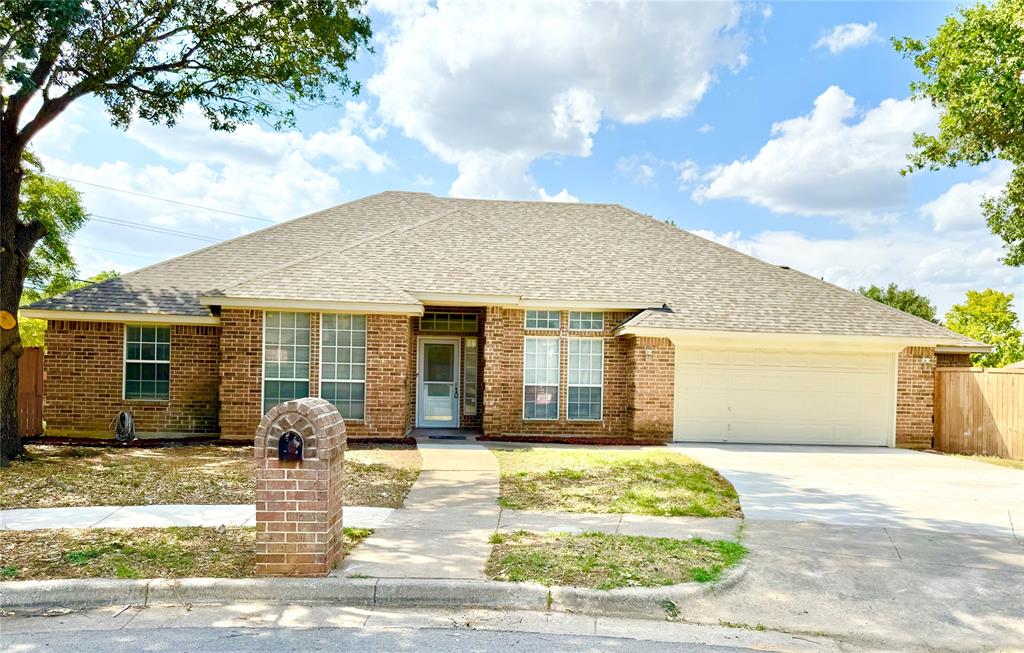 Charming Home in Prime DFW Location! Nestled on a beautifully cur-de-sac lot, this spacious property offers wide, open lot with ample shade—perfect for relaxing outdoors. Inside, you'll find an open floor plan featuring a large living room ideal for entertaining, along with 4 generously sized bedrooms and 2 fully upgraded bathrooms. The kitchen has been refreshed with stunning granite countertops, brand-new stainless steel appliances, freshly painted cabinets, and modern lighting. Both bathrooms feature upgraded glossy tile in the showers, adding a sleek and stylish touch. Enjoy the elegance of brand-new flooring throughout—no carpet—and a redesigned fireplace that serves as a cozy centerpiece. Additional highlights include fresh interior paint, updated light fixtures, and a convenient location just minutes from Highways 121, 183, DFW Airport, and top shopping destinations. Situated in the heart of the Metroplex, this home combines comfort, style, and accessibility. Must see!