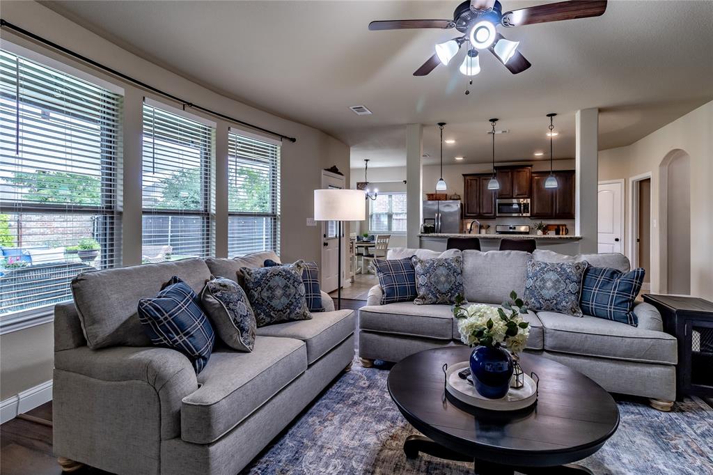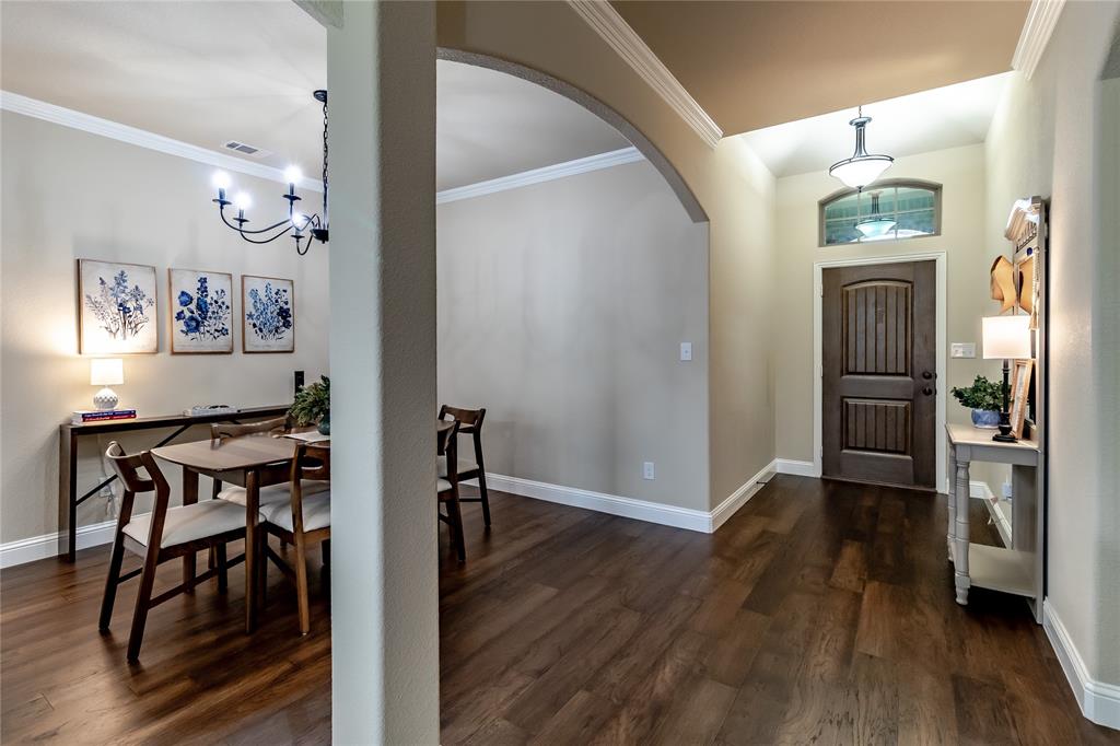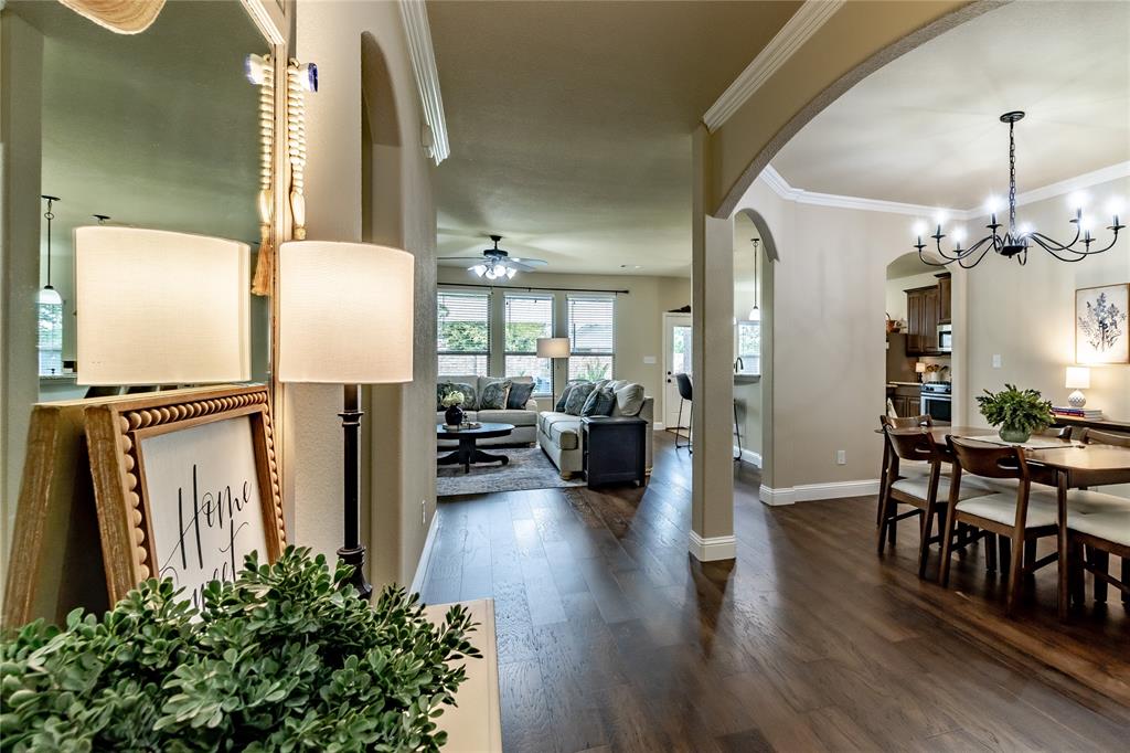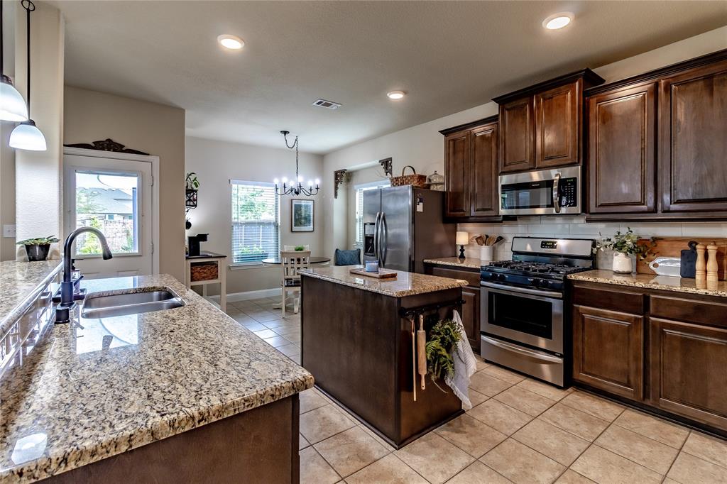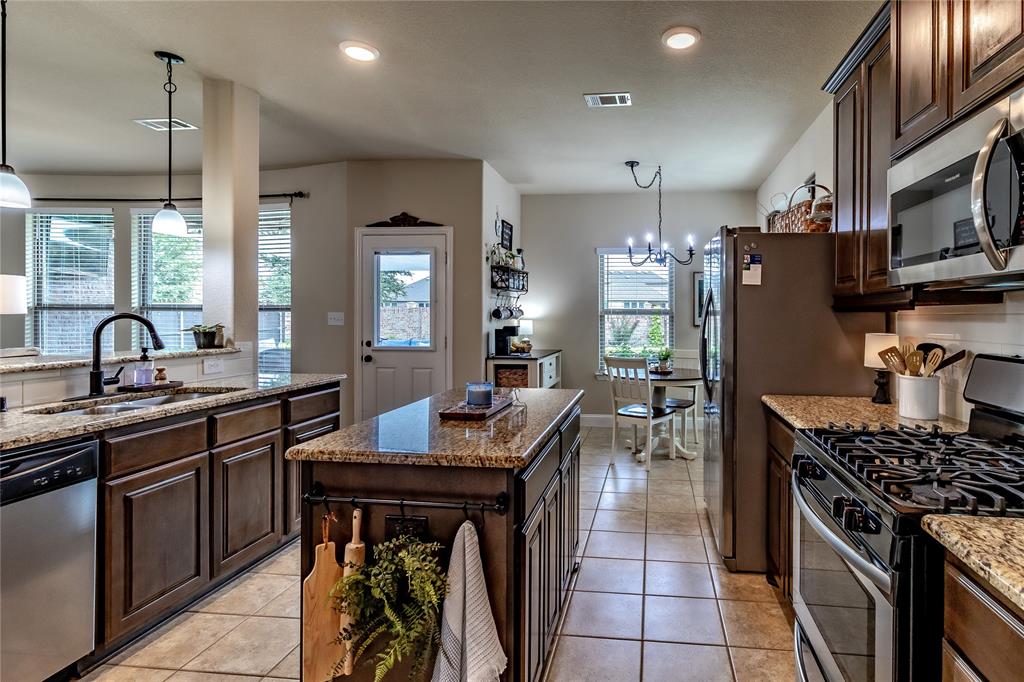 ACCEPTING BACK-UP OFFERS. Discover timeless charm in this stunning home showcasing eyebrow arch room transitions that add an architectural flair to its classical elegance. Inside, you’ll find spacious living areas complemented by updated wood floors, a mix of bronze and brushed aluminum fixtures, carpet in bedrooms for comfort, and a chef-ready kitchen with stainless steel appliances. Step outside to enjoy landscaped front and back spaces, including a beautifully manicured backyard with covered deck—perfect for entertaining. The brick and stone fence provides both style and privacy. A 2-car garage offers convenience, while the location keeps you close to new shopping, schools, and restaurants. This home blends elegance, functionality, and a touch of sophistication—your ideal retreat in a thriving community!