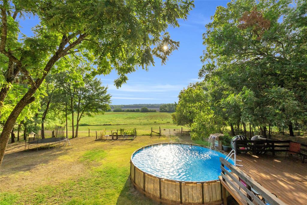 Seeking your own private retreat? This stunning home, set on a tranquil 1.7-acre lot, offers ultimate privacy and breathtaking views of lush, open pastures with no neighbors in sight. Inside, you'll find a unique, spacious open floor plan that's ideal for both relaxed living and entertaining. The expansive walkout basement, provides endless possibilities, while the upstairs open family room offers flexibility—use it as a game room, extra bedroom, or more. The living space effortlessly flows to the outdoors, where you can unwind by the above-ground pool or gather around the cozy outdoor fireplace, all framed by serene, rolling fields. Additional features include a detached shop, perfect for hobbies or extra storage, plus a freshly painted exterior and brand-new granite countertops. With a versatile layout and peaceful surroundings, this home perfectly balances comfort and convenience, with easy access to Hwy 121. Experience the ultimate in relaxation and privacy in this one-of-a-kind property! This unique property is move in ready, including the furniture. It can stay with the right offer. The walkout basement and the loft area are not included in the square footage. Please review all showing instructions.