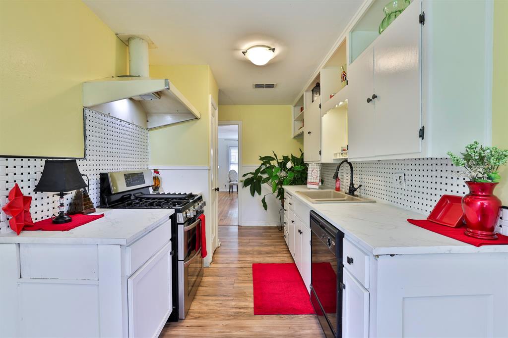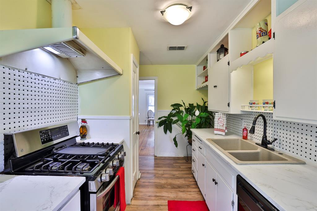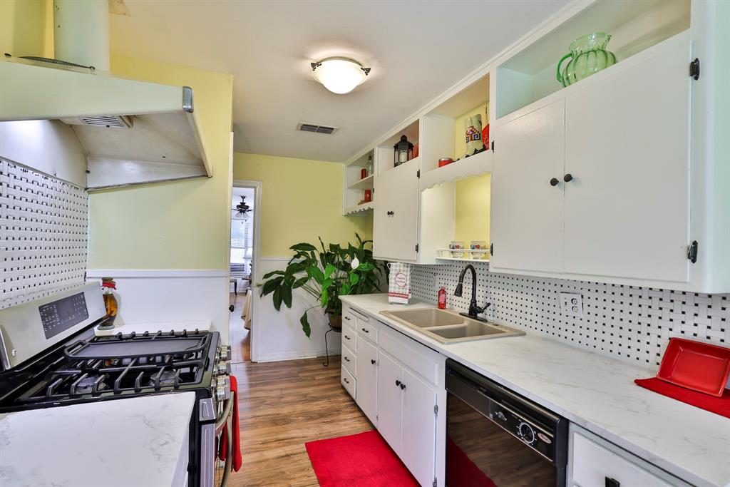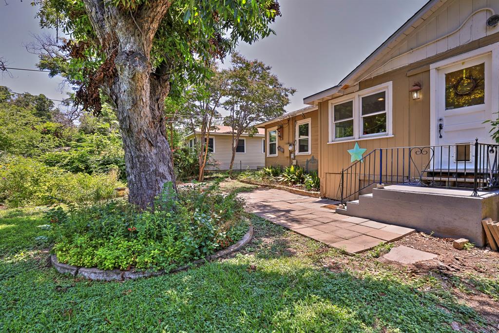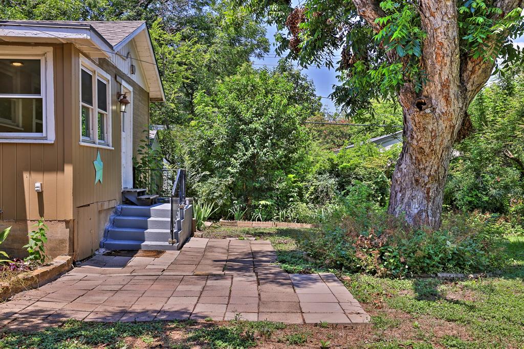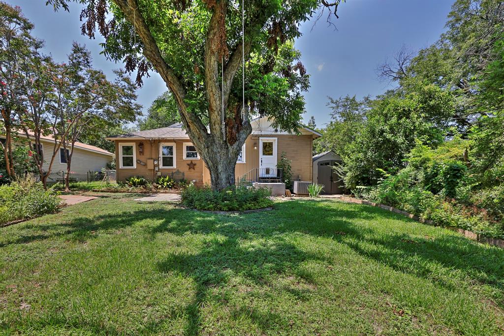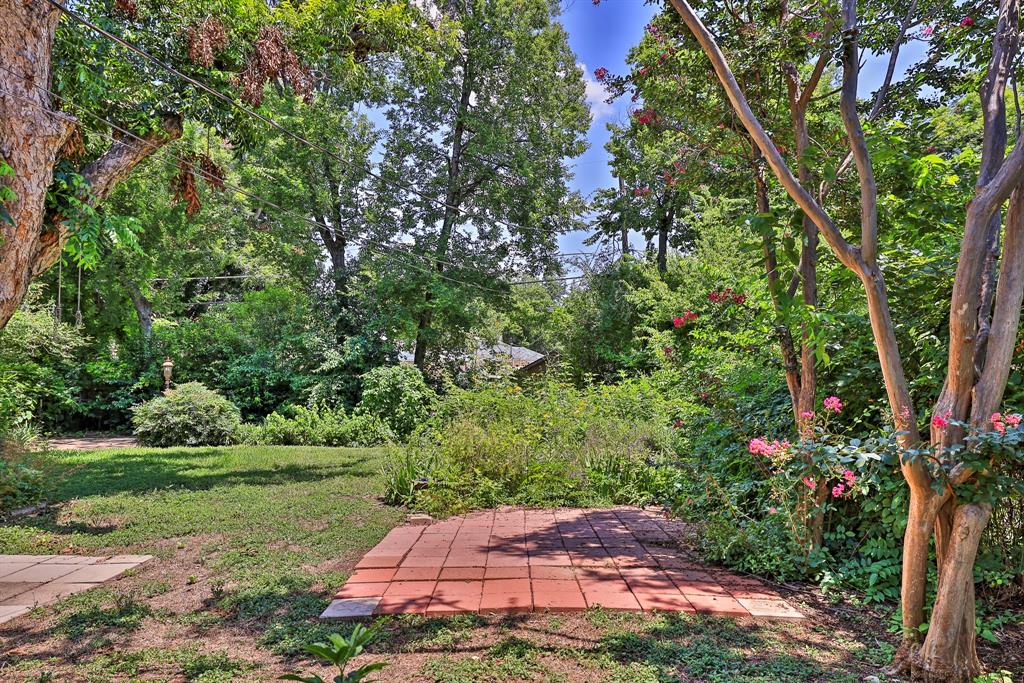 PICTURESQUE AND PRIVATE BACKYARD PERFECT FOR A FIRST TIME HOME, INVESTOR, OR DOWNSIZING. 3 BEDROOM, 1 BATH HOME WITH 5 MONTH OLD ROOF. ALL NEWER WINDOWS (SOME 22), HARDWOOD OR HARD SURFACES FLOORS, CEILING FANS, GAS DOUBLE OVEN STOVE, FRONT PORCH WITH REPLACED DECORATOR DOOR INCLUDES ELECTRONIC LOCK. BATH HAS WALK-IN SHOWER AND VANITY PLUS A LINEN CLOSET. HALLWAY IS LOCATION OF FULL SIZE WASHER AND DRYER WHICH WILL REMAIN. ONE CAR ATTACHED GARAGE OFF KITCHEN AREA AND DOOR TO BACK YARD. SEVERAL PADS FOR PATIO IN BACKYARD PLUS SMALL STORAGE BUILDING. HARDWOODS NEED REFINISHING- NO CARPETING IN HOME.MUST SEE TO APPRECIATE.