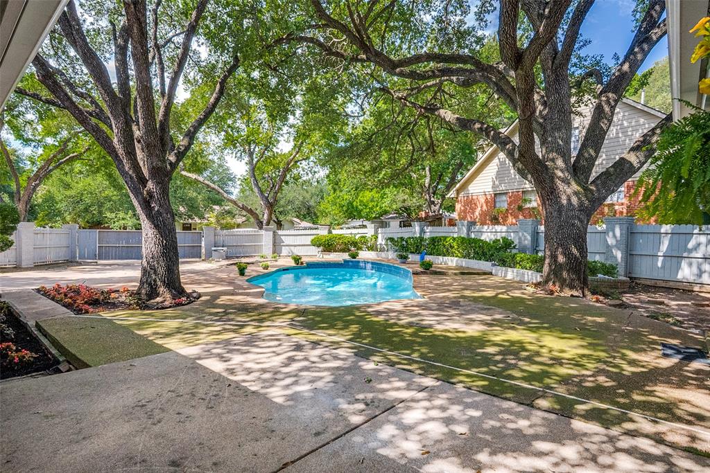 Welcome to 3816 Trails Edge Road, an elegant single-story ranch-style residence situated on a spacious corner lot in Overton Park, one of Fort Worth’s most desirable neighborhoods. Thoughtfully designed with comfort and functionality in mind, this 3-bedroom, 3.5-bathroom home offers a seamless blend of classic charm and modern updates, creating the perfect setting for both everyday living and entertaining. Step inside to find an inviting layout highlighted by hardwood floors and an open-concept kitchen and family room. The kitchen is a true centerpiece, boasting expansive counters, abundant cabinetry, and a layout that flows effortlessly into the family room, making it ideal for gatherings of all sizes. For more formal occasions, the home also features a sophisticated living room and dining room, perfect for hosting special celebrations and holidays. The private owner’s retreat is a true sanctuary, complete with a generous sitting area, an oversized walk-in closet, and direct access to the backyard and pool. The spa-like primary bathroom offers a peaceful escape with dual vanities, a soaking tub, and a separate shower. The additional bedrooms are spacious, offering comfort and privacy for family and guests alike, while the dedicated powder bath adds convenience for visitors. Outdoors, a sparkling pool anchors the backyard oasis, providing the perfect place to cool off on warm Texas days or entertain under the stars. The large corner lot offers extra space, privacy, and curb appeal, enhancing the property’s sense of retreat. Located in the heart of Fort Worth and within walking distance of Tanglewood Park, this home offers close proximity to premier schools, shopping, dining, and the vibrant cultural district, all while being tucked away in a quiet, established community. With its thoughtful updates, spacious layout, and unbeatable setting, 3816 Trails Edge Road is a rare opportunity to enjoy timeless style and modern living in one of the city’s most coveted areas.