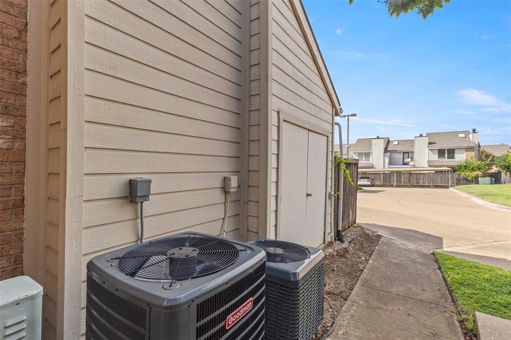OPEN HOUSE ON SAT. 09-13 FROM 2 TO 4 PM. Charming two-story condo in Brookhaven Village featuring 2 bedrooms, 2.5 bathrooms, and a cozy fireplace. Conveniently located for an easy commute throughout the Metroplex, with quick access to shopping, dining, and public transportation.The community offers a clubhouse and pool, perfect for enjoying warm summer days. The home boasts wood laminate flooring throughout the first floor, new bathroom tile, and a freshly painted ceiling (2025). Two assigned parking spaces are located at the rear of the condo, with additional guest parking available. The backyard patio includes a storage closet for added convenience. Recent updates include two new AC units. HOA dues cover water, sewer, and yard maintenance. Appliances included: refrigerator, washer and dryer, and a mini fridge.
