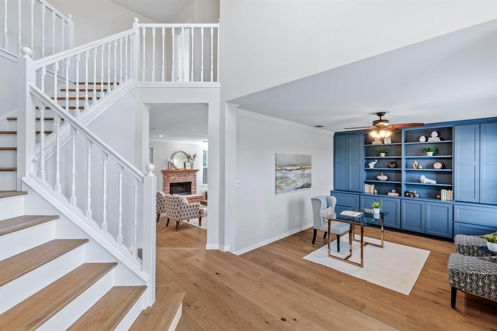 Welcome to this fully updated and beautifully remodeled home, perfectly situated on a rare oversized corner lot in one of Plano’s most beloved neighborhoods. Every detail has been thoughtfully reimagined to blend timeless style with modern comfort. Inside, you’ll be greeted by the warmth of wide-plank oak hardwood floors that flow seamlessly throughout, setting the stage for an inviting and elegant atmosphere. The heart of the home is the stunning kitchen, where marble countertops and designer lighting open to the light-filled living room that is perfect for both relaxing and entertaining. With four spacious bedrooms plus a large study that can easily serve as a home office, playroom, or flex space, this home offers plenty of room to fit your lifestyle needs. The generous primary suite provides comfort and retreat, while the versatile floor plan ensures functionality for both everyday living and entertaining. Fresh new paint, updated windows, and a completely new HVAC system ensure that this home is as move-in ready as it is stylish. The private backyard with a covered patio provides the ideal retreat for morning coffee, evening gatherings, or weekend relaxation. Best of all, this property is located right across the street from Hoblitzelle Park, where miles of scenic trails, open green spaces, and tranquil views invite you to enjoy nature at your doorstep. With every feature thoughtfully upgraded and a location that simply cannot be matched, this home is a rare find, a place where elegance meets everyday living.