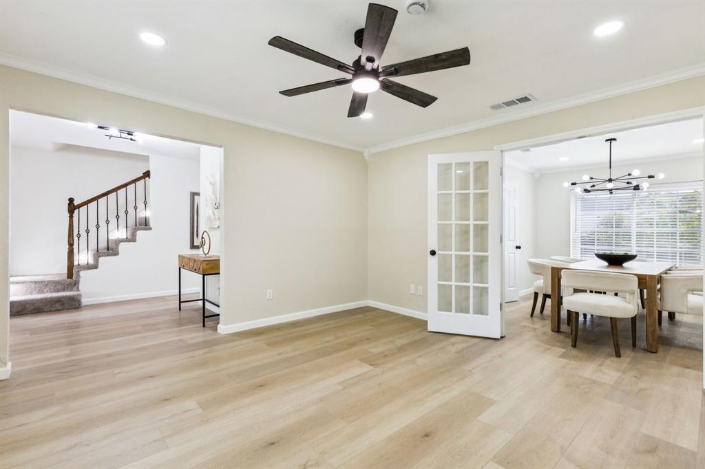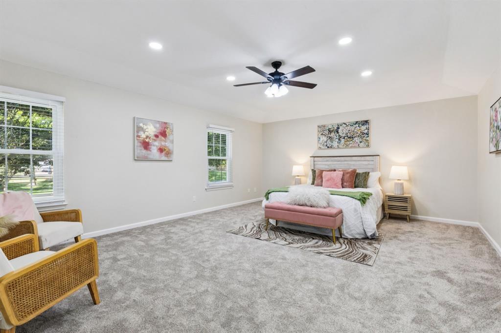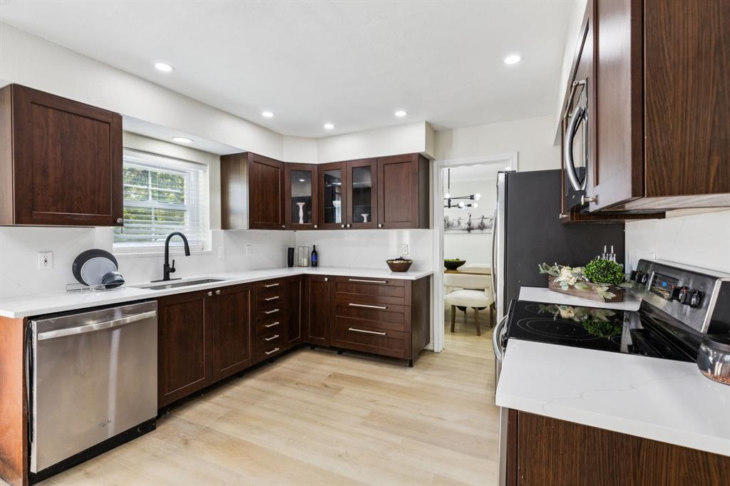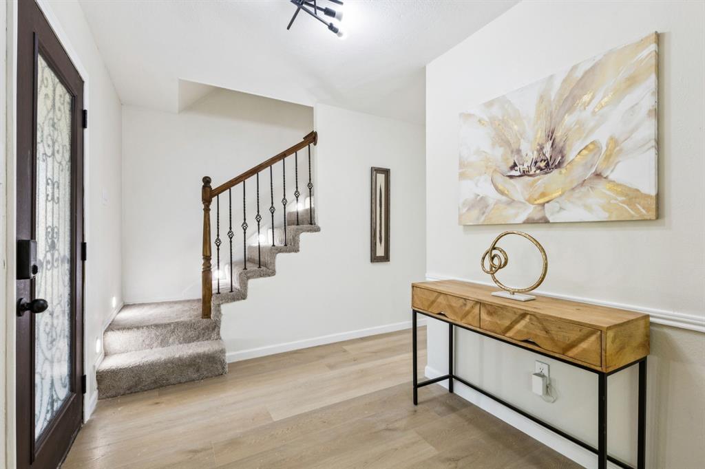 Inside, every detail has been updated. From fresh paint and new flooring to stylish countertops, custom cabinetry, appliances, recessed lighting, new carpet, this home feels brand new. Even the staircase has been reimagined with a new sleek look and accent lighting on every step, adding to the polished, move-in ready appeal.