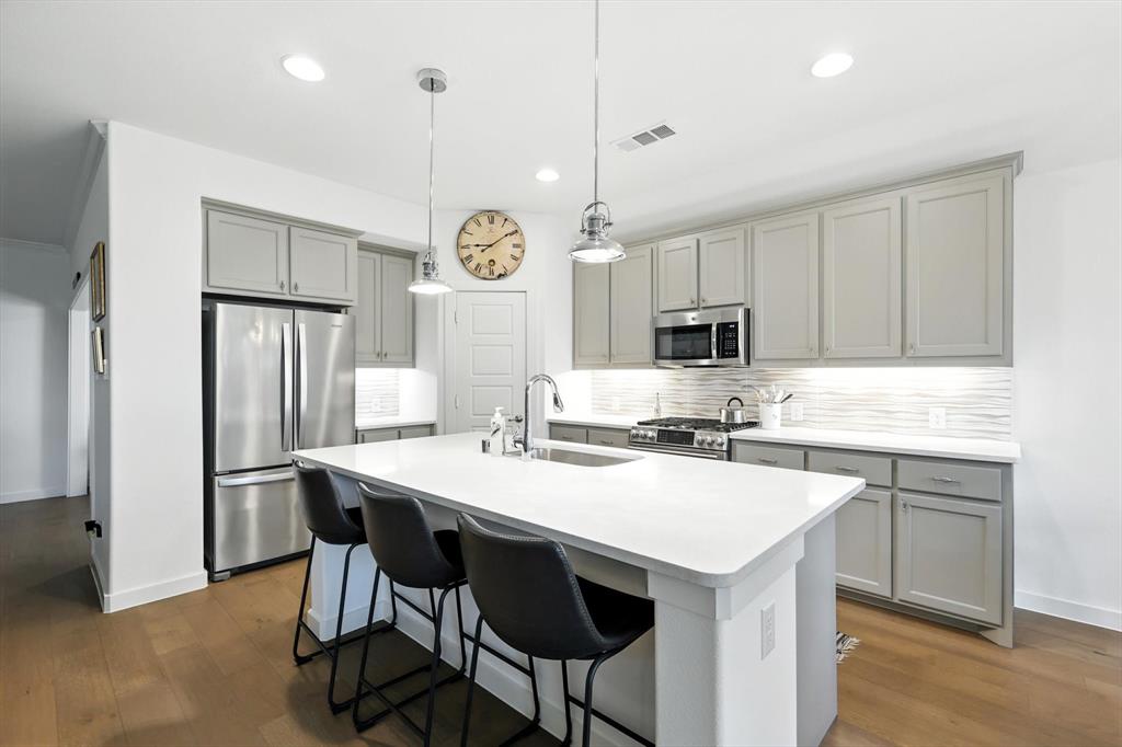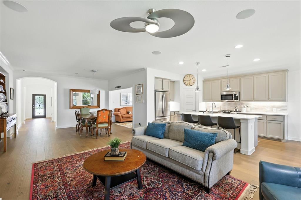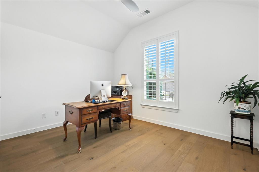Floor plan and location are unbeatable with this property! Welcome home to this beautifully maintained Highland Home featuring 4 bedrooms and 3 full bathrooms. This fantastic floor plan includes a 4th bedroom currently used as an office and a separate flex room suitable for a playroom, game room, media room, or homeschool space. There are numerous custom upgrades, including updated flooring, counter tops, fans and lighting. The interior highlights include deep closets, ample storage throughout, and a spacious laundry room. The backyard provides excellent privacy - one of the best in Harvest Meadows! The garage includes an elevator lift for convenient attic access. Don't miss out on this one - schedule a showing today!