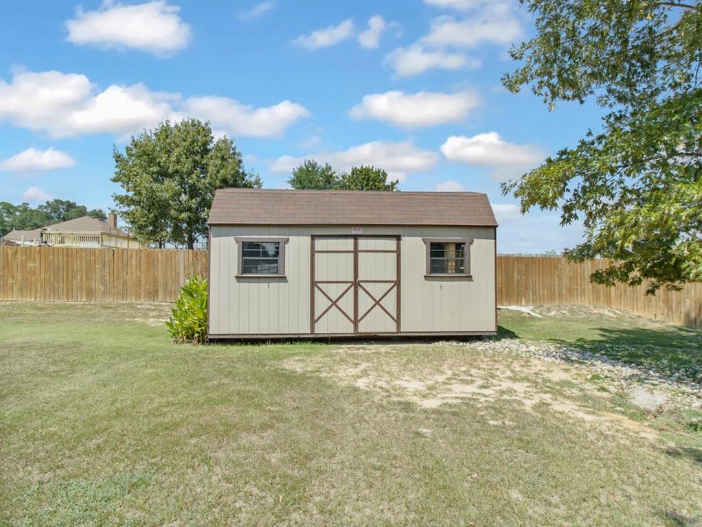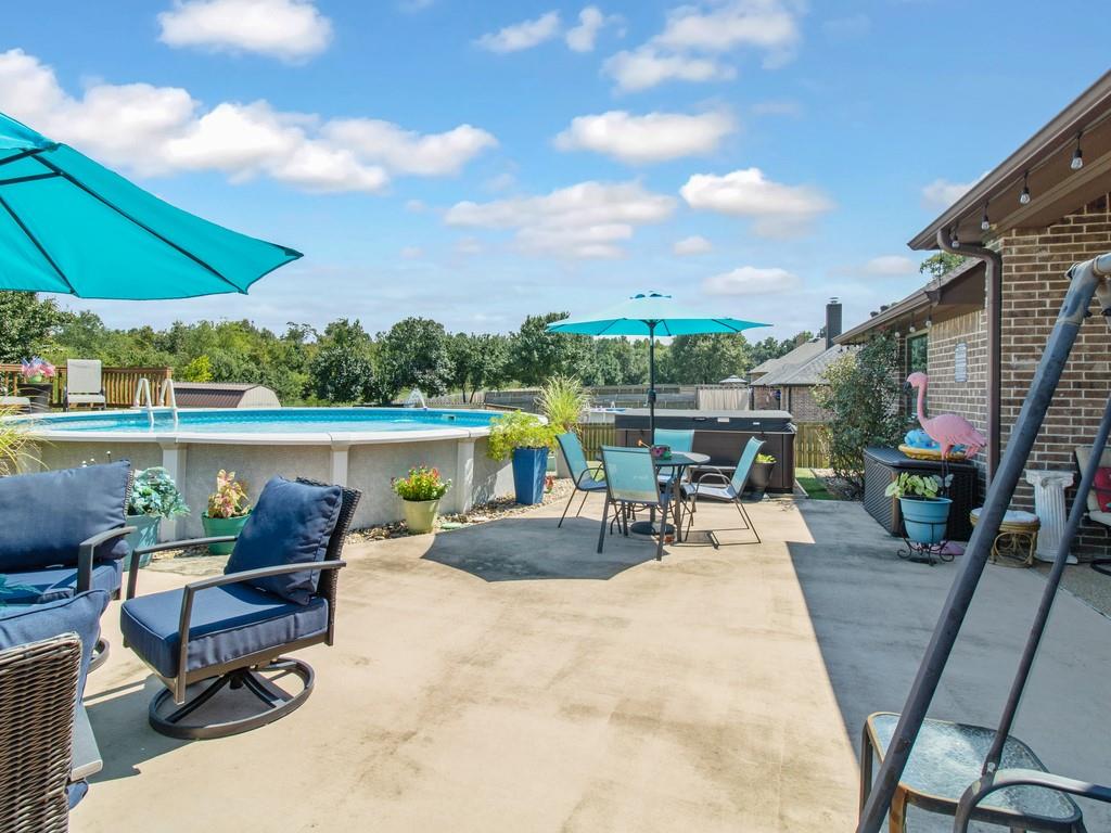 Step outside and enjoy a backyard designed for relaxation and fun! A half in-ground pool with a surrounding deck creates the perfect spot for summer gatherings, BBQs, or evenings under the stars. A covered patio adds extra space to lounge, and the portable building offers endless potential—whether you need a workshop, storage, or hobby room.