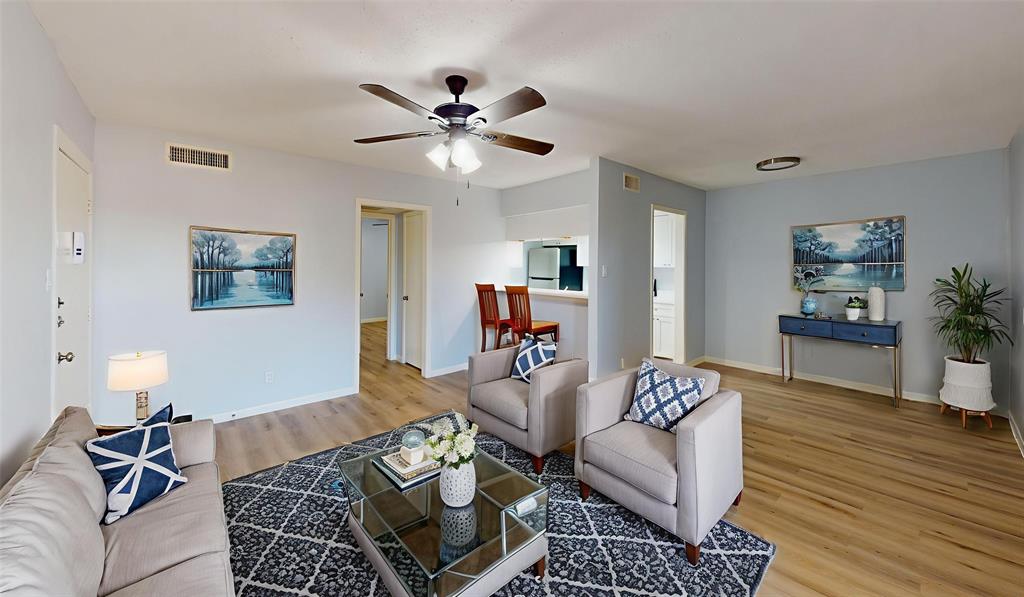 Welcome to your new home in the desirable Las Colonitas Condominiums neighborhood. This charming one-bedroom, one-bathroom condo offers a blend of comfort and convenience, ideal for modern living. The spacious living area is accentuated by a ceiling fan and sleek vinyl flooring, providing a warm and inviting ambiance. The kitchen boasts contemporary cabinetry, stainless steel appliances, and a pass-through bar, perfect for entertaining guests or enjoying a quiet meal. The dining area, further enhances the sophisticated atmosphere of the home. Retreat to the generously sized bedroom, which features natural light and a ceiling fan for year-round comfort. The bathroom is elegantly appointed with a marble-tiled shower and modern fixtures. Step outside to enjoy a private patio, an ideal spot for relaxing or hosting gatherings. Residents of this community benefit from access to a refreshing pool, perfect for enjoying sunny days. Additionally, Las Colonitas is renowned for its excellent local schools, making it a perfect choice for both singles and small families. Explore the peaceful, tree-lined paths of this well-maintained complex, and discover the perfect balance of tranquility and urban convenience in this exceptional property.