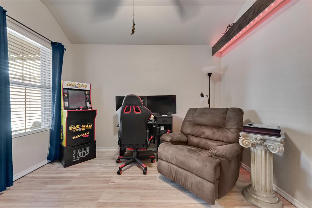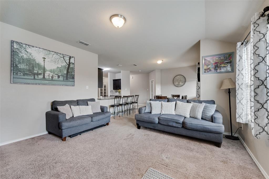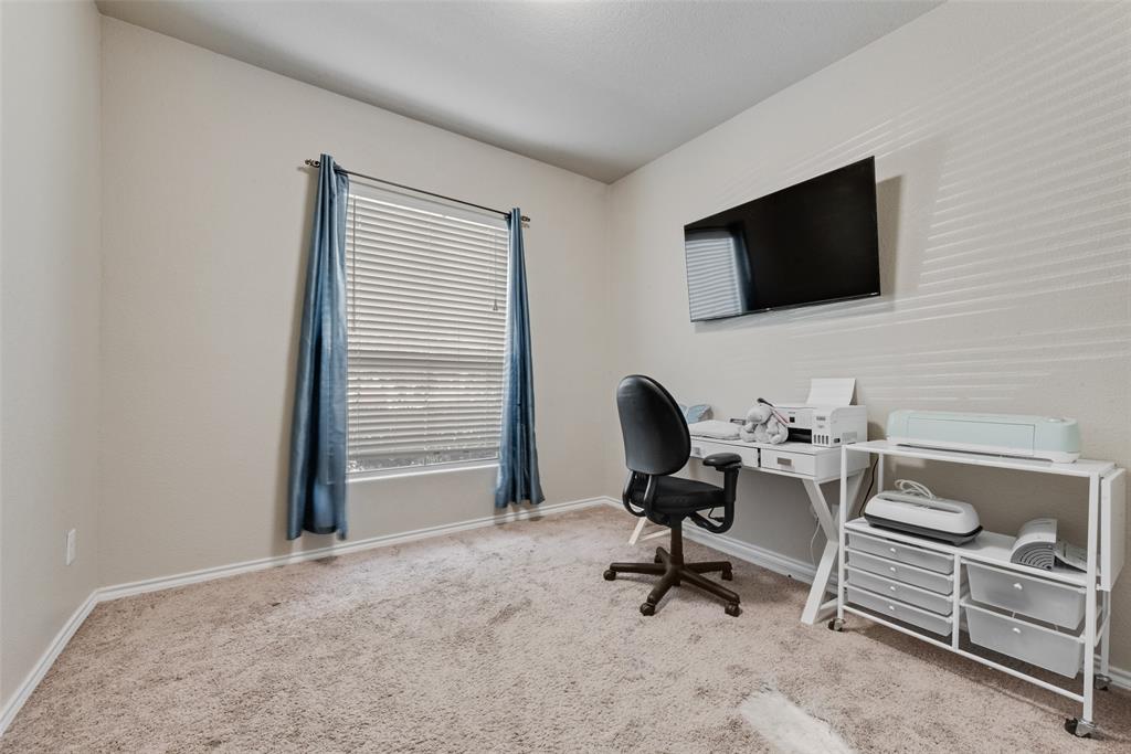 Well-designed floor plan with separate primary suite, open kitchen, dining, and living spaces, plus an additional flex room perfect for an office or man cave. Backyard patio for outdoor living and a garage for storage or parking. Ideally located near Highway 35. Carpet to be replaced before closing or credit provided by seller.