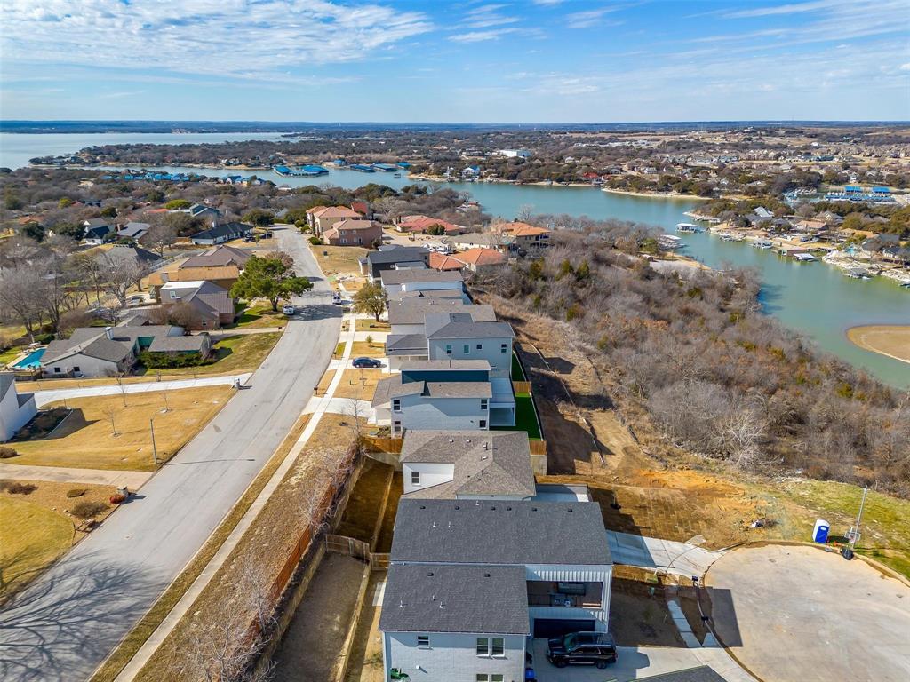 Newly completed with best views in TEXAS!! Private cul-de-sac new construction overlooking Eagle Mountain! Welcome to this gorgeous 4-bedroom, 3-bathroom home perched above a tranquil lake, offering spectacular water views from nearly every room. The spacious, open-concept layout seamlessly connects the living, dining, and kitchen areas, creating the perfect space for both relaxation and entertaining. Enjoy panoramic lake vistas from the large windows or step outside onto the expansive deck to take in the serene surroundings. The well-appointed kitchen features high-end appliances and ample counter space, while the luxurious master suite offers a private retreat with stunning views. With a finished basement, two-car garage, and beautifully landscaped yard, this home is a rare gem that combines comfort, elegance, and natural beauty.