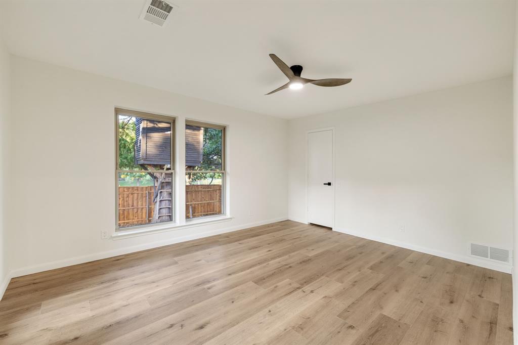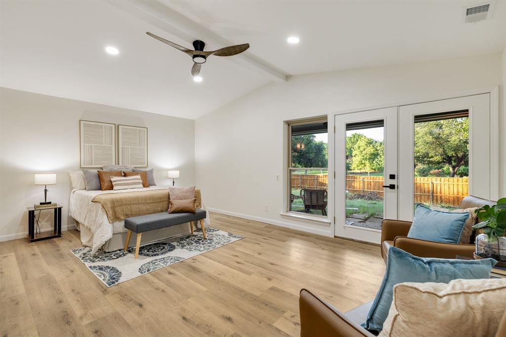 The residence offers four generously-sized bedrooms with walk-in closets for ample storage. Each room is designed with oversized windows, allowing natural light to pour in and incredible outdoor views. The primary bedroom also includes a sitting area and direct access to the large backyard– a perfect spot for relaxation or personal reflection.