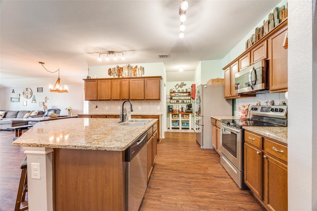 Welcome to this very well maintained home in the heart of Princeton. Kitchen, dining, and living rooms are wide open concept front to back, creating an expansive living area. Builder grade tile in this area has been upgraded to LVP flooring. Kitchen features granite counters and large kitchen island. Lots of cabinet space here. Primary bedroom is spacious and inviting with a large walk in closet. Any of the secondary bedrooms could easily be used as office, flex room, etc. Exterior features new landscaping in the front and a brand new roof. You'll love this premium lot that backs up to privately owned treed land. Enjoy the walking trails that circle around the entire neighborhood. Walking distance to both the park and the amazing community pool. Only blocks from elementary and middle schools. This home is absolutely turn key and ready for new owners. Schedule your private appointment today!