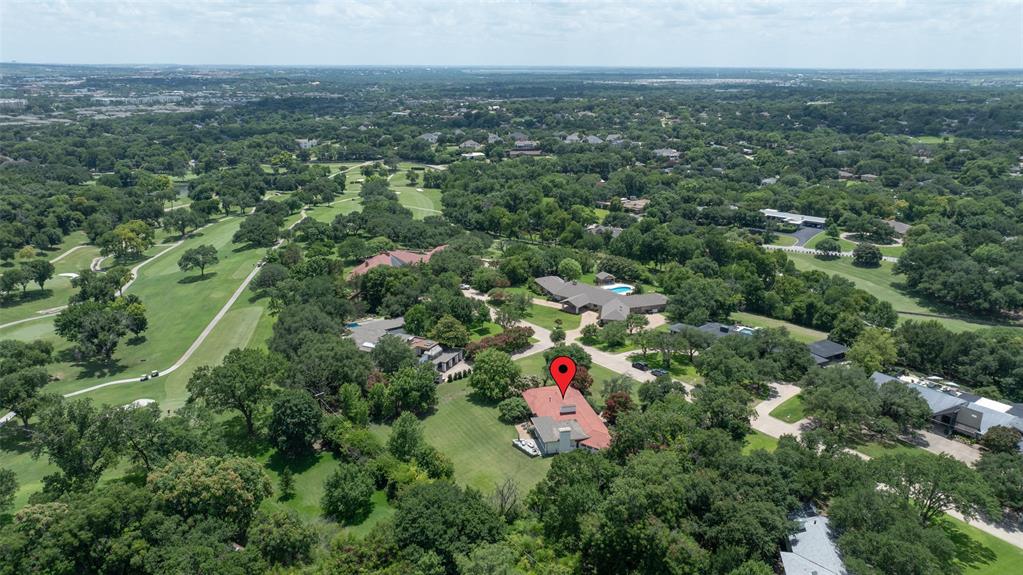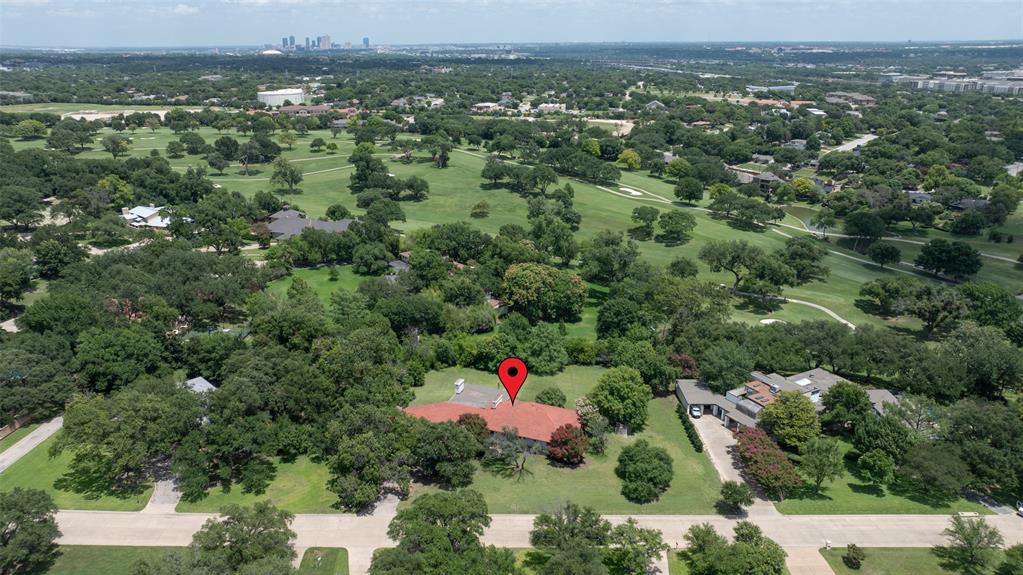 Tucked away on a premier 1.2-acre cul-de-sac estate lot by Ridglea Country Club, this one-story home offers the feel of a private oasis with beautiful mature trees and lush surroundings. This is a rare opportunity to either personalize the existing home or build your dream home on one of Fort Worth’s most desirable lots. The home features a three-year-old tile roof and a welcoming foyer with tray ceilings that leads to the spacious living room, complete with a fireplace and built-ins. The living room opens to the dining area with stunning views of the expansive yard. The butler’s pantry connects the dining room to the kitchen and breakfast room, where you’ll find stainless steel appliances and quartz countertops. A massive den with a fireplace and floor-to-ceiling windows offers panoramic views of the backyard and access to the deck—perfect for relaxing or entertaining. The primary suite includes a sitting area that could also serve as a home office. Ample storage is found throughout the home. With its prime location in the heart of Fort Worth, you’ll enjoy convenient access to dining, shopping, and entertainment. Don’t miss this exceptional opportunity to create the home you’ve always envisioned on an irreplaceable lot near Ridglea Country Club.
