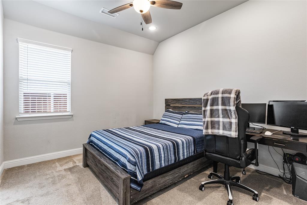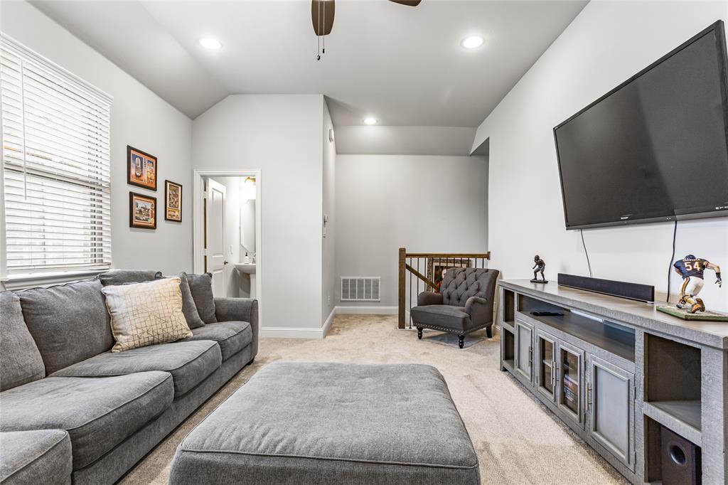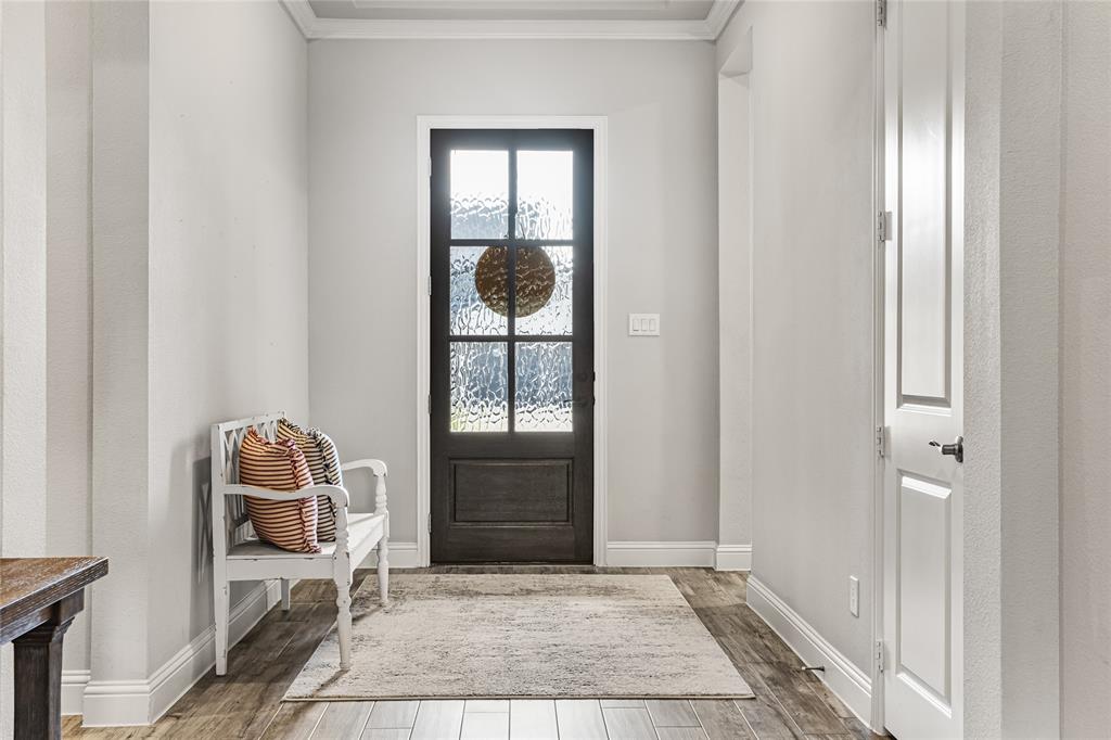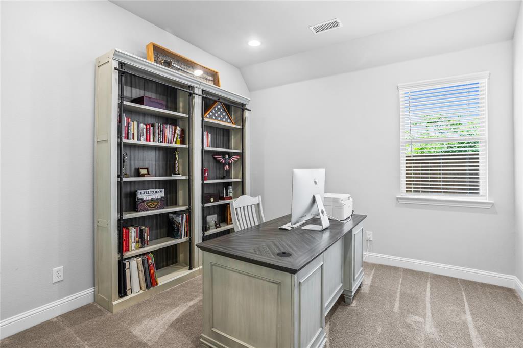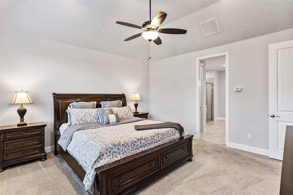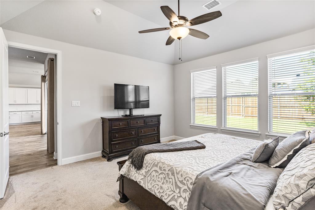 Welcome to this immaculate home nestled in the heart of the master-planned community, Cambridge Crossing in Celina, TX. Situated on a quiet cul-de-sac, this home features a striking brick and stone exterior with professional landscaping and a covered patio, perfect for relaxing or entertaining. Step inside to find a light-filled, open-concept layout with wood look tile flooring, neutral tones, and thoughtful designer touches throughout. The chef’s kitchen is a true centerpiece, featuring an oversized island with granite counters, stylish pendant lighting, an abundance of white custom cabinetry maximizing your kitchen storage space, a pot filler, and a gas cooktop. It opens seamlessly into the dining area and spacious living room, which is anchored by a beautiful stone fireplace and custom built-ins.The primary suite is a peaceful retreat with vaulted ceilings, plush carpet, and a luxurious en suite bathroom offering dual vanities, a large shower, and walk in closet. Additional highlights include a whole house water filtration system, dedicated mudroom, all bedrooms downstairs, and an upstairs with a flexible layout that's ideal for game or media room, a private home office, a playroom or guest space with a private half bath. At the end of the cut de sac enjoy beautiful pasture land and cattle that come visit some evenings in true Texas form. Located in Cambridge Crossing, residents enjoy resort-style amenities including an elegant clubhouse, multiple pools, a fitness center, tennis and pickleball courts, scenic walking trails, playgrounds, and stocked fishing ponds. All within the highly acclaimed Celina ISD and with convenient access to the Dallas North Tollway, nearby shopping, and charming Downtown Celina. This home perfectly blends luxury, comfort, and community living! Schedule your private showing today!