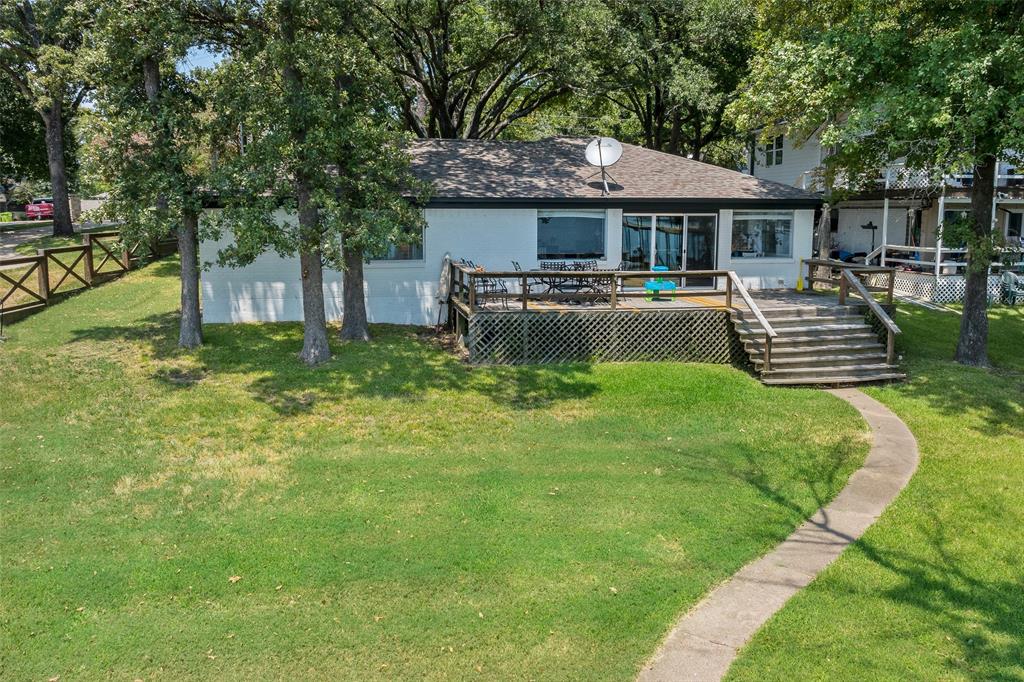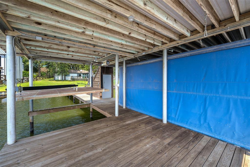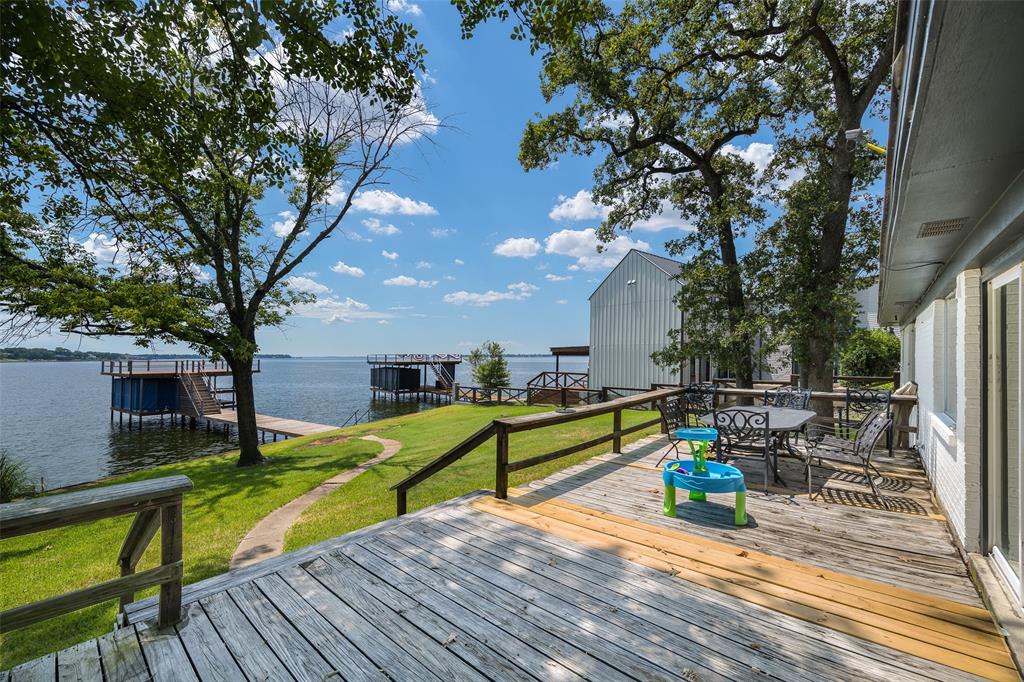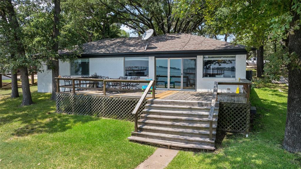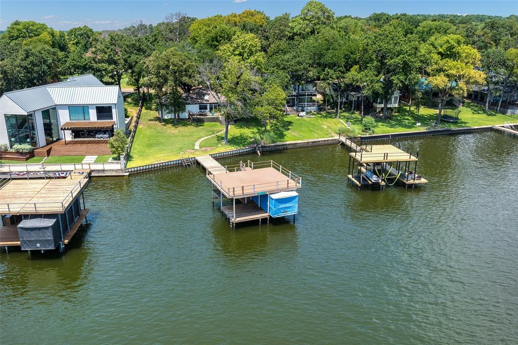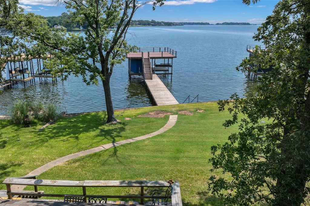 Premium lakefront lot at Cedar Creek Lake, featuring stunning panoramic views! Situated in a gated community, the property offers an open concept floorplan, modern finishes and wood-like tile floors throughout! The spacious kitchen features gorgeous quartz countertops, marble backsplash, and stainless steel appliances! The oversized family room offers plenty of natural light and sliding glass doors leading to an expansive deck, perfect for entertaining! Retreat to the primary suite which features lake views and a private bath with custom sliding barn door! Two ample sized secondary bathrooms and an additional bath with clean-line finishes! The private two-story boat dock sets this property apart, complete with a boat slip, two jet-ski slips, and a sprawling upper deck to enjoy the breathtaking views! Don't miss this rare lakefront opportunity!