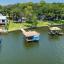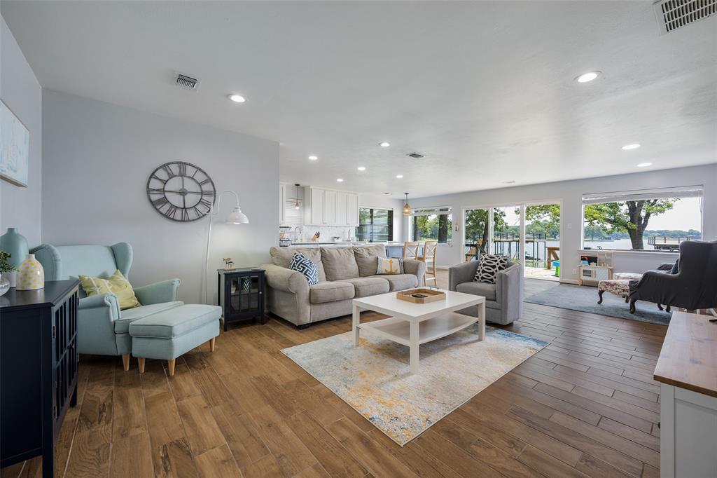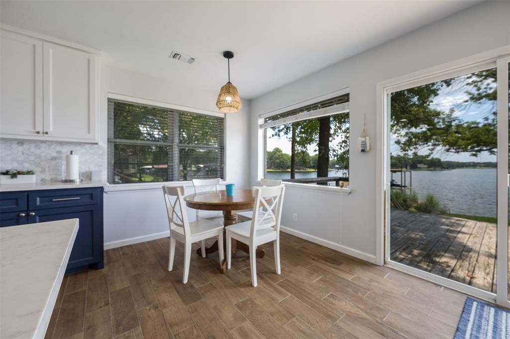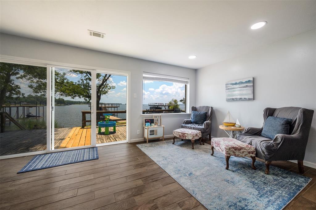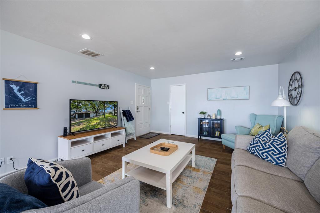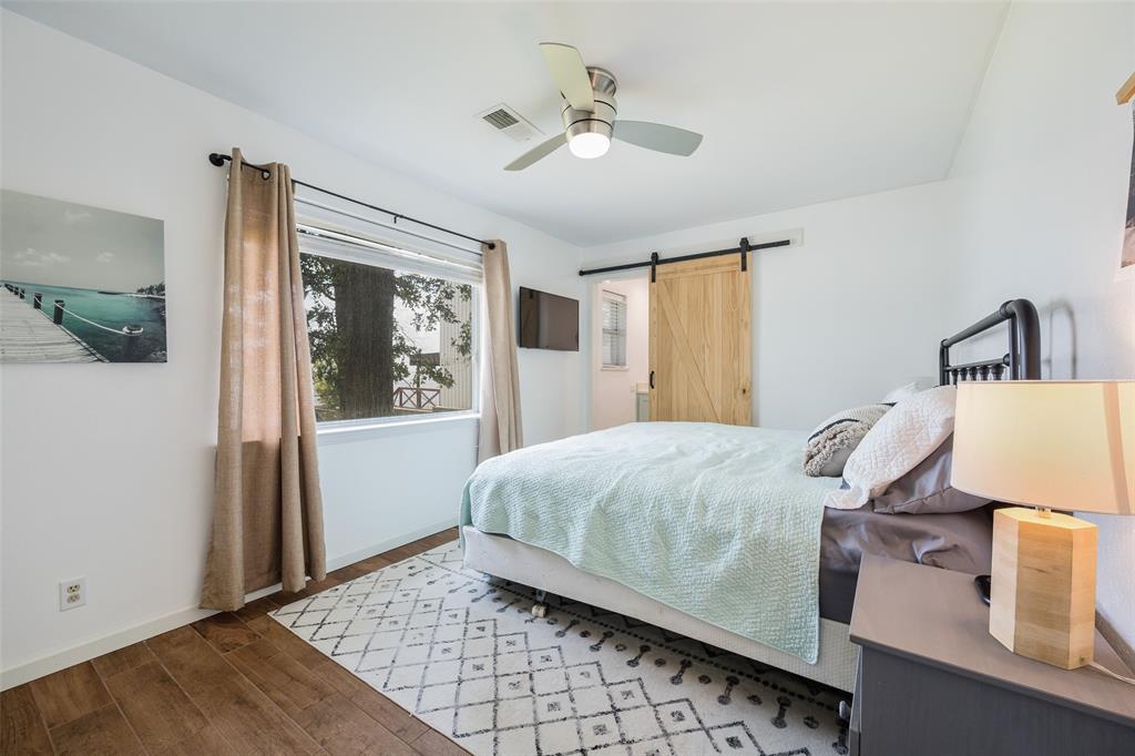 Premium lakefront lot at Cedar Creek Lake, featuring stunning panoramic views! Situated in a gated community, the property offers an open concept floorplan, modern finishes and wood-like tile floors throughout! The spacious kitchen features gorgeous quartz countertops, marble backsplash, and stainless steel appliances! The oversized family room offers plenty of natural light and sliding glass doors leading to an expansive deck, perfect for entertaining! Retreat to the primary suite which features lake views and a private bath with custom sliding barn door! Two ample sized secondary bathrooms and an additional bath with clean-line finishes! The private two-story boat dock sets this property apart, complete with a boat slip, two jet-ski slips, and a sprawling upper deck to enjoy the breathtaking views! Don't miss this rare lakefront opportunity!