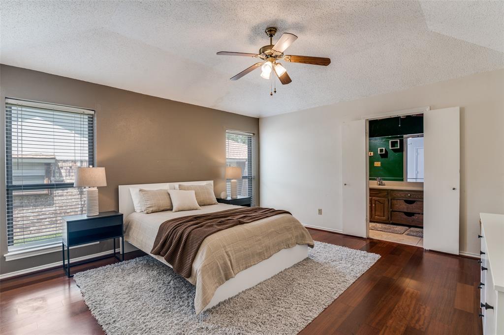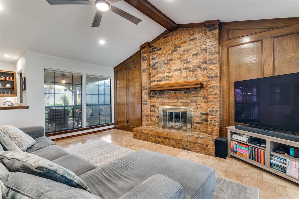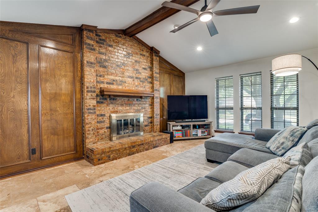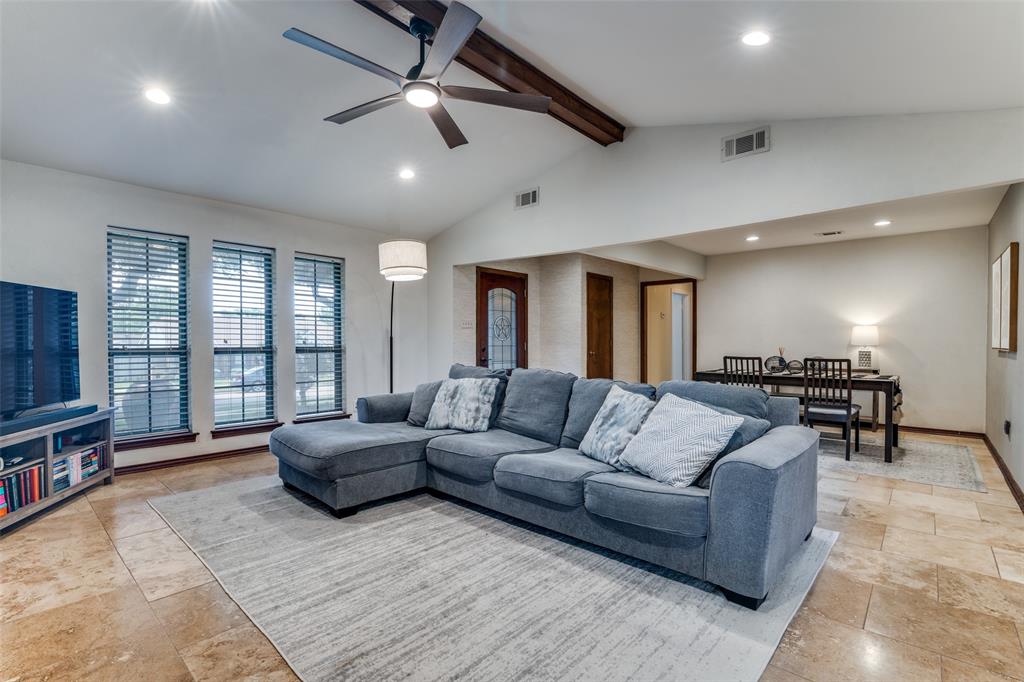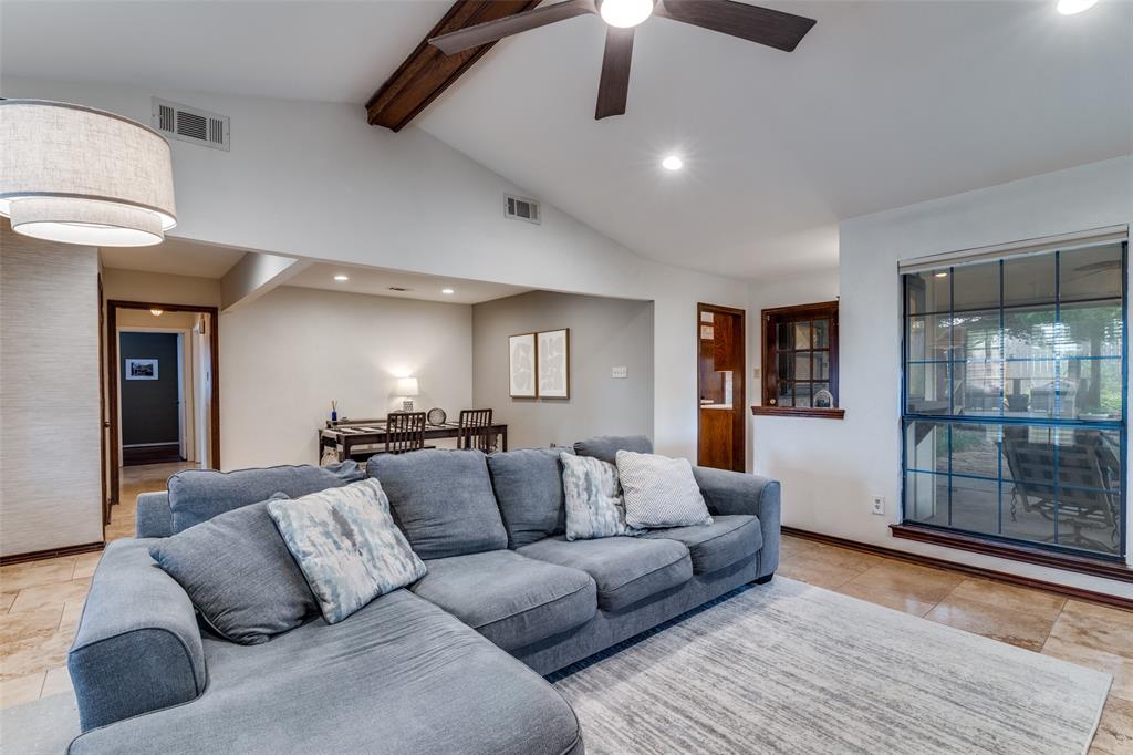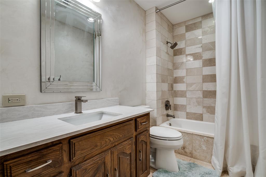 Pull up and immediately and feel the pride of ownership. The charming exterior is framed by stone-edged flower beds, lush plantings, and mature trees. Step inside to enjoy the elegance of travertine tile flooring throughout the living and dining areas where a built-in wet bar creates a seamless space ideal for gatherings. Remodeled kitchen features a farm sink, custom cabinetry, pull-outs and decorative glass front cabinets, an island, quartz countertops with recessed and under-counter lighting and a cozy breakfast nook bathed in natural lighting overlooking private backyard oasis. The outdoor space has a covered patio and cabana ideal for outdoor entertaining. The spacious primary bedroom with wood floors features a remodeled ensuite with custom cabinets, double sinks, walk in shower and two closets! The additional bedrooms can flex as guest rooms, office, or playroom. Laundry room has full-size stackable WD with custom cabinetry and pull-out shelving for so much storage! Refrigerator, washer & dryer can stay! With NO HOA, proximity to a lovely neighborhood park, and quick access to major highways, this Garland residence offers both convenience and character- an ideal blend for buyers seeking comfort and ease. This is a must see! Remodel info attached