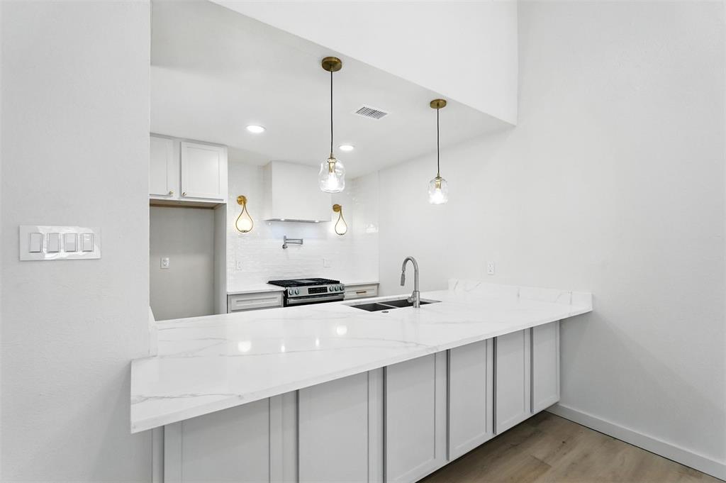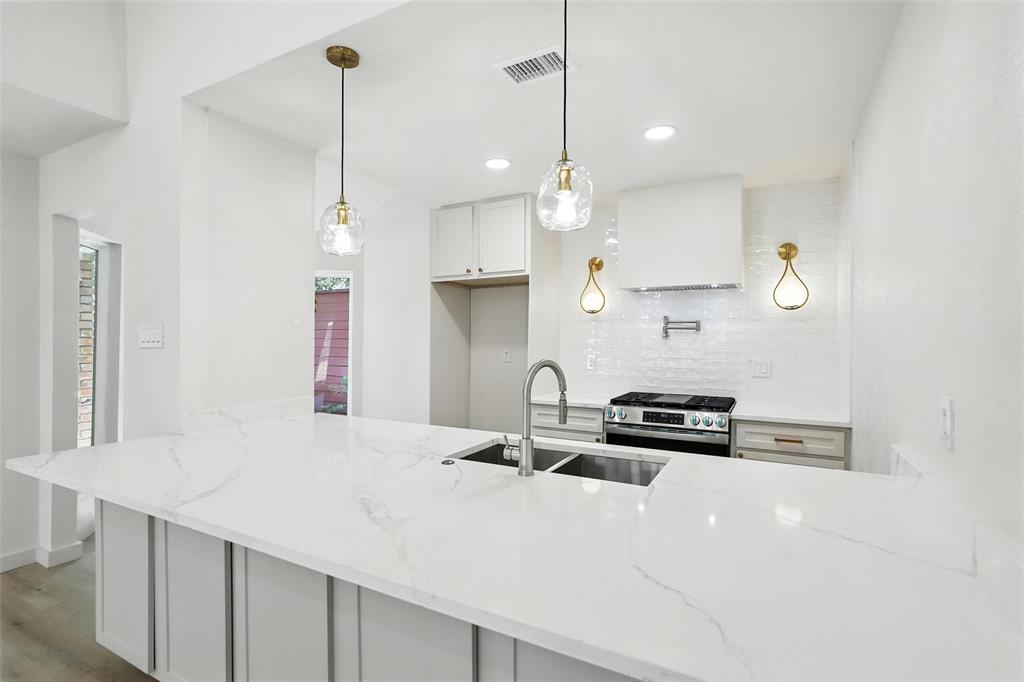 Step inside to soaring ceilings, abundant natural light, and an open-concept floorplan designed for modern living. The brand-new kitchen features quartz countertops, and stainless steal appliances, designer backsplash, custom vent hood, gas range with pot filler, and pendant lighting over a spacious island — a true chef’s dream.