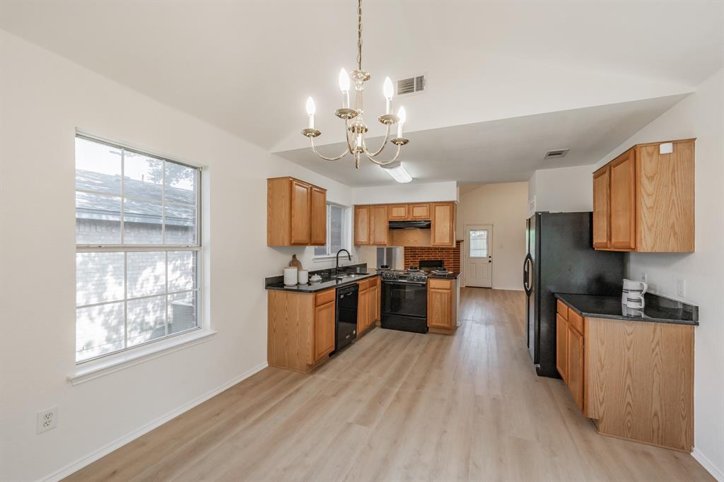 Step inside this beautifully updated Mansfield home featuring brand-new waterproof vinyl plank flooring throughout the main living areas, new carpet in the bedrooms, and fresh interior paint. The modern kitchen boasts classic black granite countertops, an undermount sink, and a large eating island—perfect for meal prep, entertaining, or casual dining.