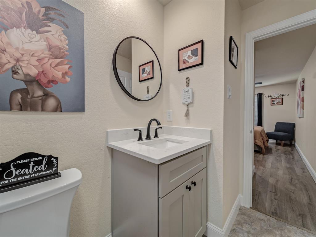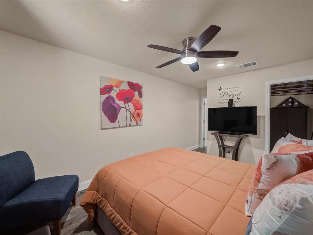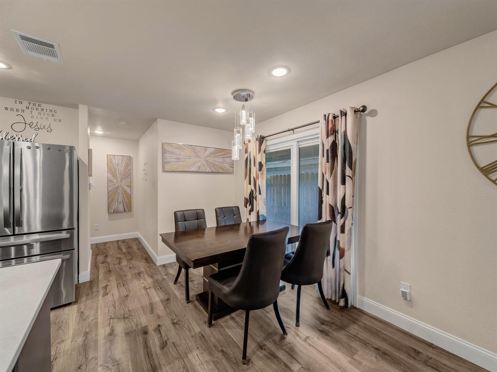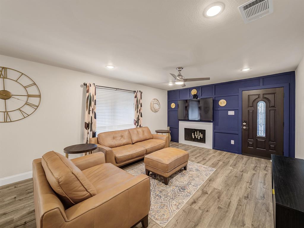 Inside, you’ll find a warm and inviting living space featuring a cozy wood-burning fireplace, perfect for cool nights. The home has been completely updated with brand-new floors, fresh paint, and modern lighting throughout. The kitchen shines with sleek granite countertops and offers both style and functionality.