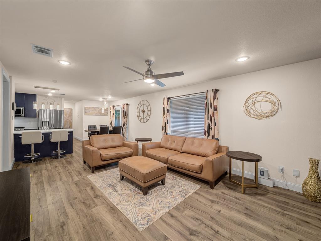 Step inside this beautifully renovated 2-bedroom, 2-bath duplex that perfectly blends charm and modern comfort. From the moment you arrive, the covered front porch invites you to relax and enjoy a quiet evening outdoors.