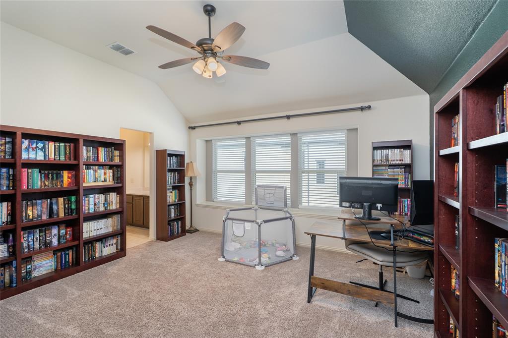 The primary suite is conveniently located on the main level and boasts an ensuite bath with a dual vanity, a garden tub, a separate shower, and a generously sized walk-in closet. All secondary bedrooms are located upstairs, along with a spacious office or study room.