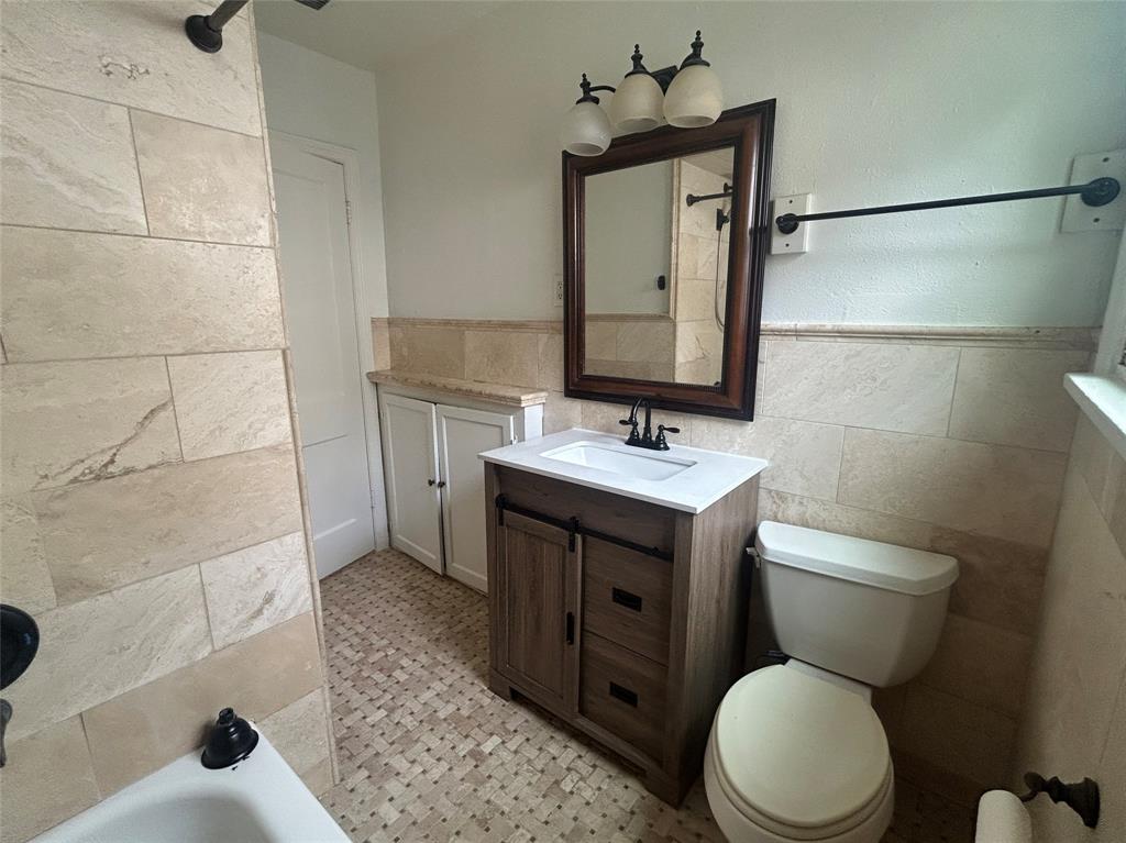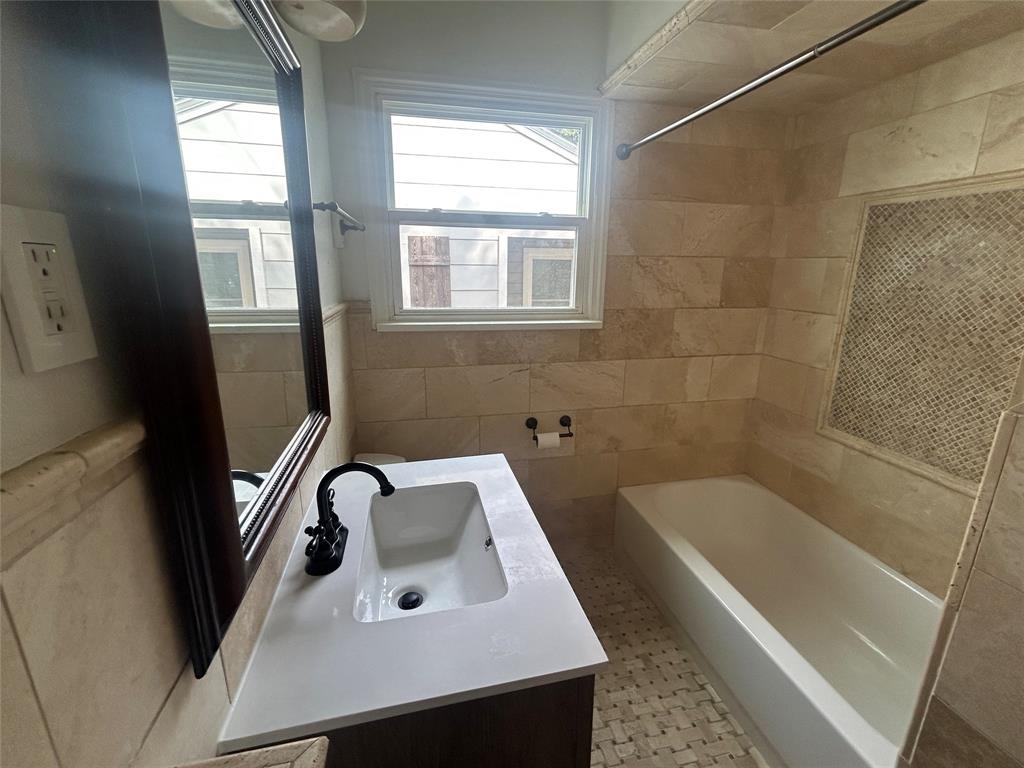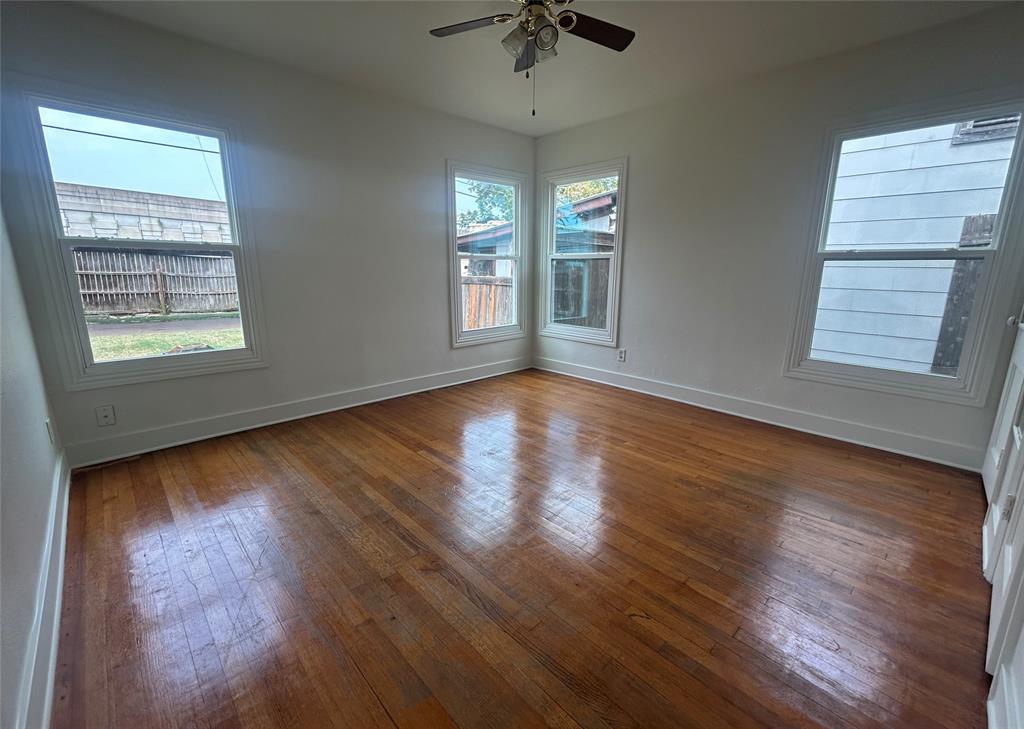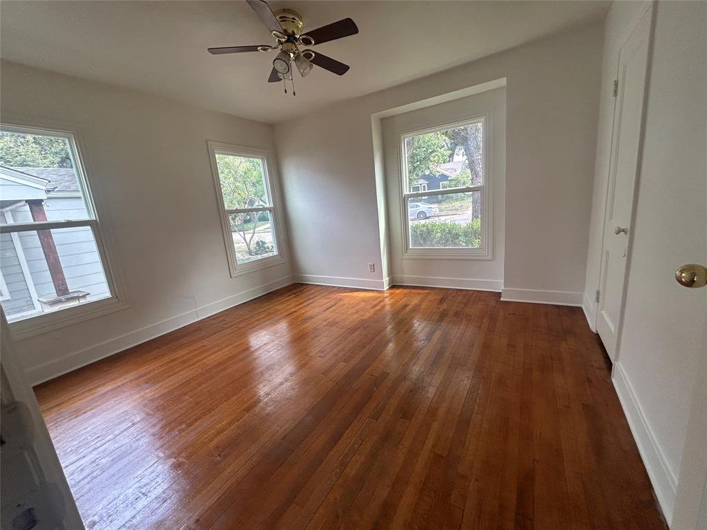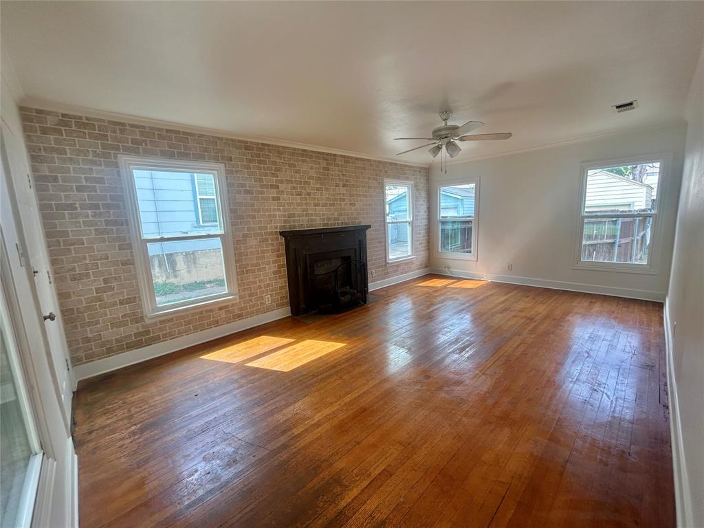 Updated 2 bedroom 1 bath 2-car garage in a great location and close to everything! This home has new exterior siding, new insulation, and is freshly painted inside and out. Hardwood and stone floors throughout with custom tile work in the kitchen, bath and other areas. There is plenty of natural light from the updated windows. The large living room has custom accent wall with a faux fireplace and makes a great space for gathering. A spacious kitchen features a stainless steel gas range and dishwasher, plentiful counter space and leads to the backyard outdoor covered patio. The dining room has custom features with a view of the mature shady pecan tree in the front. Two ample bedrooms and a centrally located bath compliment this well-designed floorplan. The freshly painted two-car detached garage with electricity can be used for parking, storage or even a workshop. This home is a must-see and ready to enjoy along with all of the wonderful things the surrounding area has to offer!