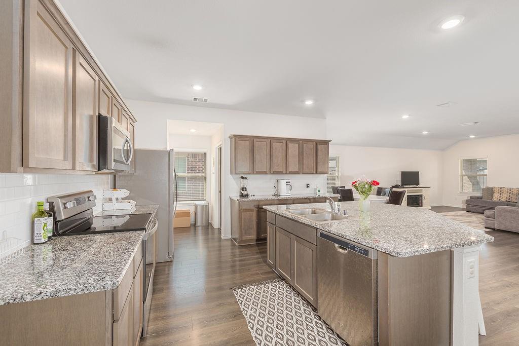 Wonderful open floor plan with four bedrooms, two full baths, A BONUS ROOM and a great covered back porch. You're welcomed by a nice big entry and two of the bedrooms and bathroom. The fourth bedroom is separated from the rest. The large kitchen includes an abundance of cabinets and a very large island. Lots of space for entertaining and bar stools. A separate full size laundry area is off to the side. A bright, open dining and living room with enough space for relaxing. At the rear of the home you'll find the oversized primary bedroom and en suite bathroom with generous walk in closet. The garage bonus room is a great option for another living space, game room or media room. Completely closed in, walls, carpeting. HVAC and lighting! Just missing your fun, personal touches. Exterior garage door is intact. Roof replaced 2023 after bad storm. HVAC fully charged and maintained. Located in Caddo Mills ISD, super close to the elementary school. Community includes pool and playground. All information is deemed correct but should be confirmed by buyer and agent