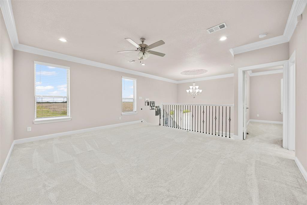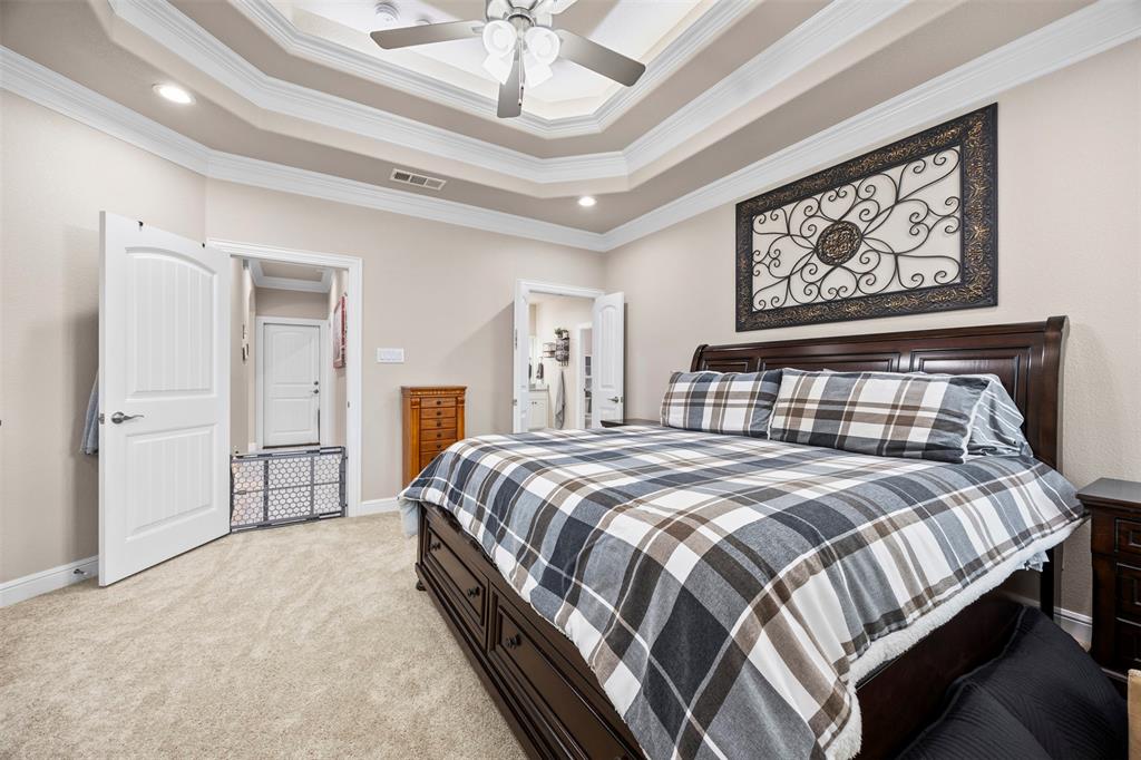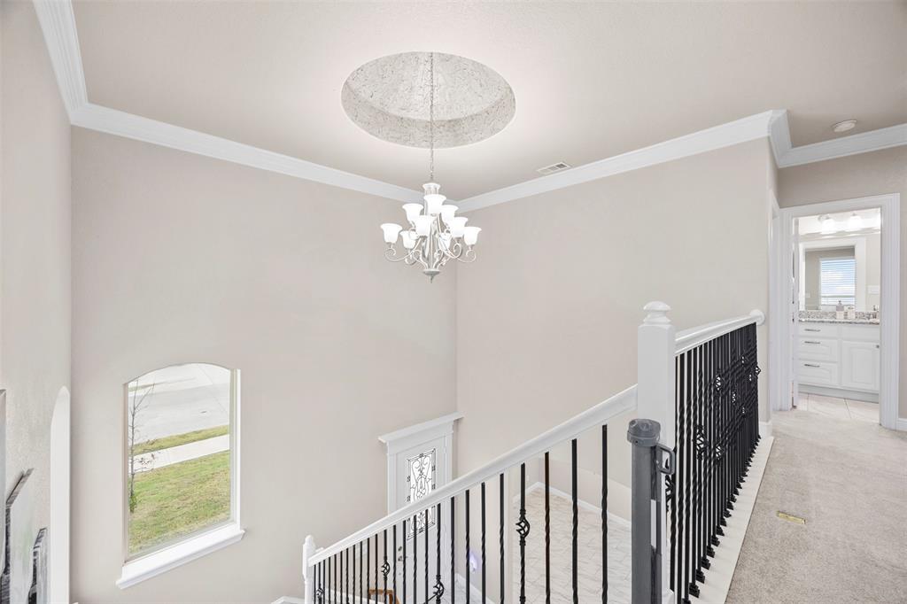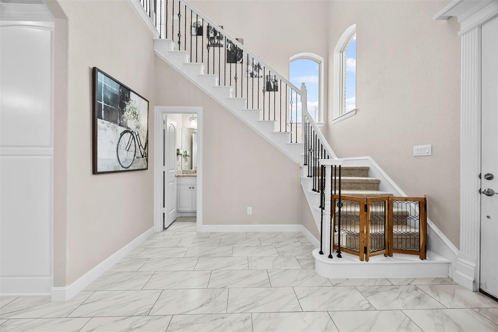 Like new, without the price tag! This well maintained 4-bedroom, 3-bath residence sits proudly on a corner lot in a quiet cul-de-sac, just steps from the elementary school. With no HOA and over $30K in elegant upgrades—including custom shutters, brand new carpet, new outdoor deck, and permanent jellyfish lighting for year round convenience—the home blends modern sophistication with everyday comfort. From the moment you enter, a dramatic 20-foot ceiling greets you in the foyer, setting the tone for the airy, open-concept design. The layout seamlessly connects the formal dining, spacious living area with fireplace, breakfast nook, and deluxe kitchen. The gourmet kitchen is a showpiece, offering custom white cabinetry, granite countertops, under-cabinet lighting, built-in oven and microwave, a walk-in pantry, and a large breakfast bar. The primary suite on the main level is a private retreat with tray ceilings, recessed lighting, and an ensuite spa-inspired bath featuring a jetted tub, frameless glass shower, dual vanities, linen closet, and walk-in closet. Upstairs, you’ll find three additional bedrooms plus a spacious game room—perfect for movie nights, play space, or a second living area. A full bath with a marble tile shower-tub combo and granite countertops serves the upstairs quarters, offering both style and convenience. Step outside to the brand-new wood deck, where you can enjoy evenings under the stars, weekend barbecues, or quiet morning coffee. The fenced backyard offers privacy and room to play. This clean, bright, and airy home radiates pride of ownership. Designed for entertaining, relaxing, and making memories, 649 Xavier Court is ready to welcome its next family!