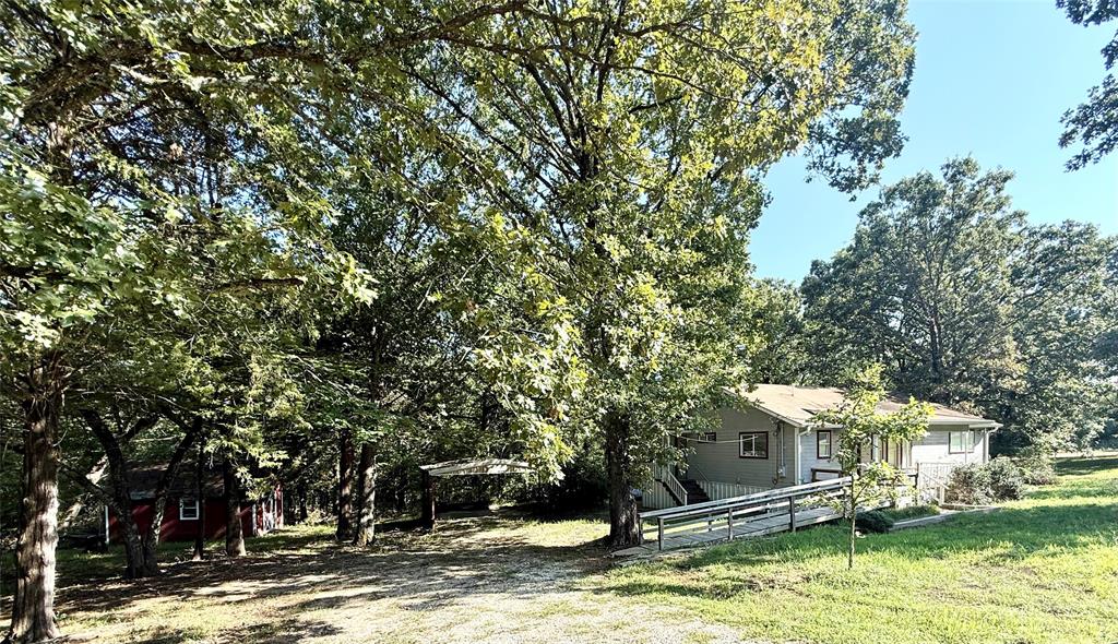 This adorable property sitting on 2 beautiful acres is so full of potential. Home offers 2 full bedrooms with walk in closets and 2 full bathrooms, open concept kitchen and living area, nice size office, full laundry room, full ramp leading into the front door, wheelchair accessible, cute little sunroom, 2 car carport, 3 nice size shop buildings. With a little TLC this property would be so cute with a beautiful lot with scattered large oak trees and a nice neighborhood with well cared for homes. Don't wait to come see this adorable property.