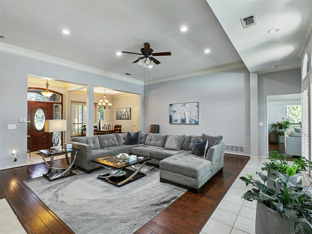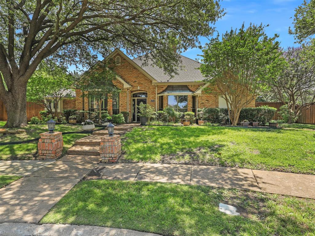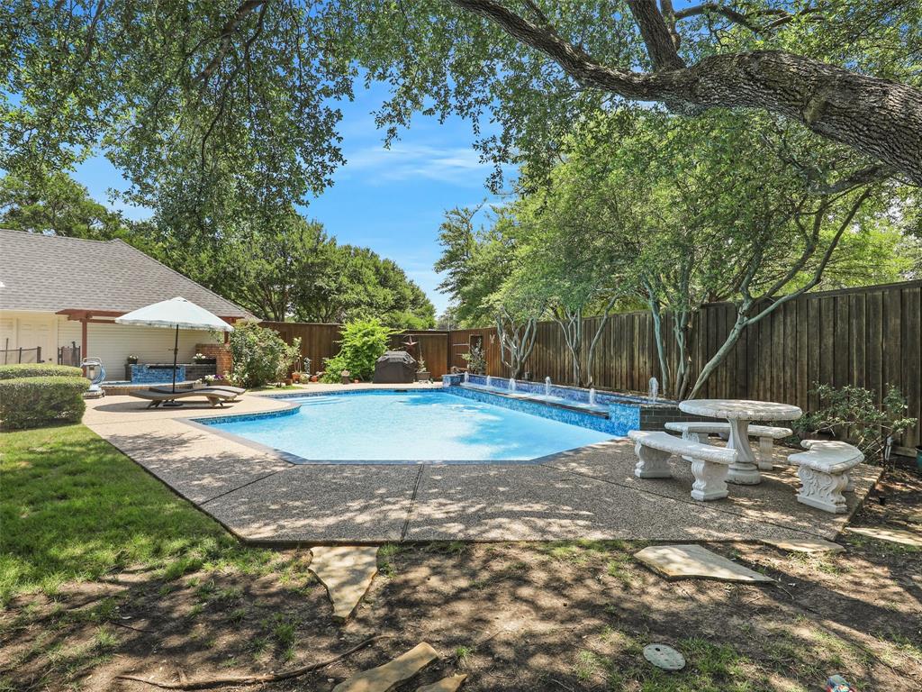 Beautifully Updated Single-Story Home in Desirable Preston Meadow. Welcome to this well-appointed, single-story gem located in the highly sought-after Preston Meadow neighborhood. Set on an oversized lot, this spacious home offers the perfect blend of style, comfort, and functionality. Step inside to expansive formal living and dining areas filled with natural light from a wall of windows overlooking the serene backyard, featuring a sparkling pool and separate spa, perfect for entertaining or relaxing. The heart of the home is the vaulted, beamed-ceiling kitchen, complete with white cabinetry, granite countertops, a large island, and ample counter space. An adjoining casual dining area flows seamlessly into a second living space that opens to a more private yard, ideal for quiet mornings or evening gatherings. Offering flexible living options, the home features 4 bedrooms, or 3 bedrooms plus a dedicated office, along with 3 full bathrooms and a convenient half bath with direct pool access. The office and one bedroom are connected by a Jack-and-Jill bath with generous closet space, while the third bedroom has its own en-suite bath, perfect for guests or a mother-in-law suite.