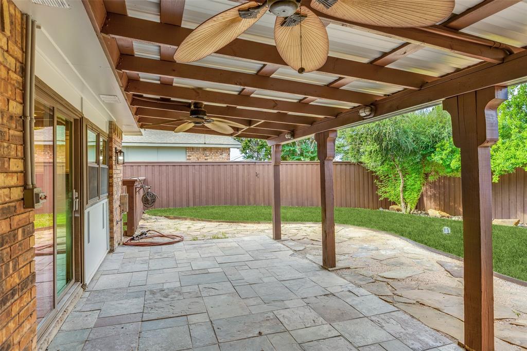 Enjoy outdoor living with an oversized deck and covered patio featuring dual ceiling fans. The large backyard backs up to a greenbelt—ideal for kids and pets.